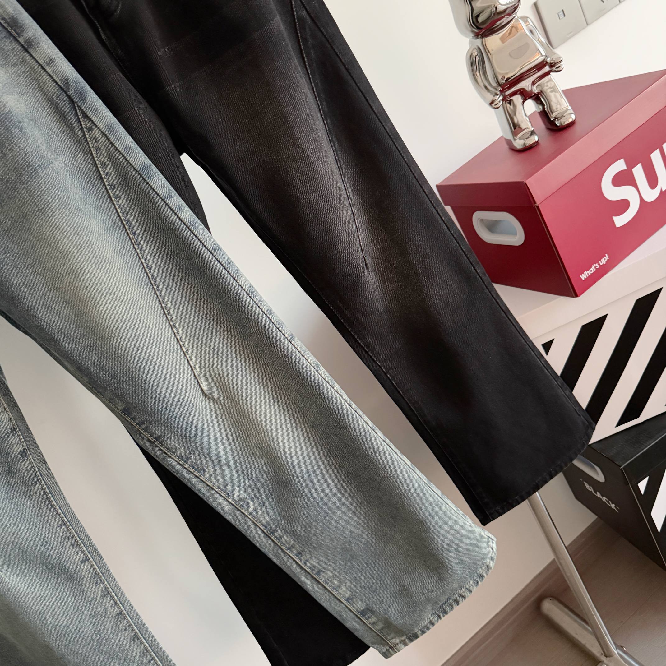 炸街神裤来袭 上身超酷 重工渐变水洗 大火的Cleanfit极简直筒宽松廓形设计 简约帅气 美式复古高街松弛感拉满 经典的直筒宽松廓形设计 简约不简单 完美的修饰各种腿型无论是搭配夹克 卫衣 还是长袖衬衫 这款牛仔裤都能轻松驾驭 甩点的设计更是让人眼前一亮 展现出你的个性魅力 这款设计方面都融入了留下流行的运动风格 加上以简洁的形式效果 衬托整体感觉 合理裁剪 精细工艺的品控