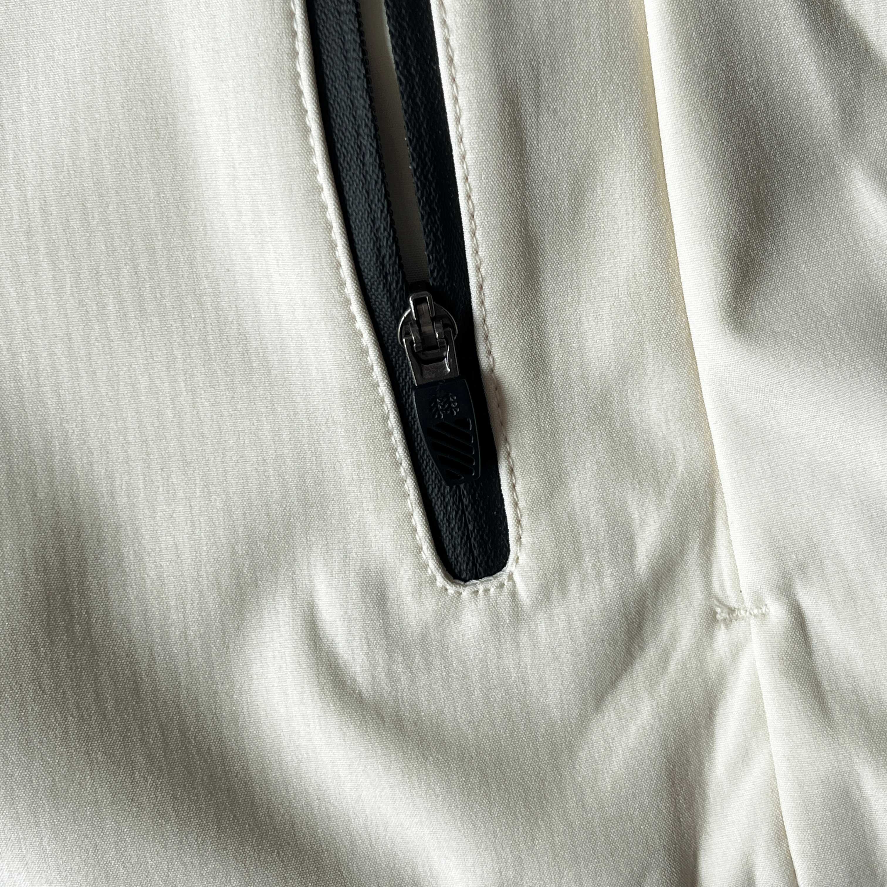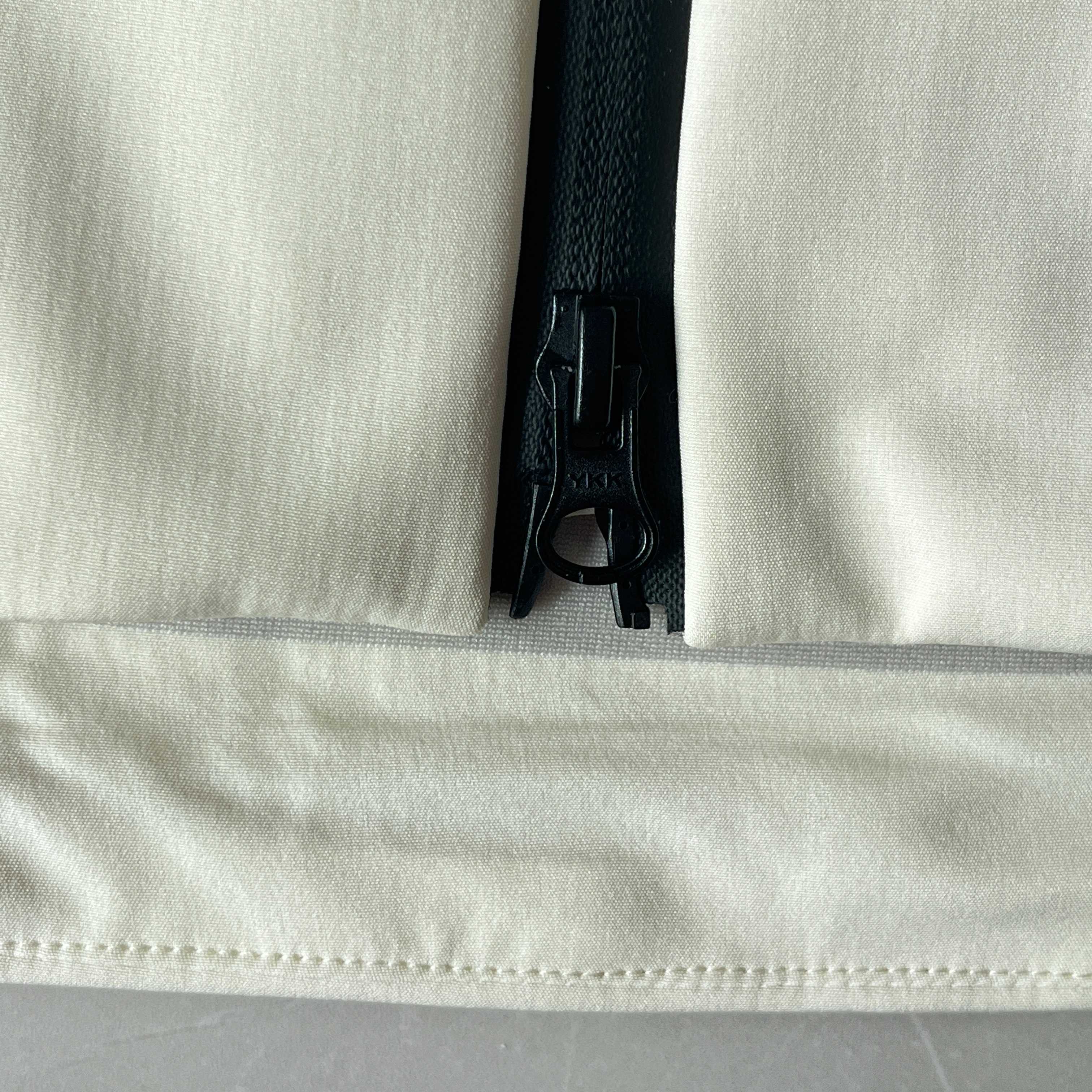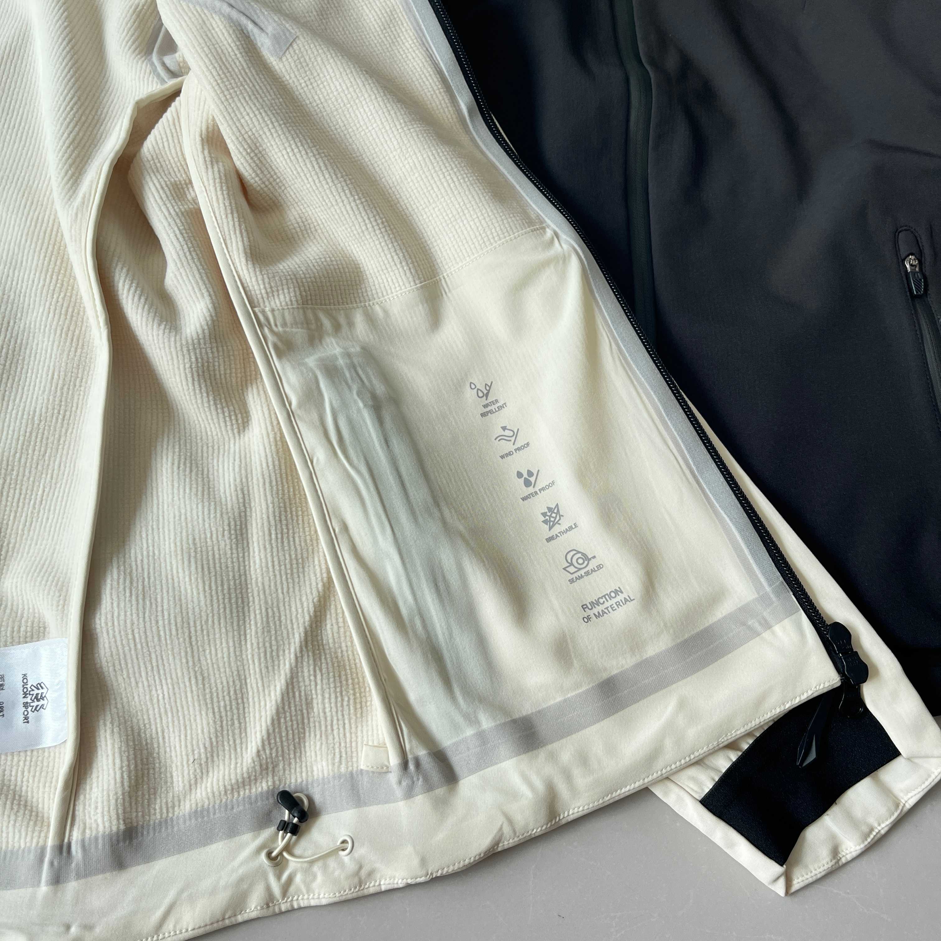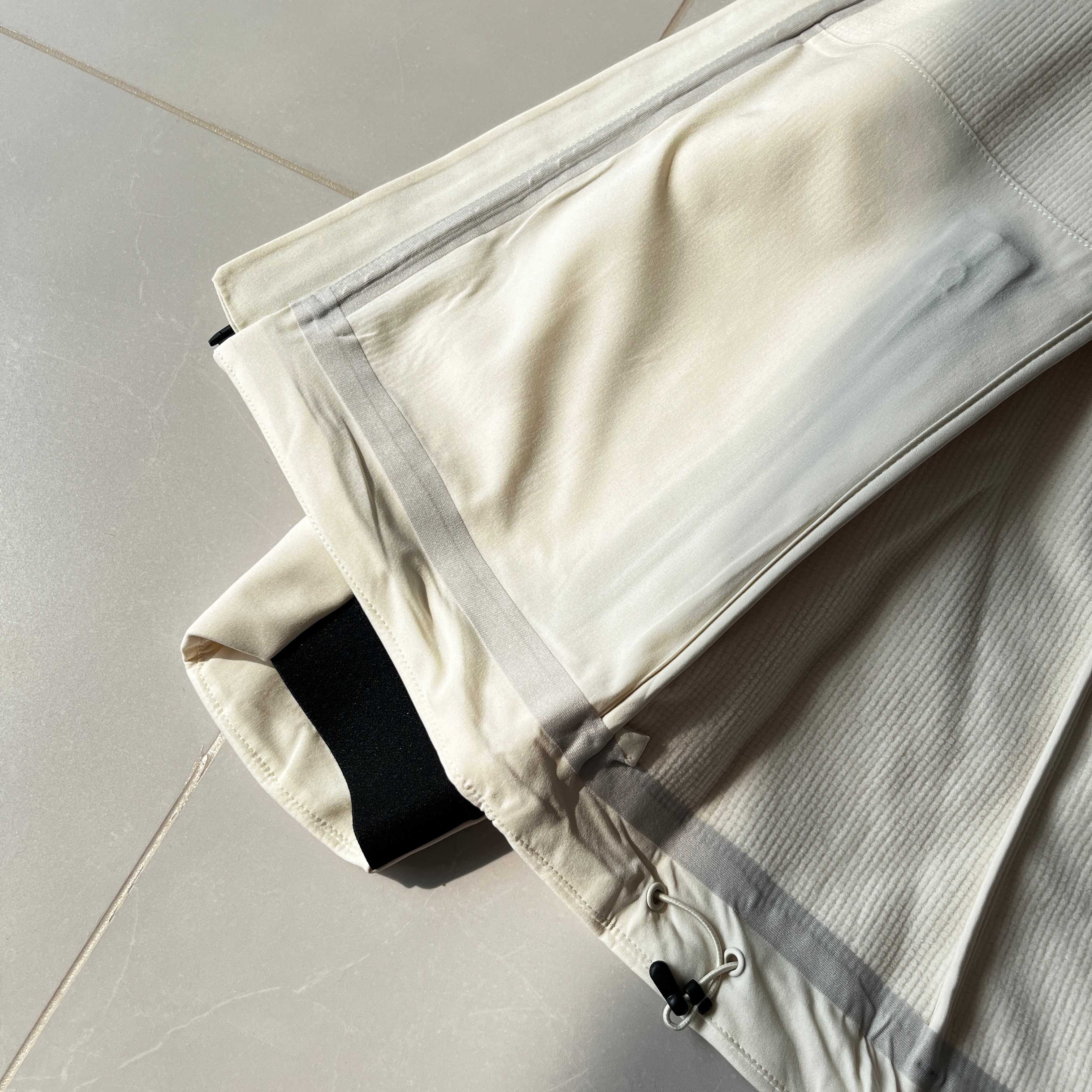 面料经过DWR 耐久防泼水 处理 遇到小雨 雪粒或者偶然的水溅 水滴会滚落 不会立刻浸湿衣物 这足以应对突如其来的小阵雨或者清晨的露水 但请注意它不适用于中到大雨