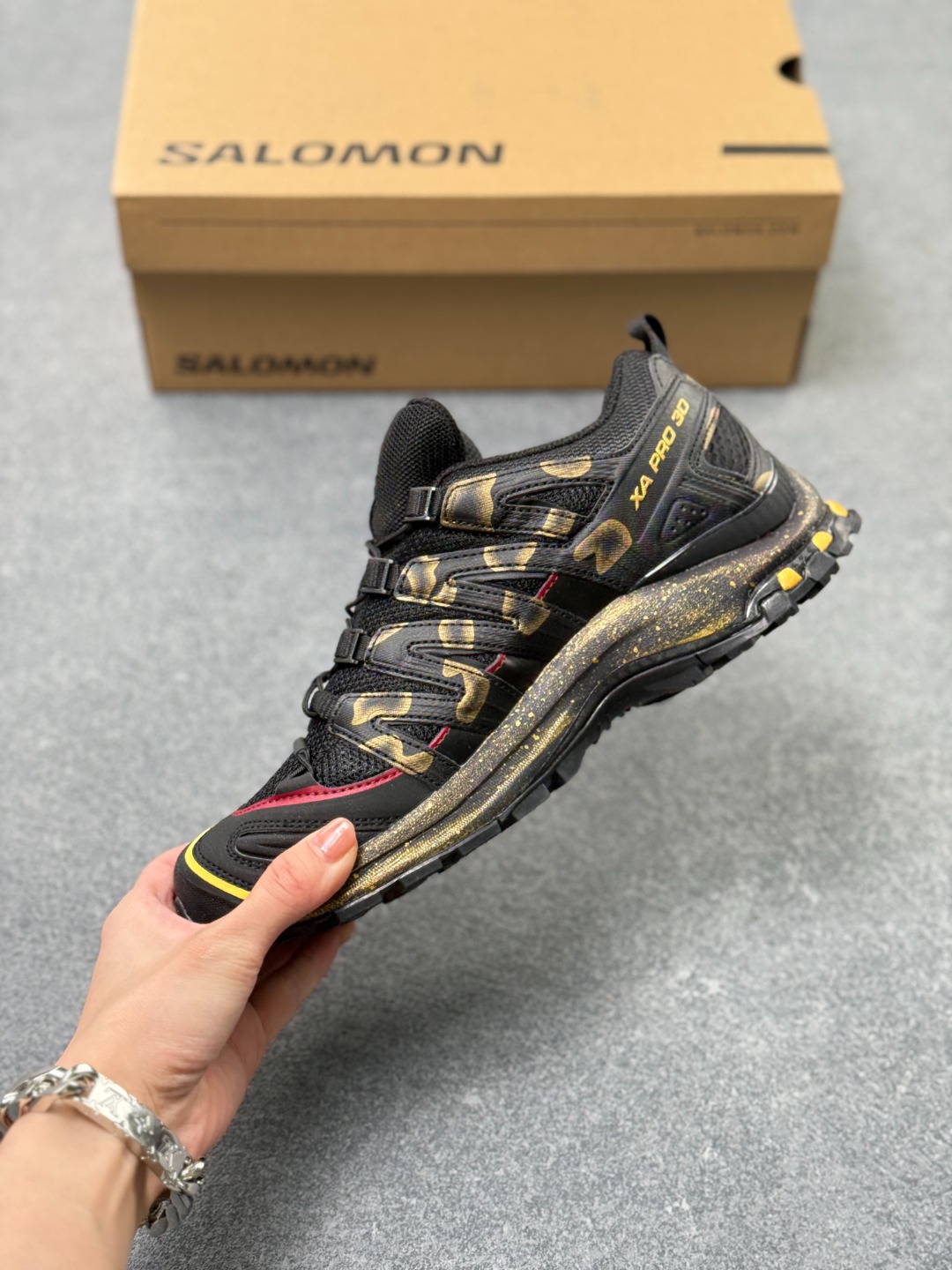SALOMON萨洛蒙 XA PRO 3D LA YAUTE 811制造 骏马乘风 马年限定 国风 机能透气 低帮跑步鞋 男女同款 黑红金 393322 28 V0 野性登场