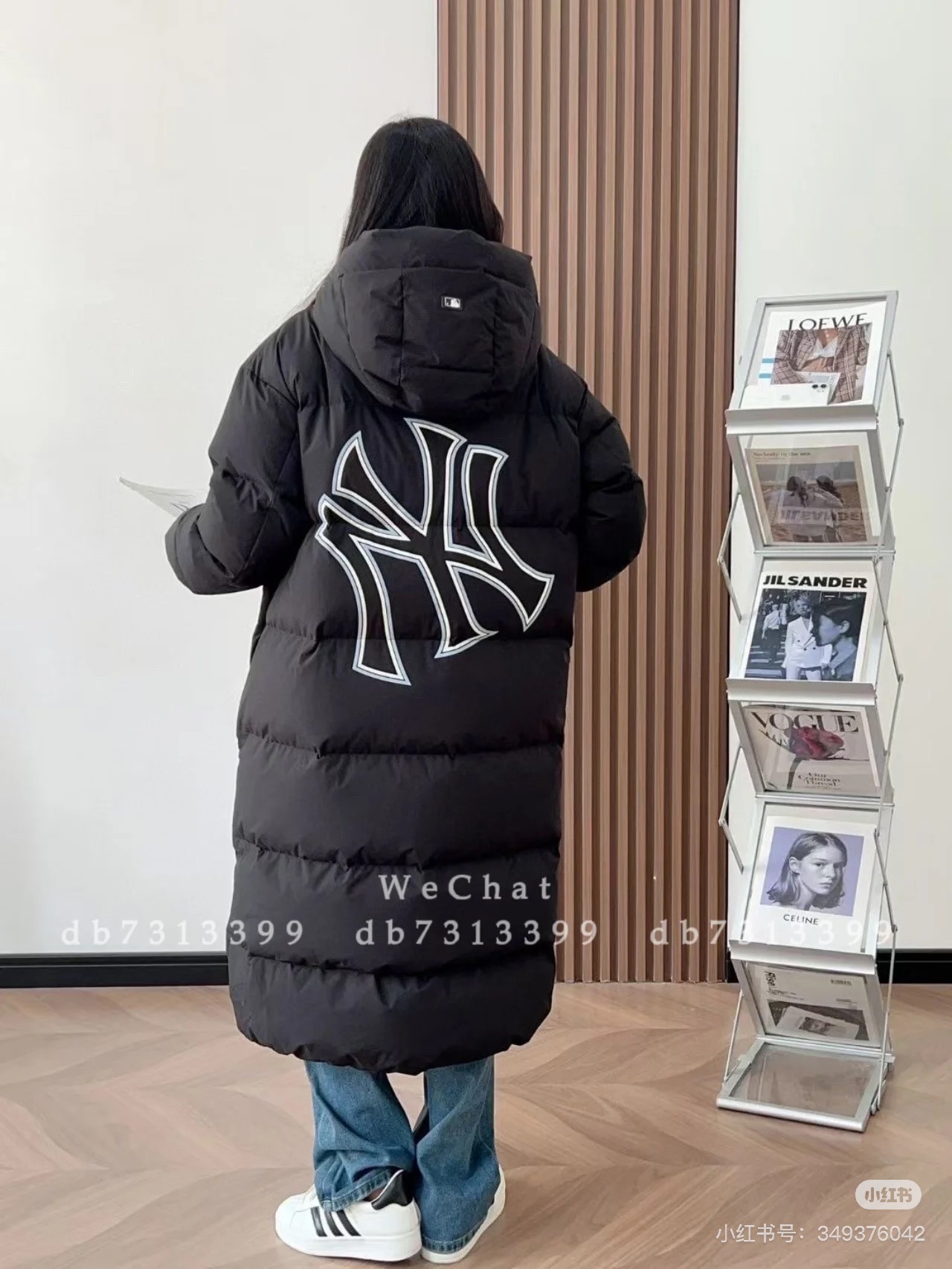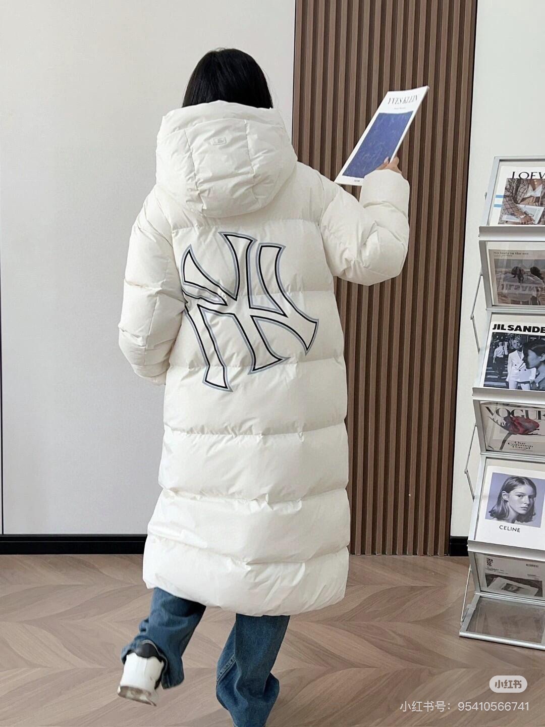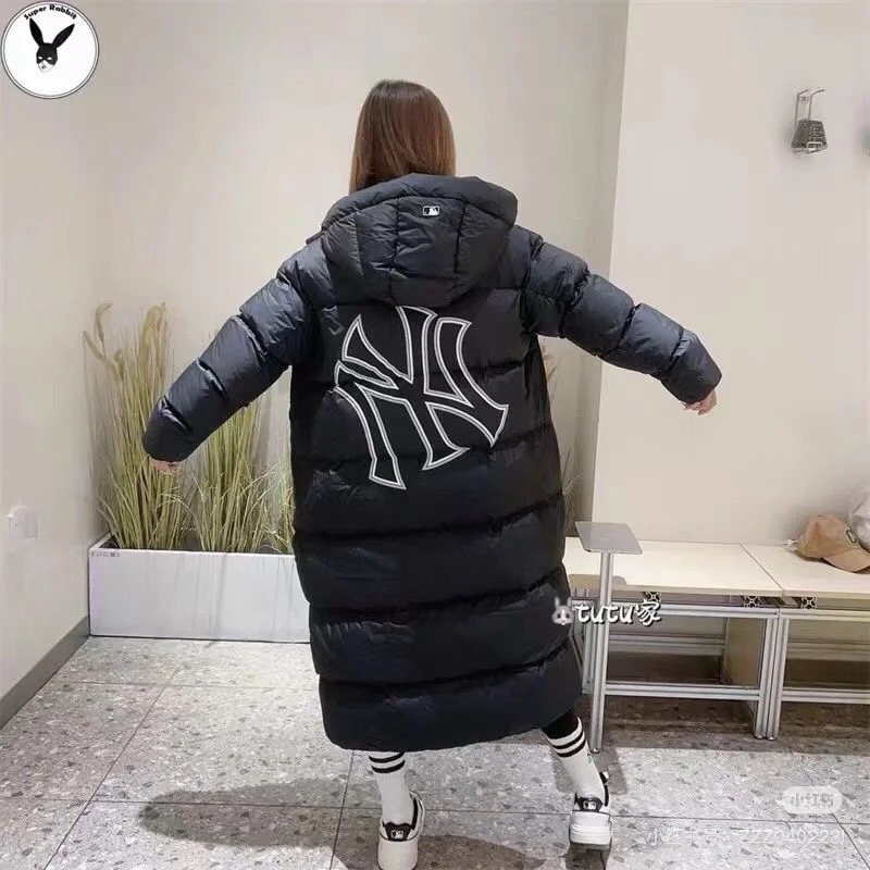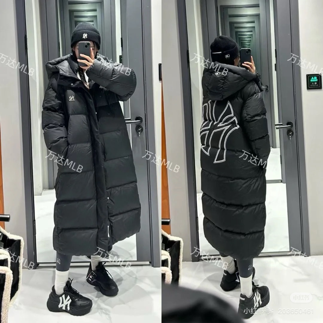 MLB NY专柜同步情侣长款连帽后背NY大标羽绒服 24冬季新品NY洋基队 后背大标镂空 长款连帽羽绒服