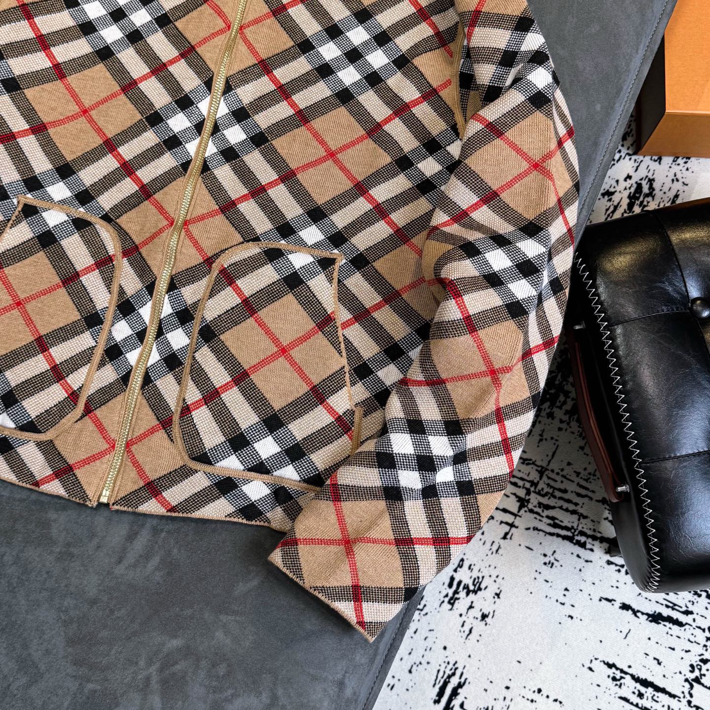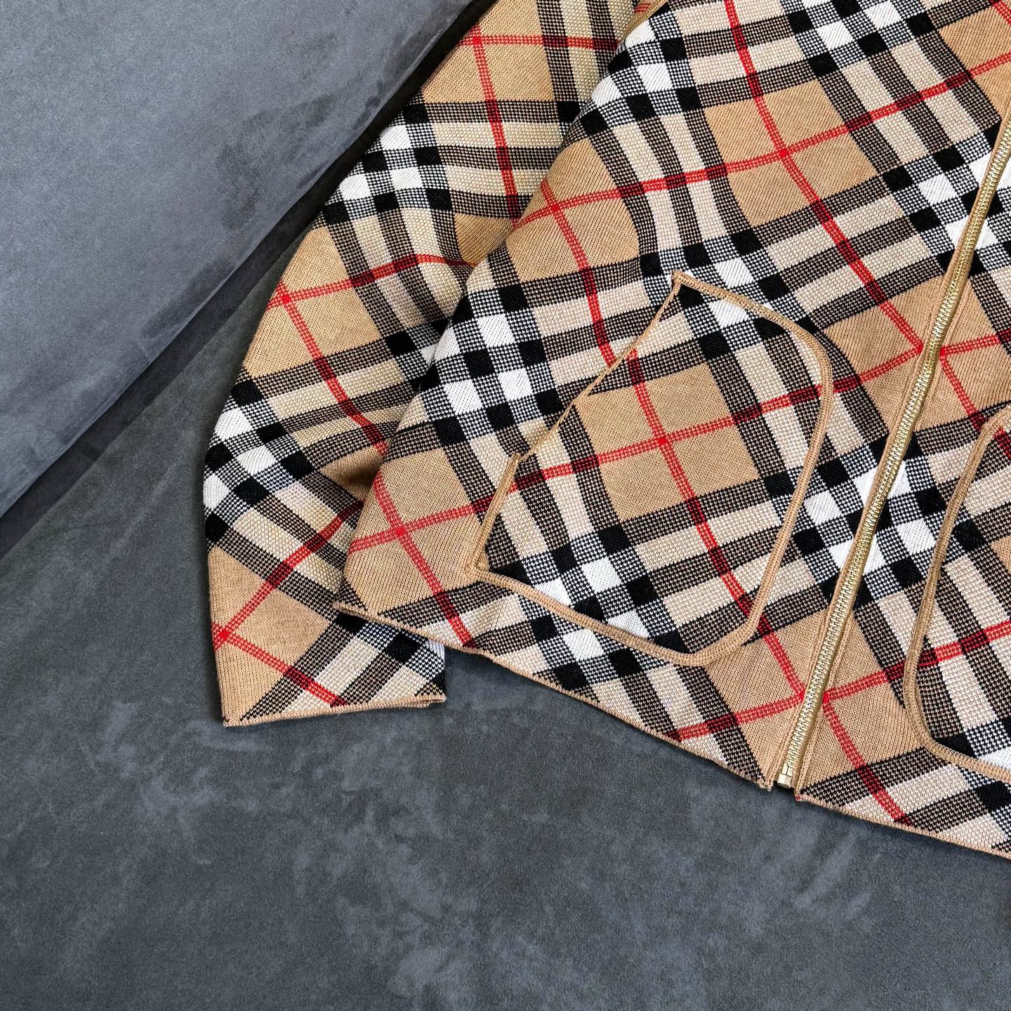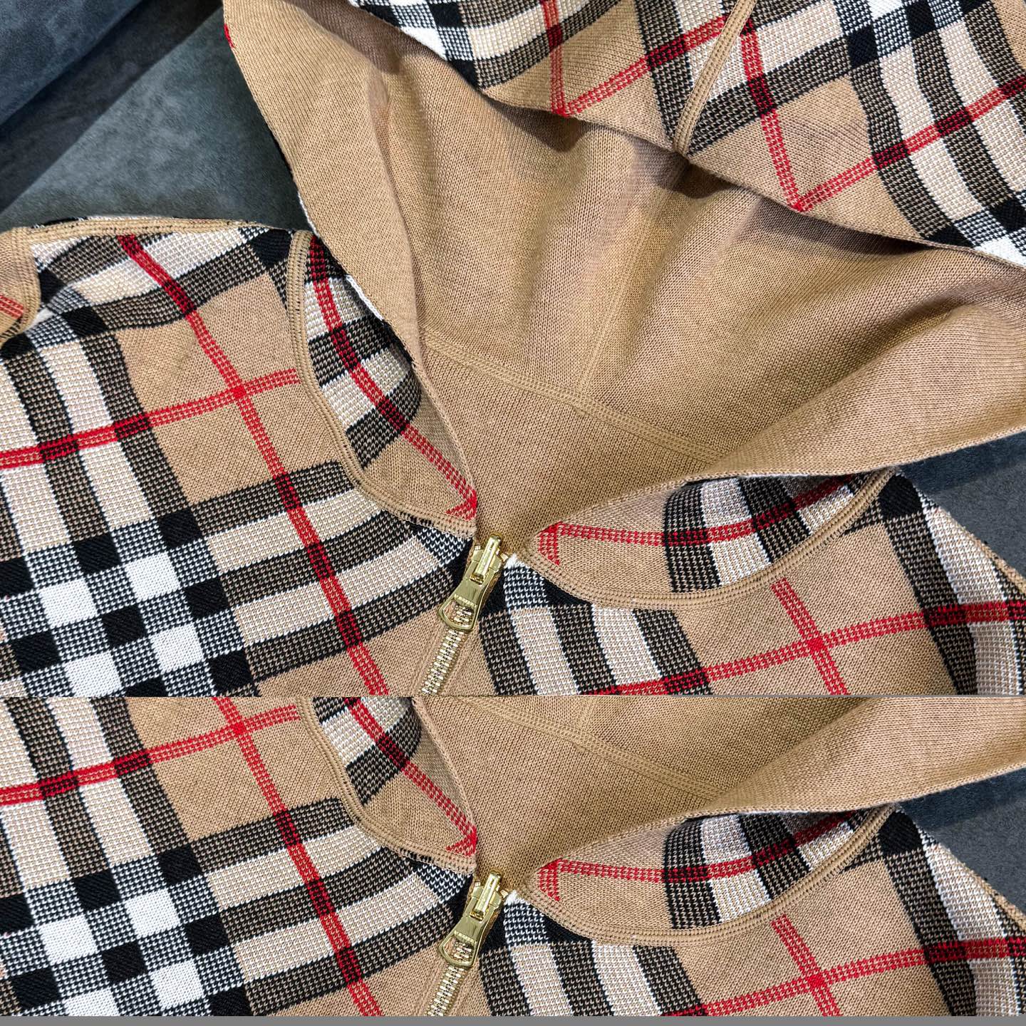 Burberry 巴宝莉经典格纹双面穿羊毛提花开衫毛衣外套