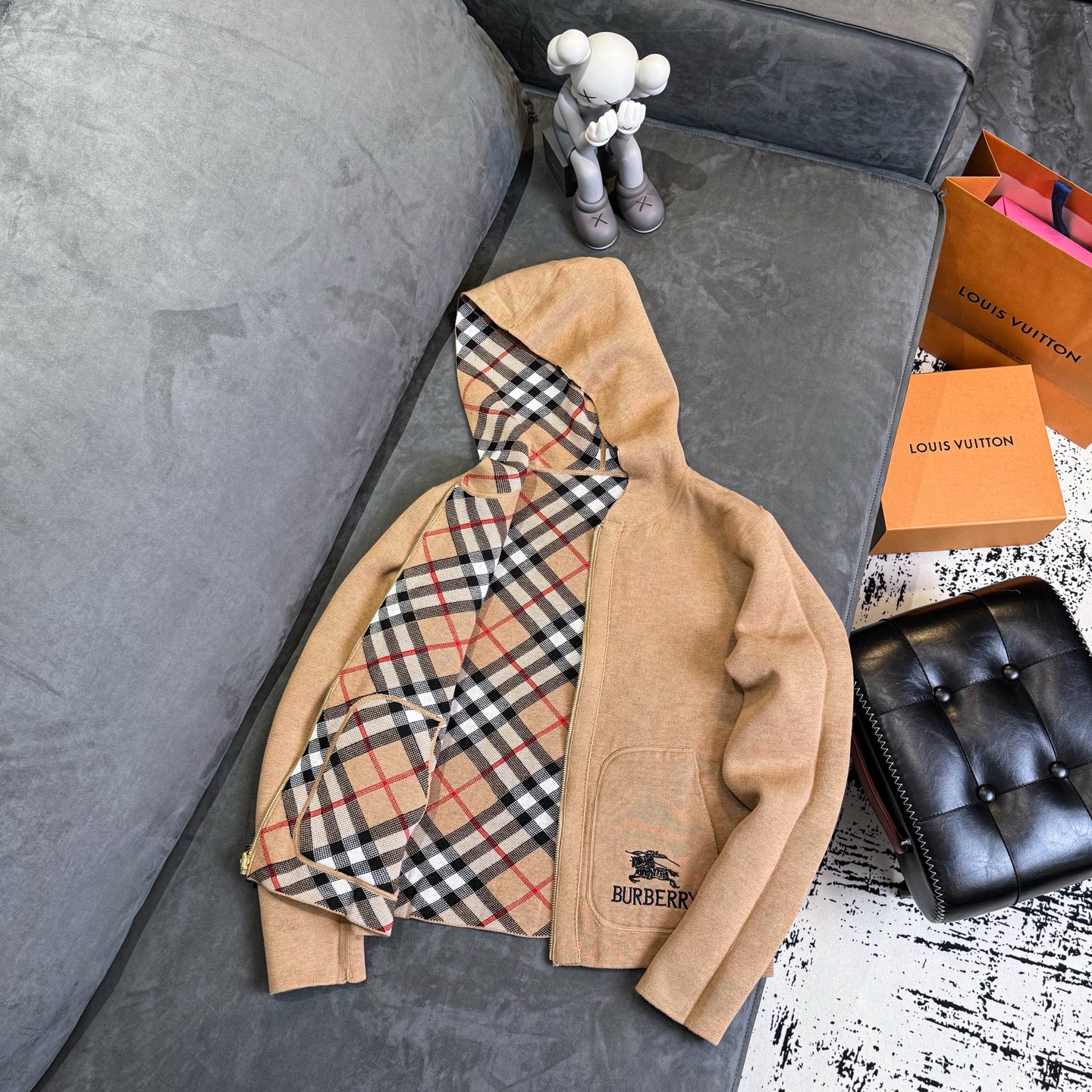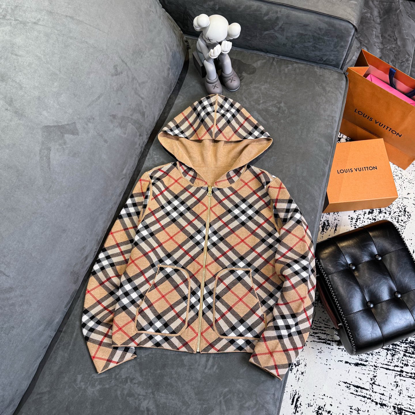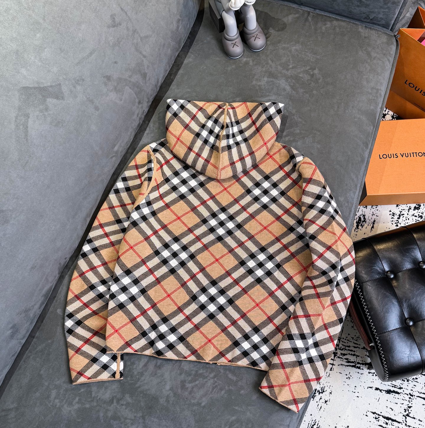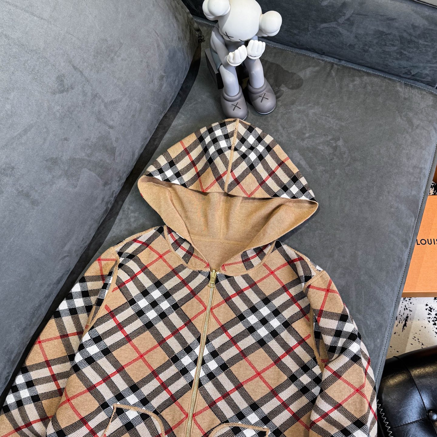 Burberry 巴宝莉经典格纹双面穿羊毛提花开衫毛衣外套