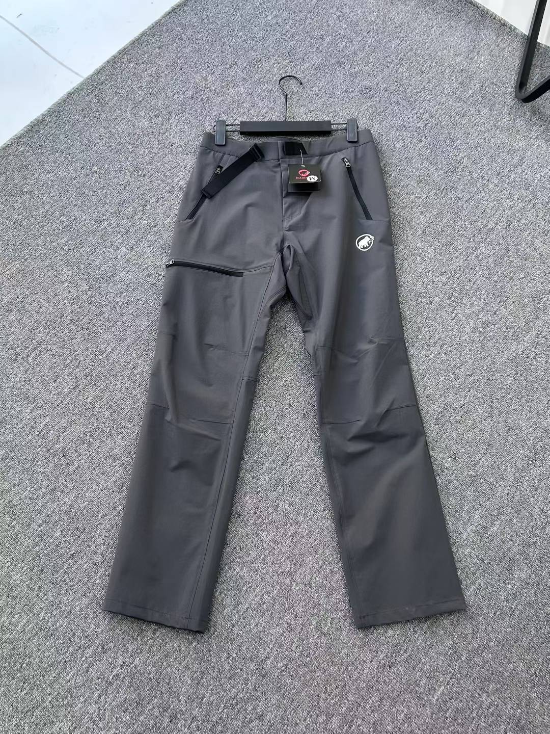 男士户冲锋裤弹性防风防泼水透气休闲运动裤 MAMMUT户外原单梭织冲锋裤 全新的徒步系列 轻量级登山尼运动长裤 采用经过考验的Mammut SOFtechTM面料 非常结实的带弹性的双织面料 具备良好的透气性和运动自由度 经过不含PFC的DWR处理 优良的DWB 4面弹性和耐磨防泼水的功能 带拉链和牛仔裤纽扣的隐藏式门襟 醫部设计有YKK Vislon R 拉链的手机口袋一体化皮带 方便舒适 2个侧面口袋和2个后侧口军工级立体剪裁 自由活动不受拘束 配有一体式织带腰带 可调节腰围 超级推荐 收口版型 上身更加没有束缚感