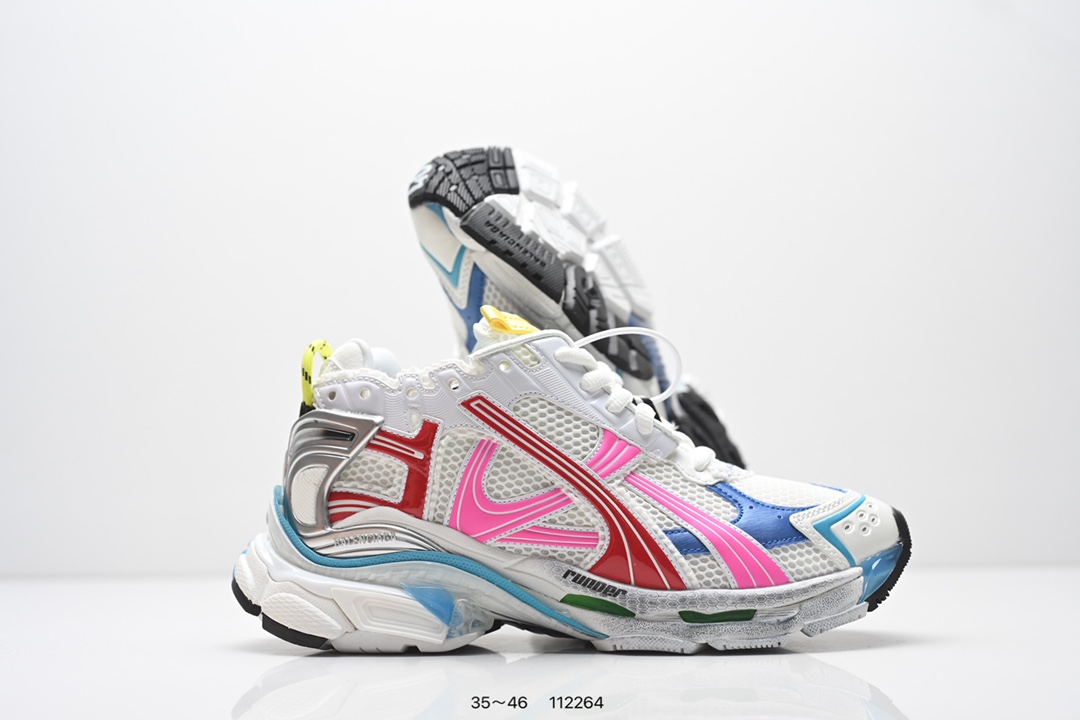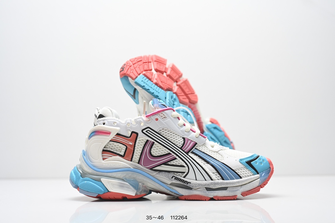 公司级 原版一致配件防尘袋及附送鞋带 全部采用原档案原楦数据开发 1 1比例克重 原装欧索莱环保去臭环型鞋垫 市面最为正确东莞代工原底部又是熟悉的复古解构 高奢品牌 巴黎世家BALENCIAGA Runner Sneaker Grey Black Blue Red 慢跑系列低帮复古野跑潮流姥爹风百搭休闲运动慢跑鞋 解构破坏灰蓝红黑涂鸦LOGO