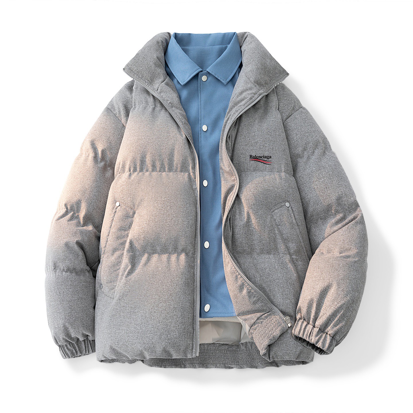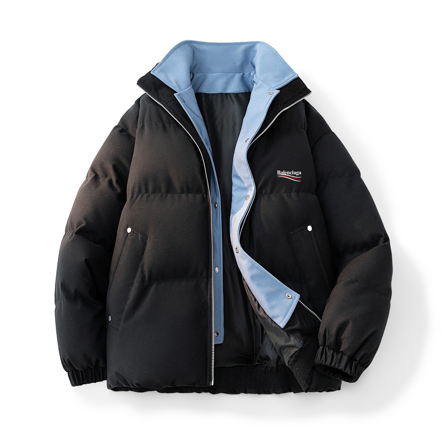 BALENCIAGE 巴黎世家假两件羽绒棉服外套 男女同款 独家爆款 冬季衣橱必备的一款人气棉衣 上身超级好看 纯天然手塞羽绒棉填充 每个部分充棉饱满 给人温暖的的视觉感观 前面经典印花logo 小红书抖音网红立荐款 细节完美 保暖效果极佳 冬天一件足以 情侣闺蜜搭配更佳