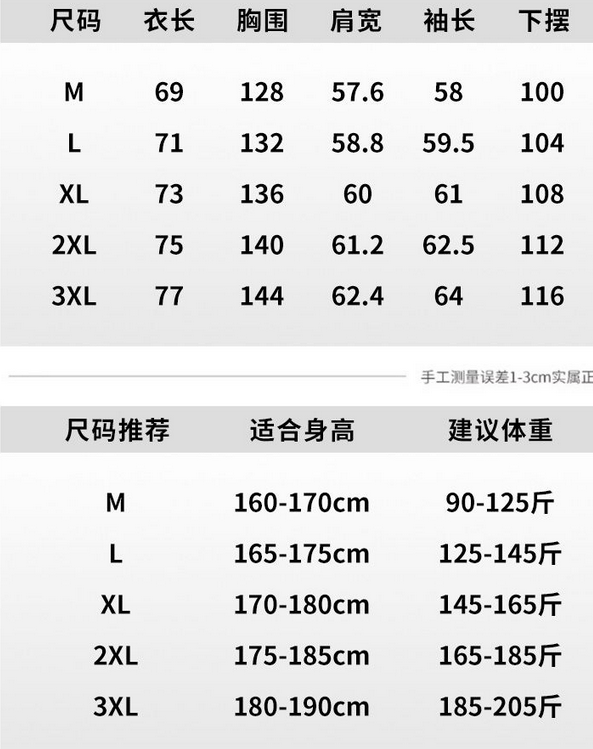 尺码 M 3XL