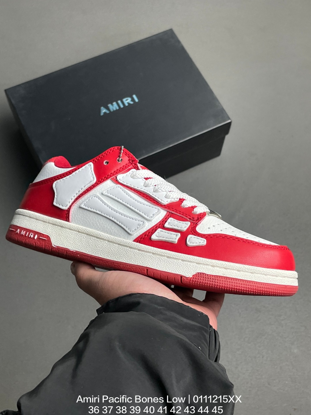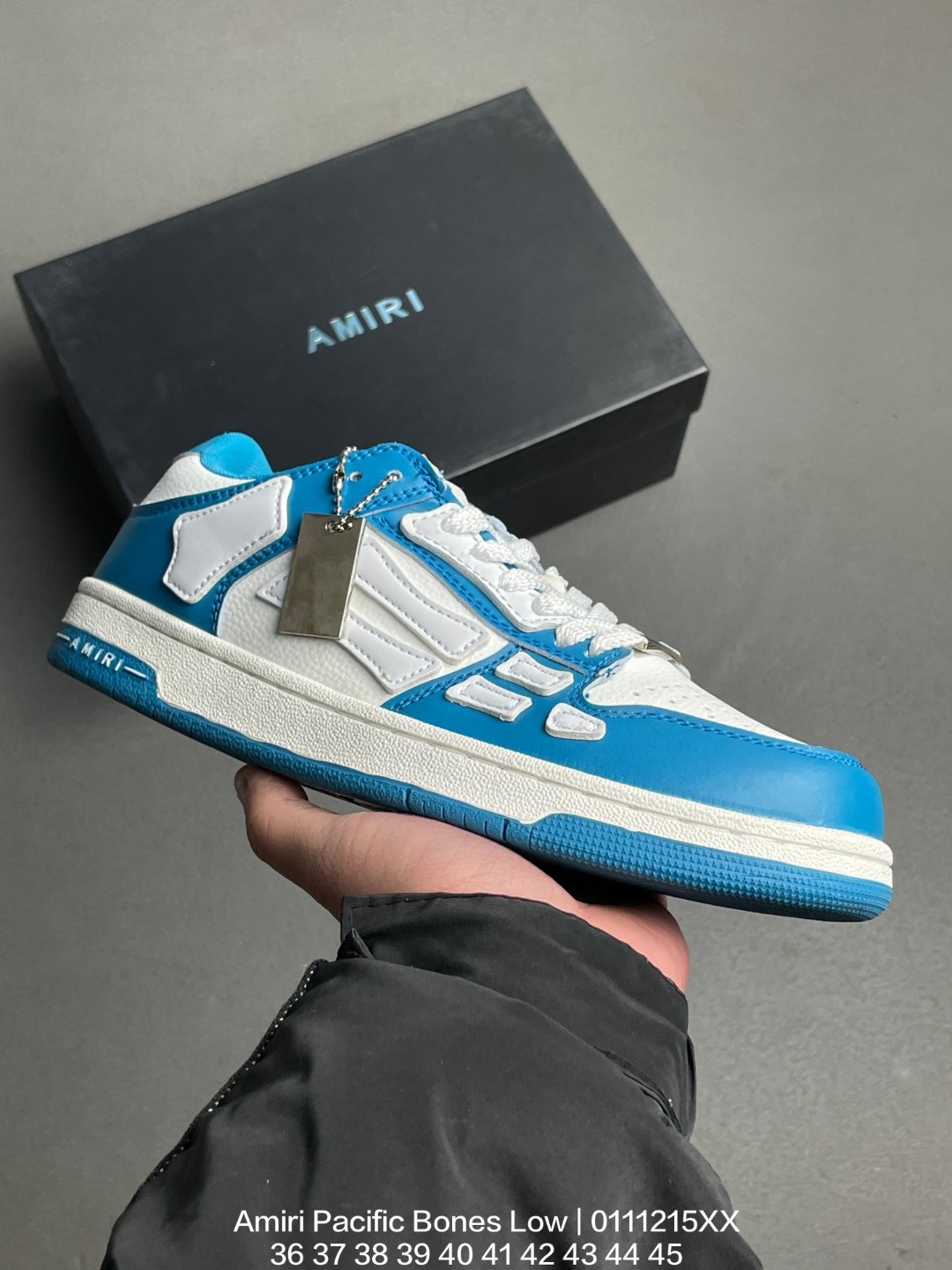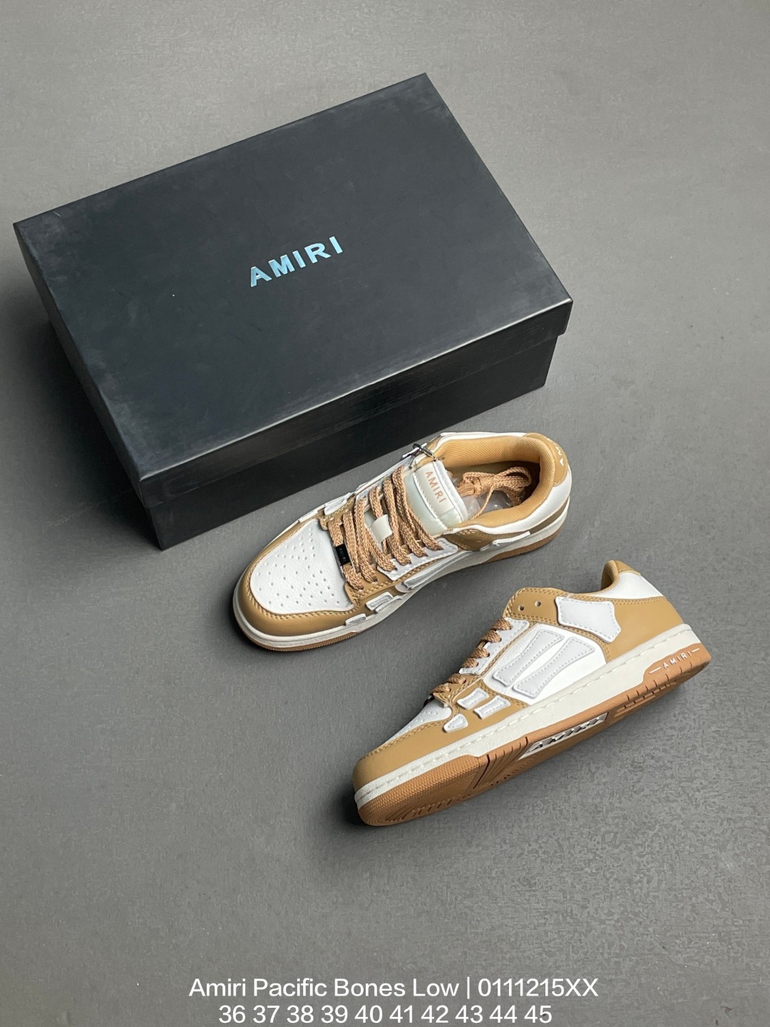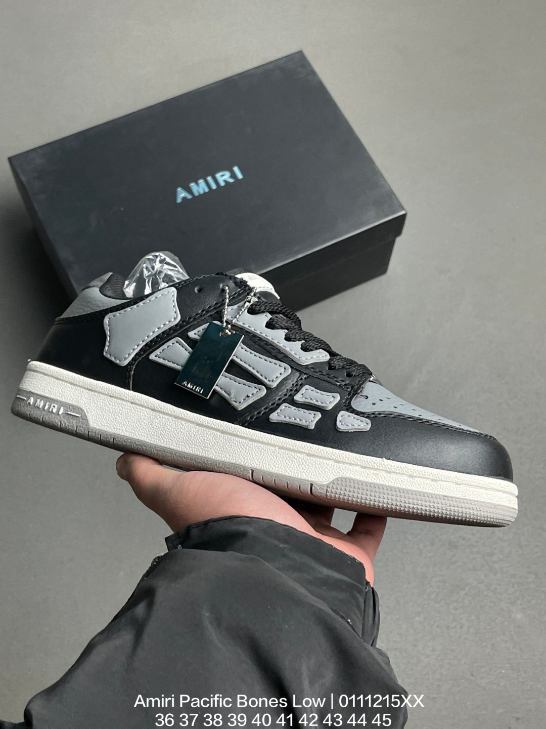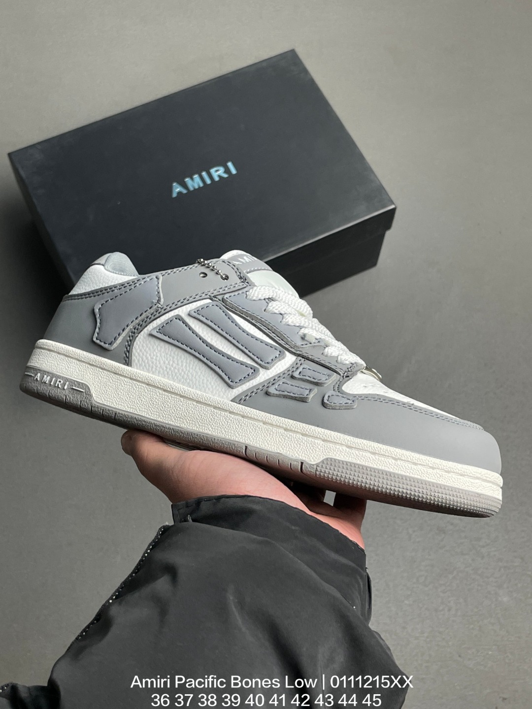 吸汗网布贴合PU高弹发泡增高鞋垫 独家开发组合TR光泽耐韧隔色橡胶鞋底号称洛杉矶街头之王高奢品牌 埃米尔 Amiri Pacific Bones Low Top Sneakers 太平洋系列骨头低帮经典绅士德训平底百搭休闲运动小白鞋
