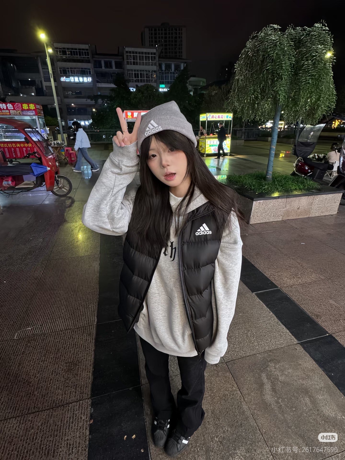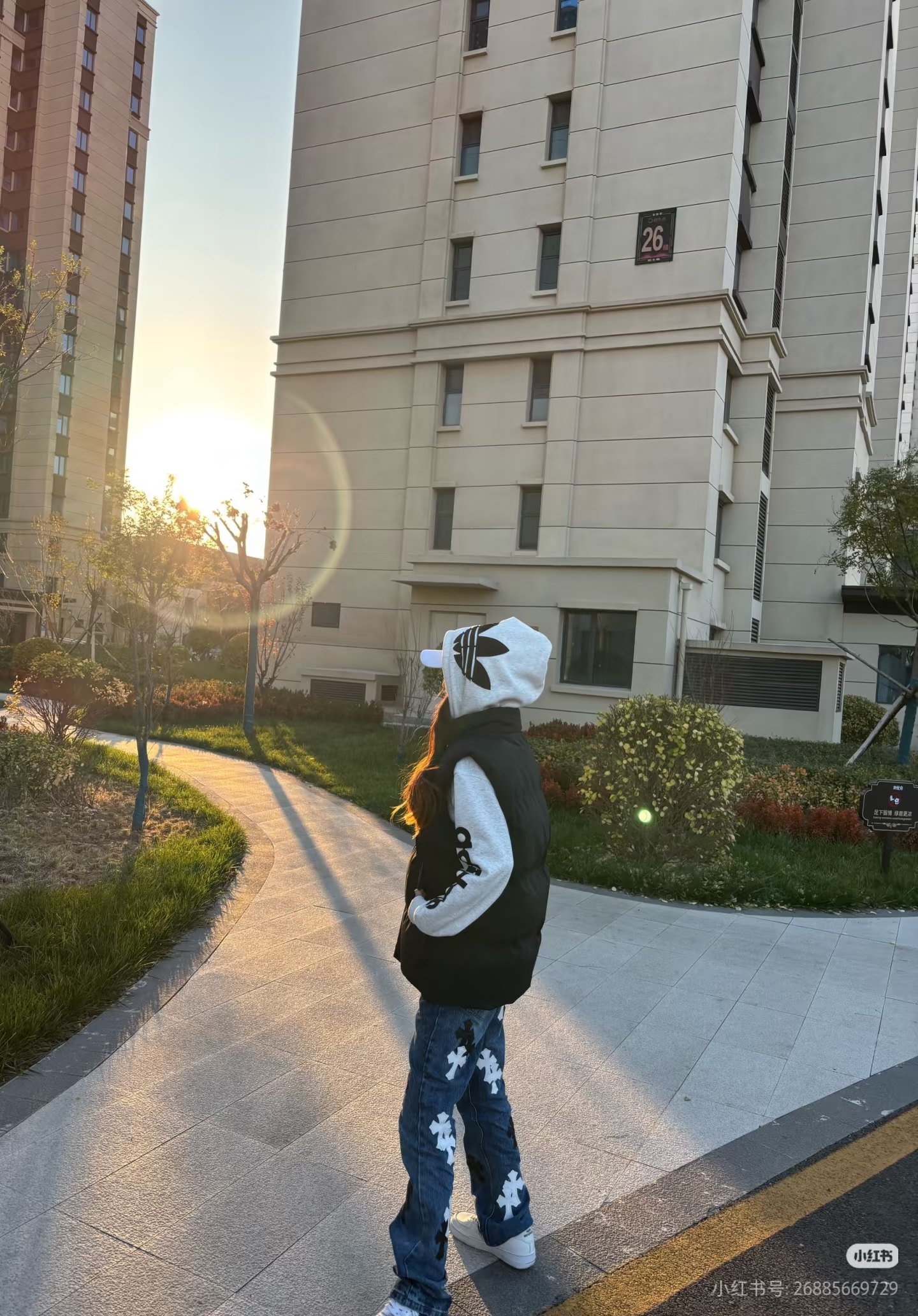叠穿卫衣很有层次感 百搭的黑灰拼色轻松不费力