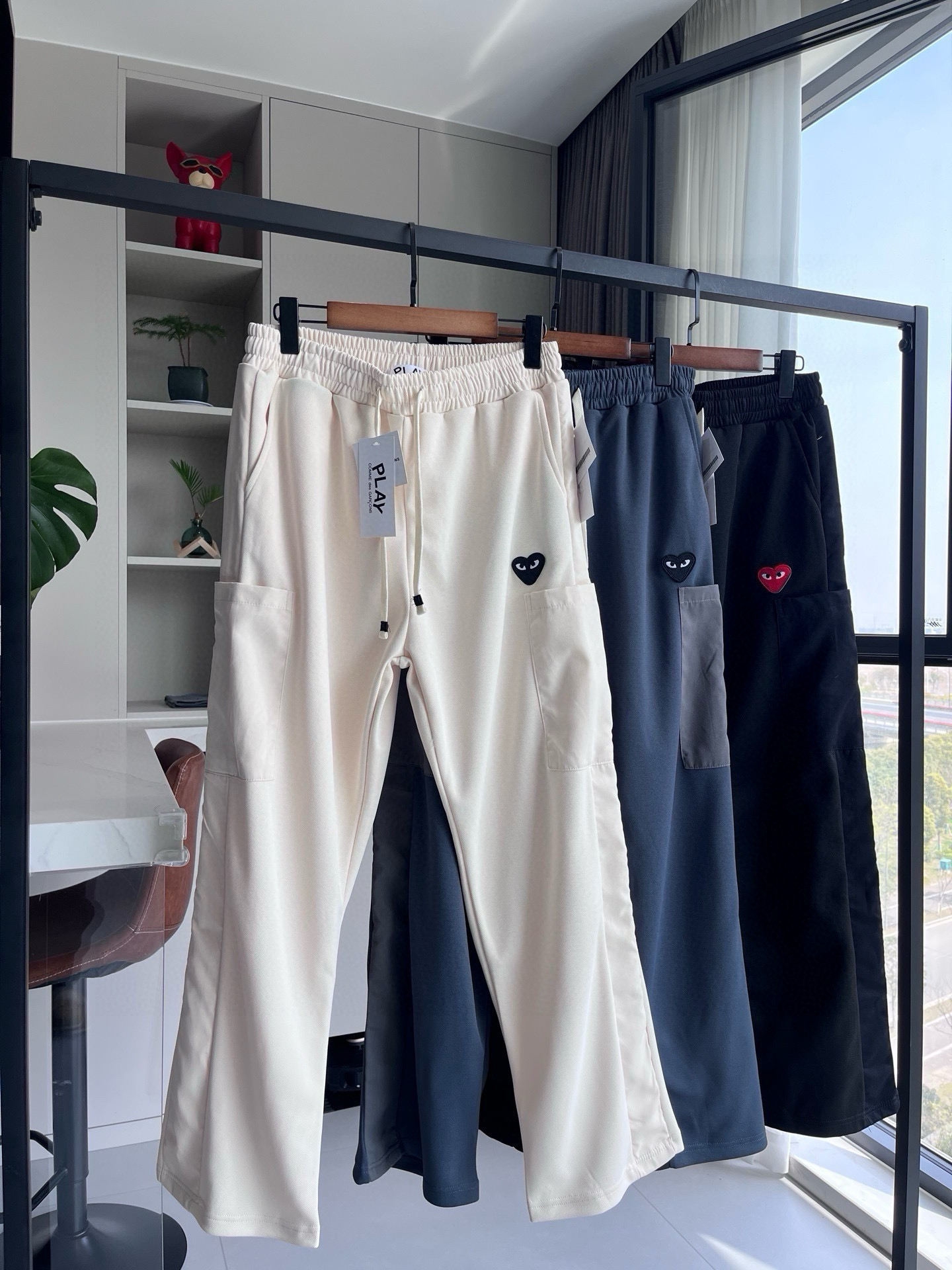 85125798 - 川久保玲大口袋直筒裤 川久保玲Play爱心刺绣港风休闲裤长 366936