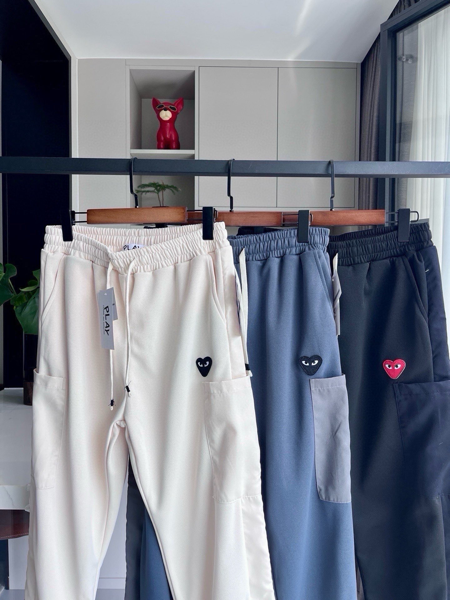川久保玲Play爱心刺绣港风休闲裤长裤直筒裤 宽松版型 不挑身材 抽绳设计 方便穿脱调节 拒绝束缚感 四季皆可穿 宽松百搭 极简风yyds 版型优秀 拒绝臃肿 通通能驾驭 搭配爱心配色 属于怎么都好搭的那种 面料柔软舒适 超百搭 男女同款情侣 搭
