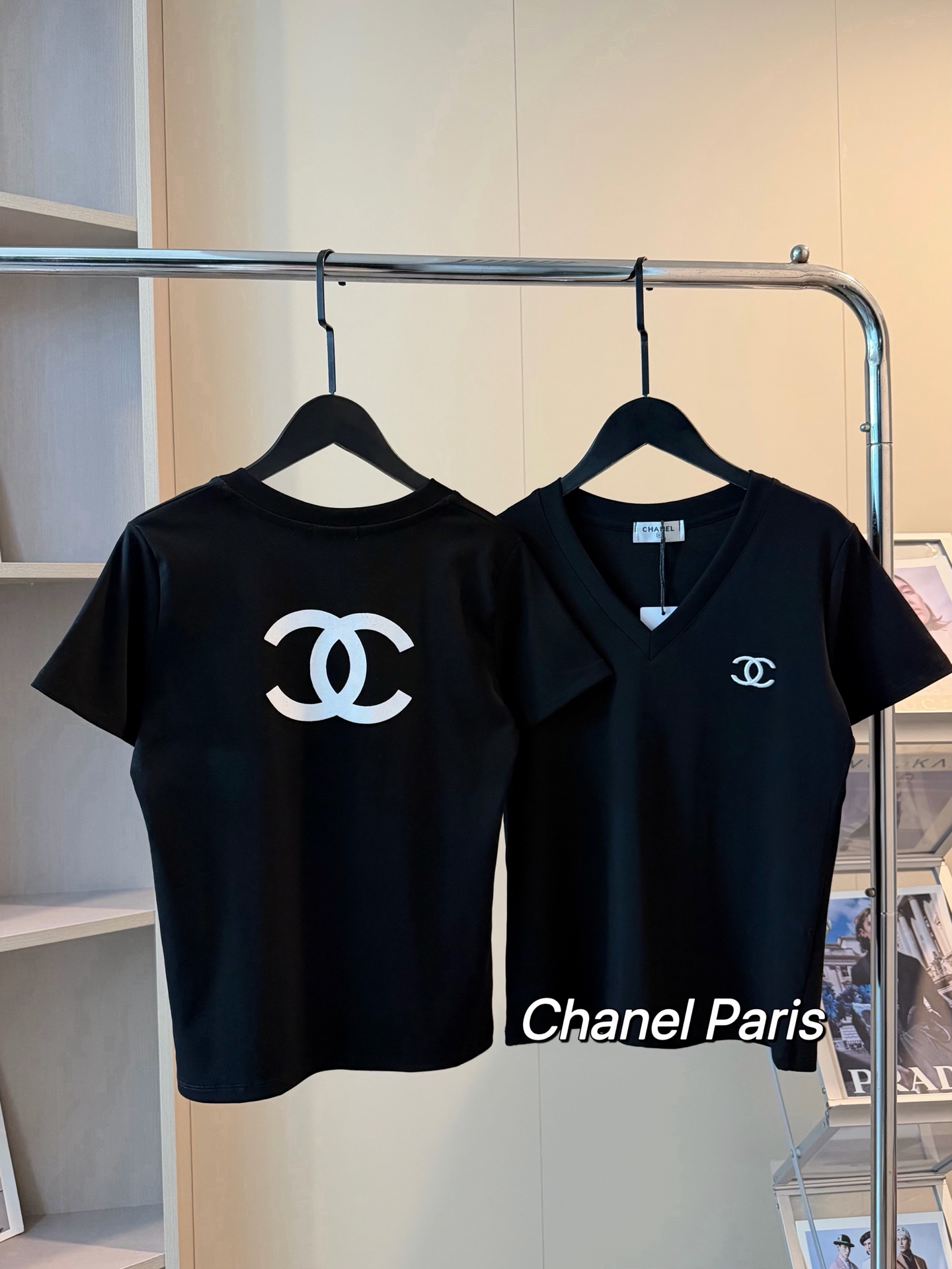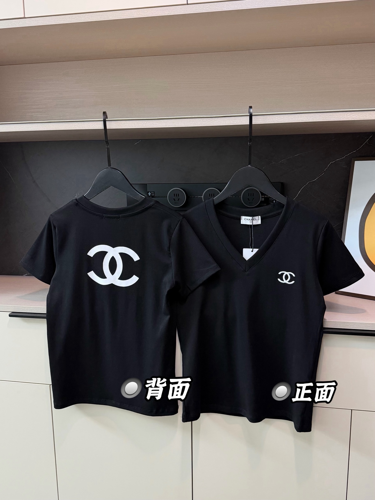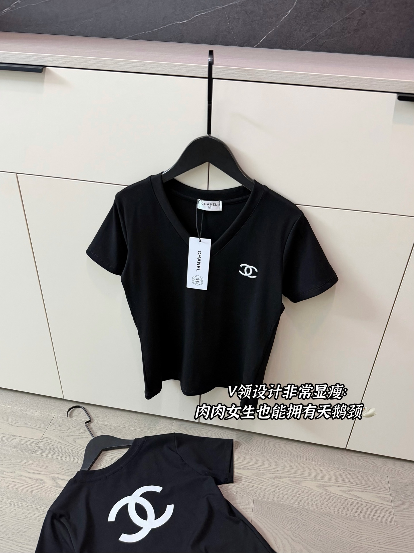 Chanel香奈儿限定刺绣logo短款V领T恤