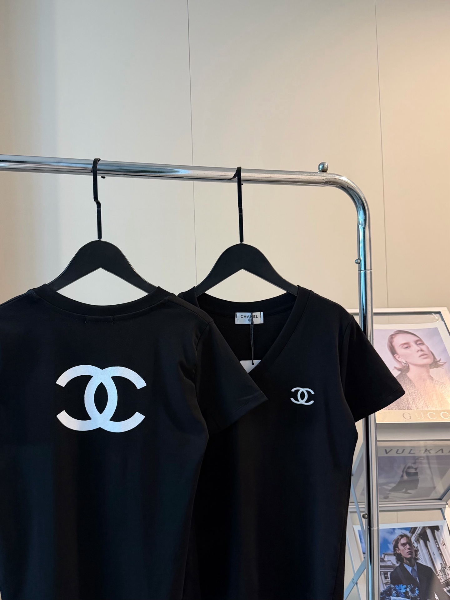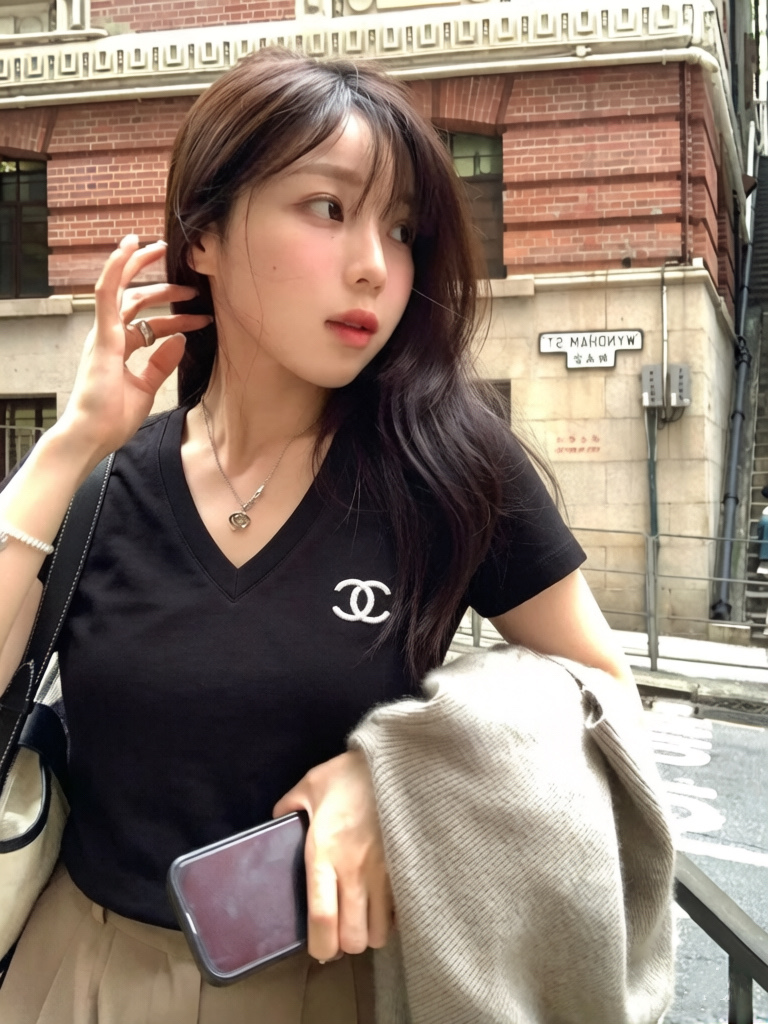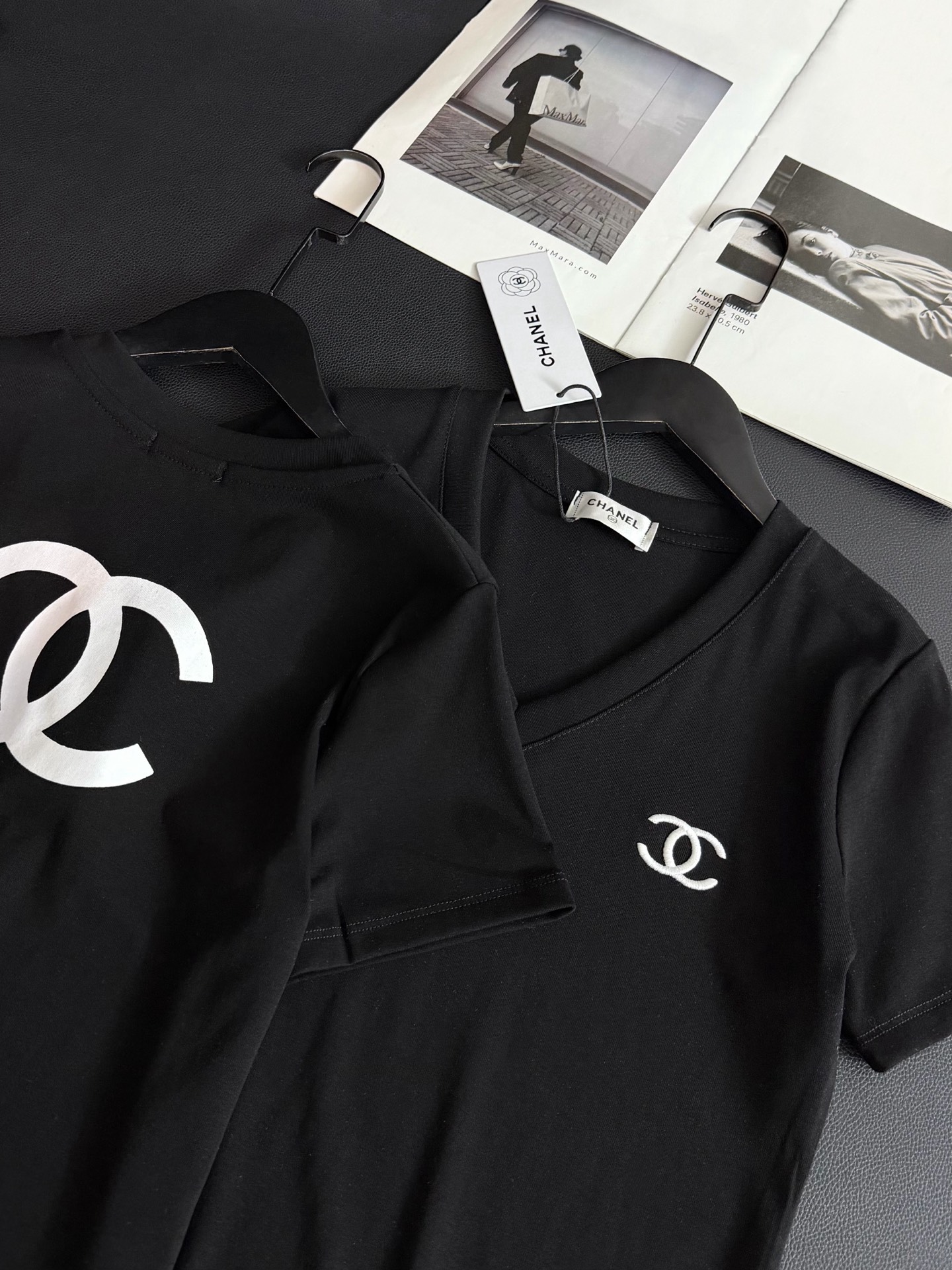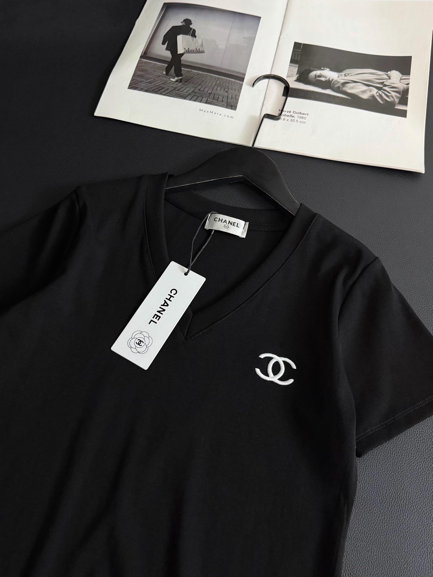 Chanel香奈儿限定刺绣logo短款V领T恤