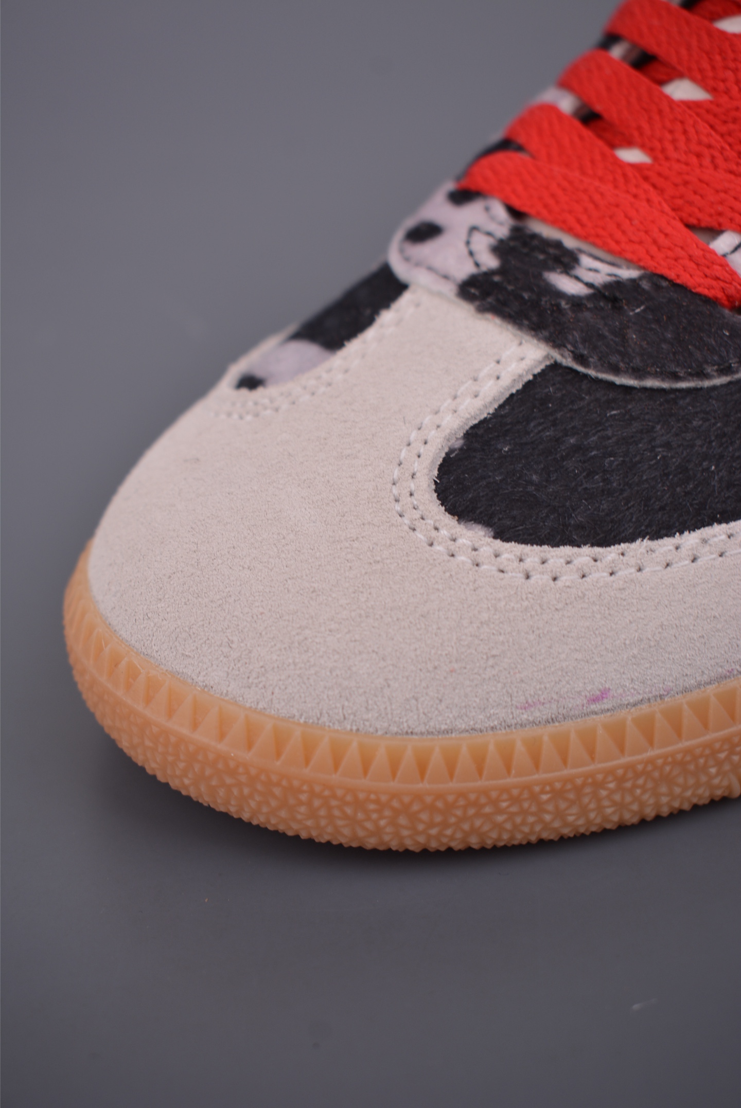 该鞋款鞋面采用多种材料拼接 缝 车线