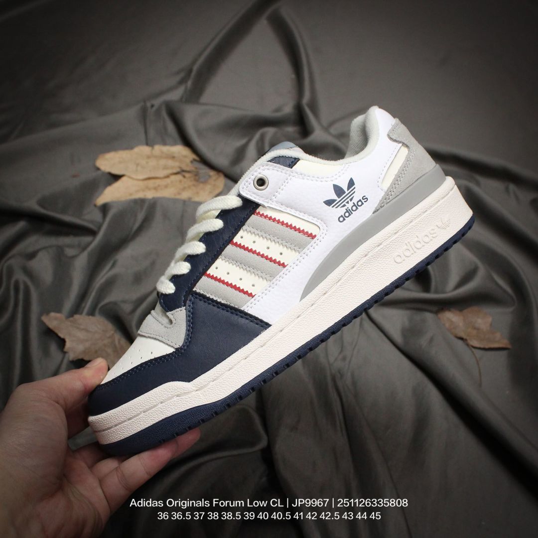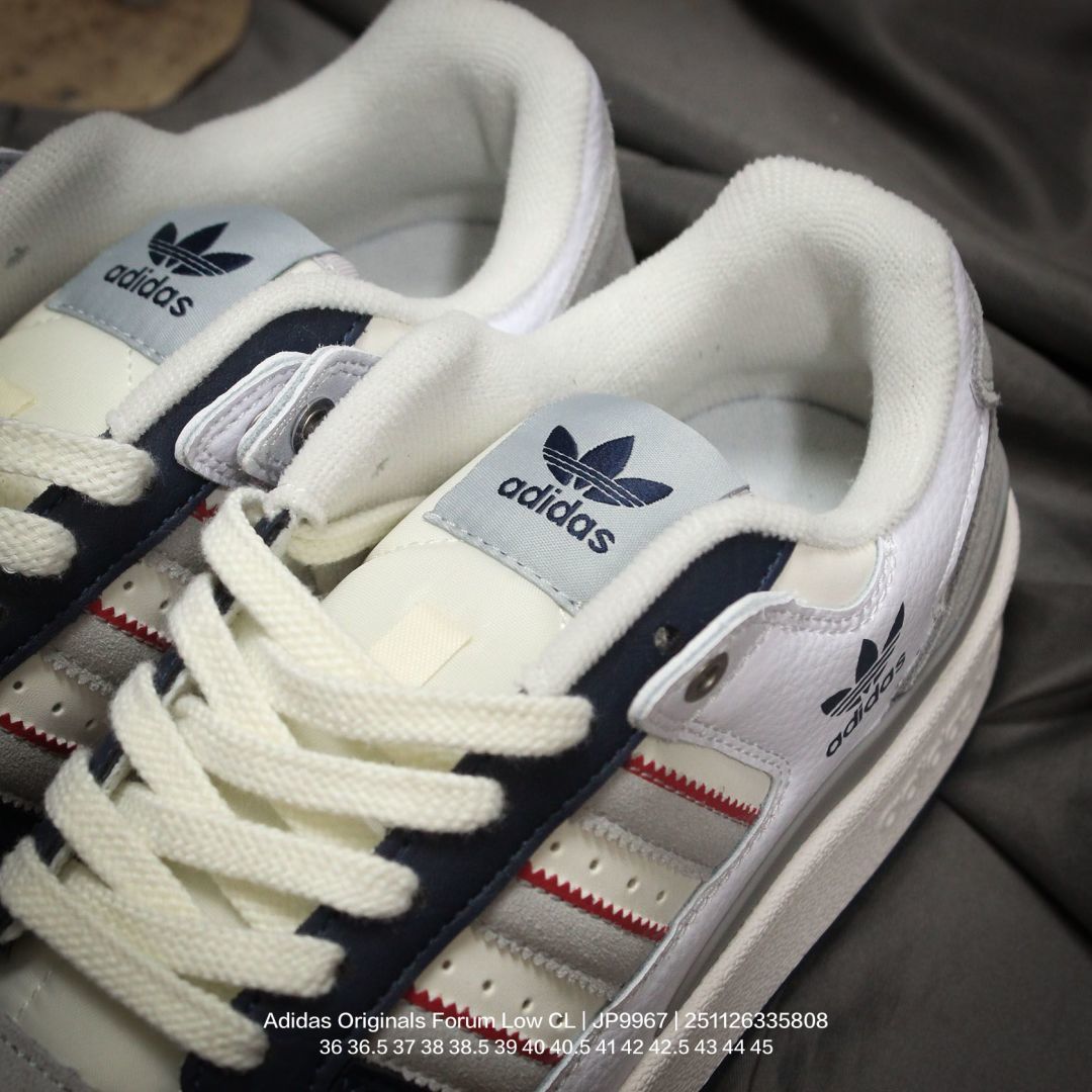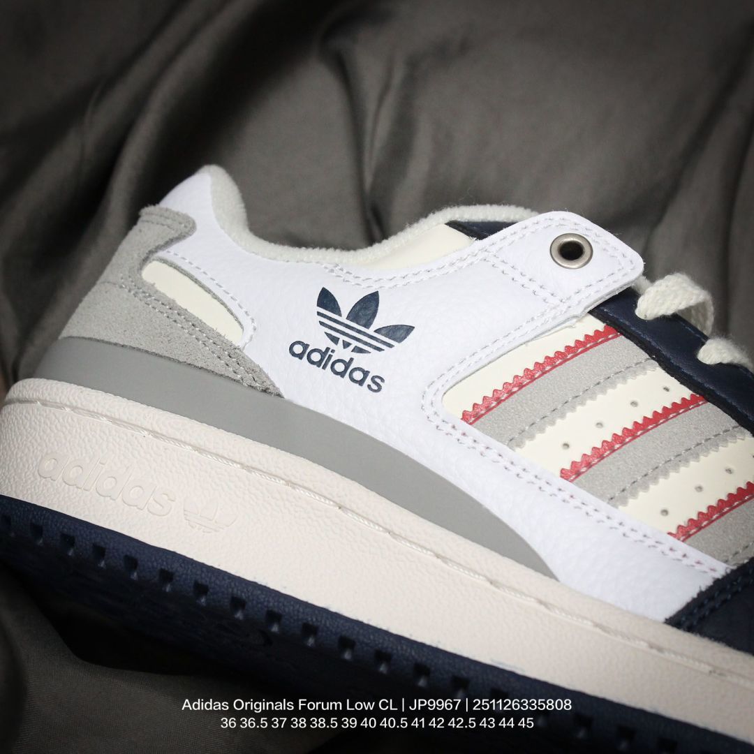 Adidas 阿迪达斯 升级原楦原纸版数据开发版型 采用固色翻毛皮鞋面材质 全新独立开发RB耐磨橡胶外底组合外露轻量EVA中底缓震嵌片最近超级火的一双鞋 阿迪达斯 三叶草Adidas Originals Forum Low CL 罗马系列低帮复古系带百搭休闲运动板鞋 J