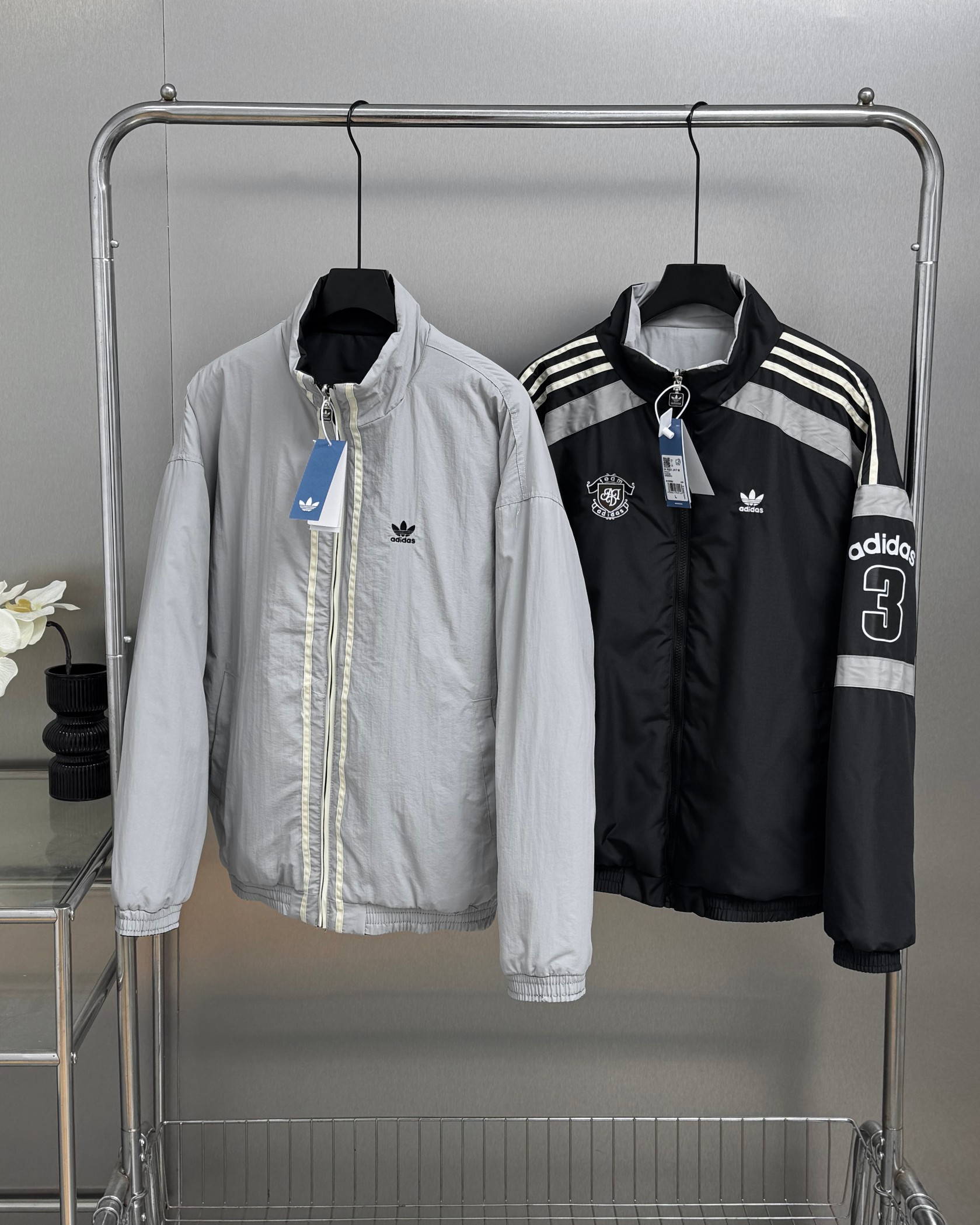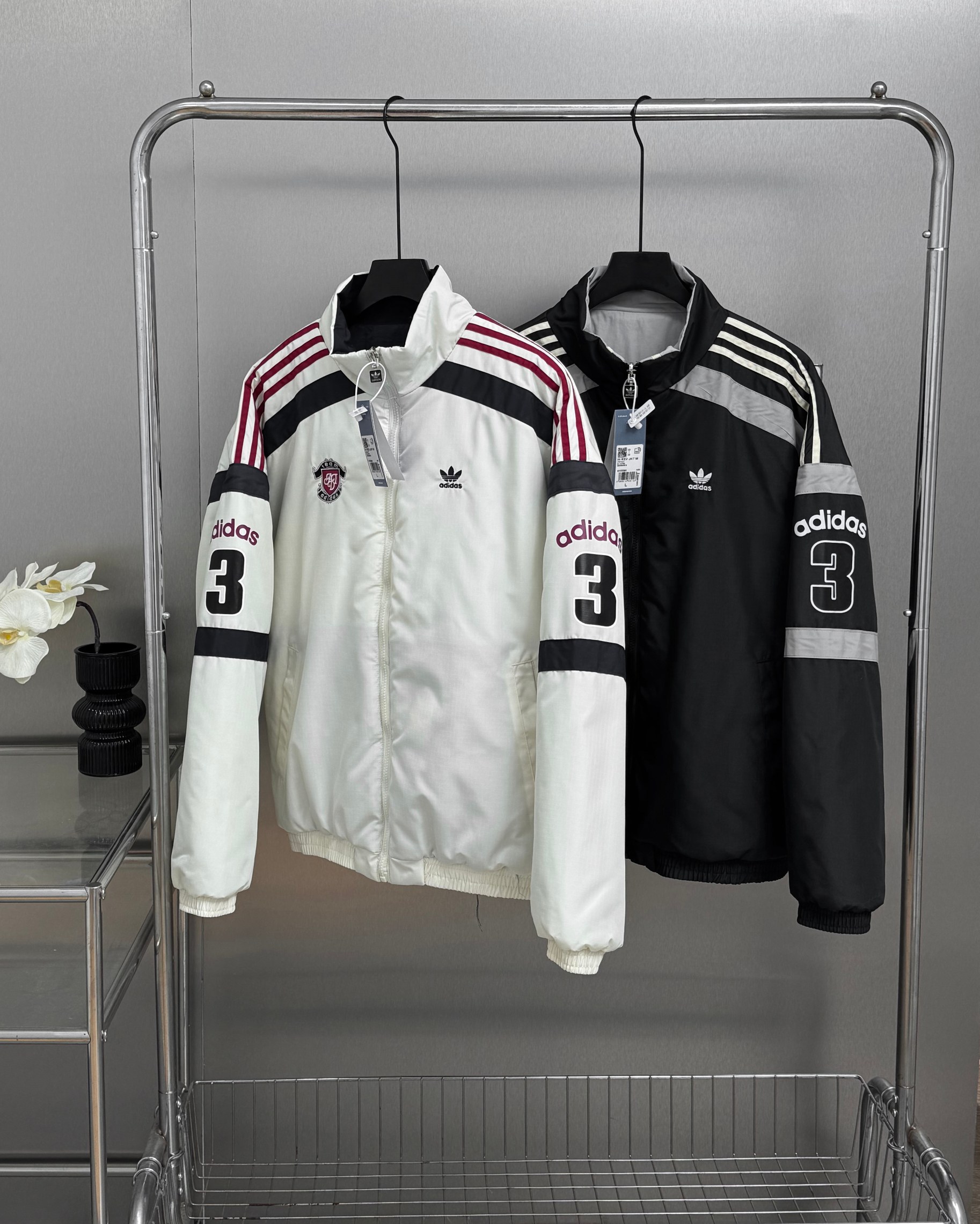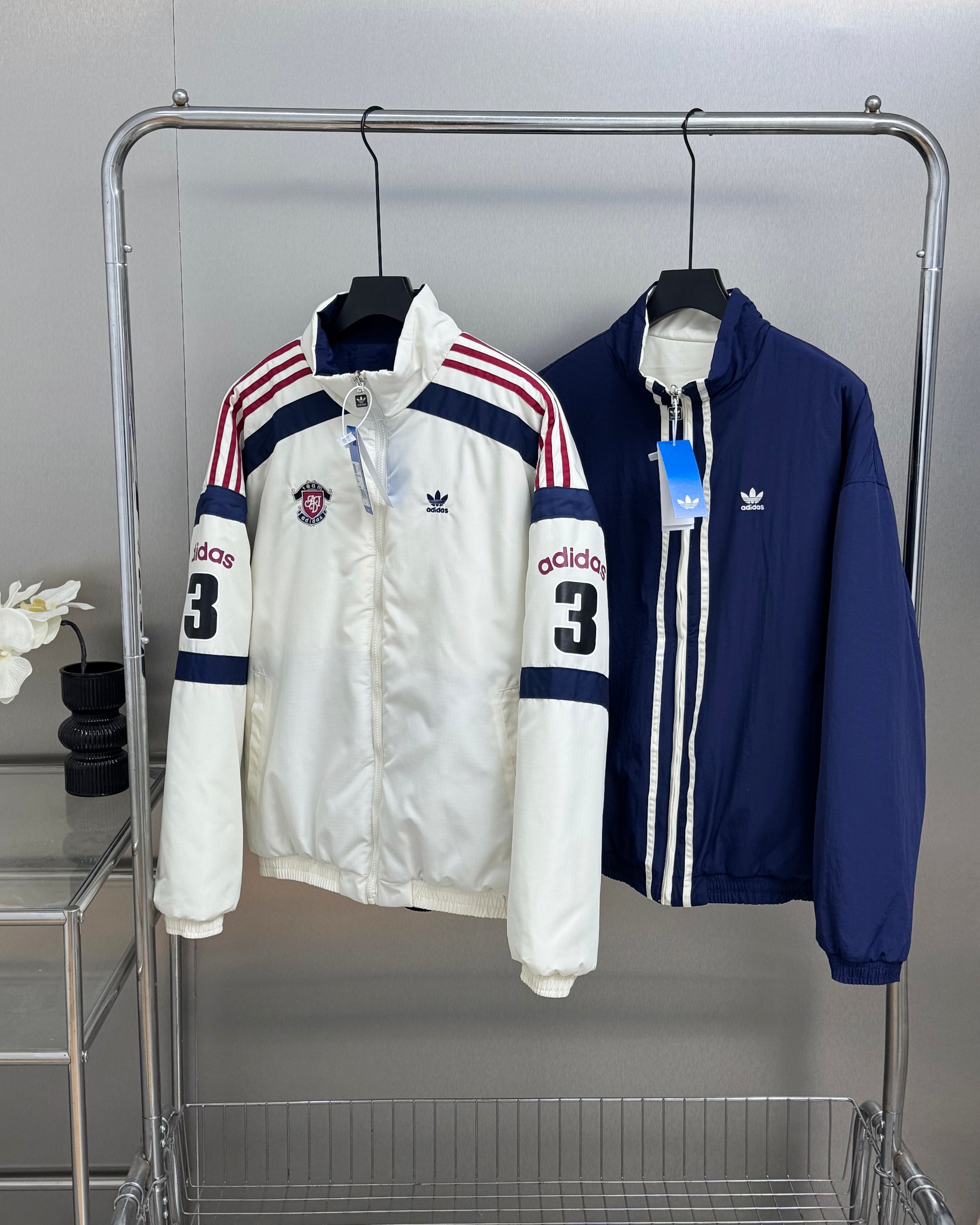 胸前的小巧标志与背面的数字3和adidas标识相映衬 展现简约而大气 双面设计 无论是纯洁的白色还是深邃的深蓝 都能轻松搭配 时尚有型 面料柔软保暖 无论是日常运动还是休闲时刻 男女皆宜 展现个性风采 立即入手 呈现原版风采的全新阿迪达斯三叶草双面穿运动棉服 以经典的三道杠风格 为男士和女士秋冬衣橱增添时尚必备 选择从纯白深蓝红条纹到低调黑色 雅致灰色或清新浅蓝 每一款都是精心设计 必眼入款