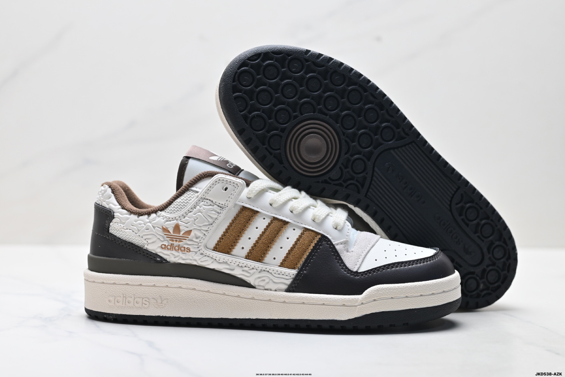 以复古篮球鞋的外形为基础 采用皮革拼接 简约百搭 更加贴合舒适 中底内侧网格造型起到点睛之笔 外底橡胶 更显复古