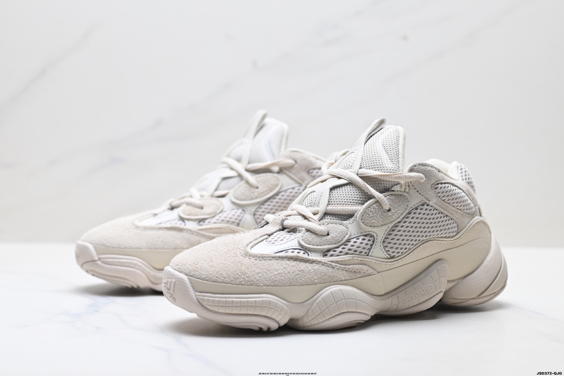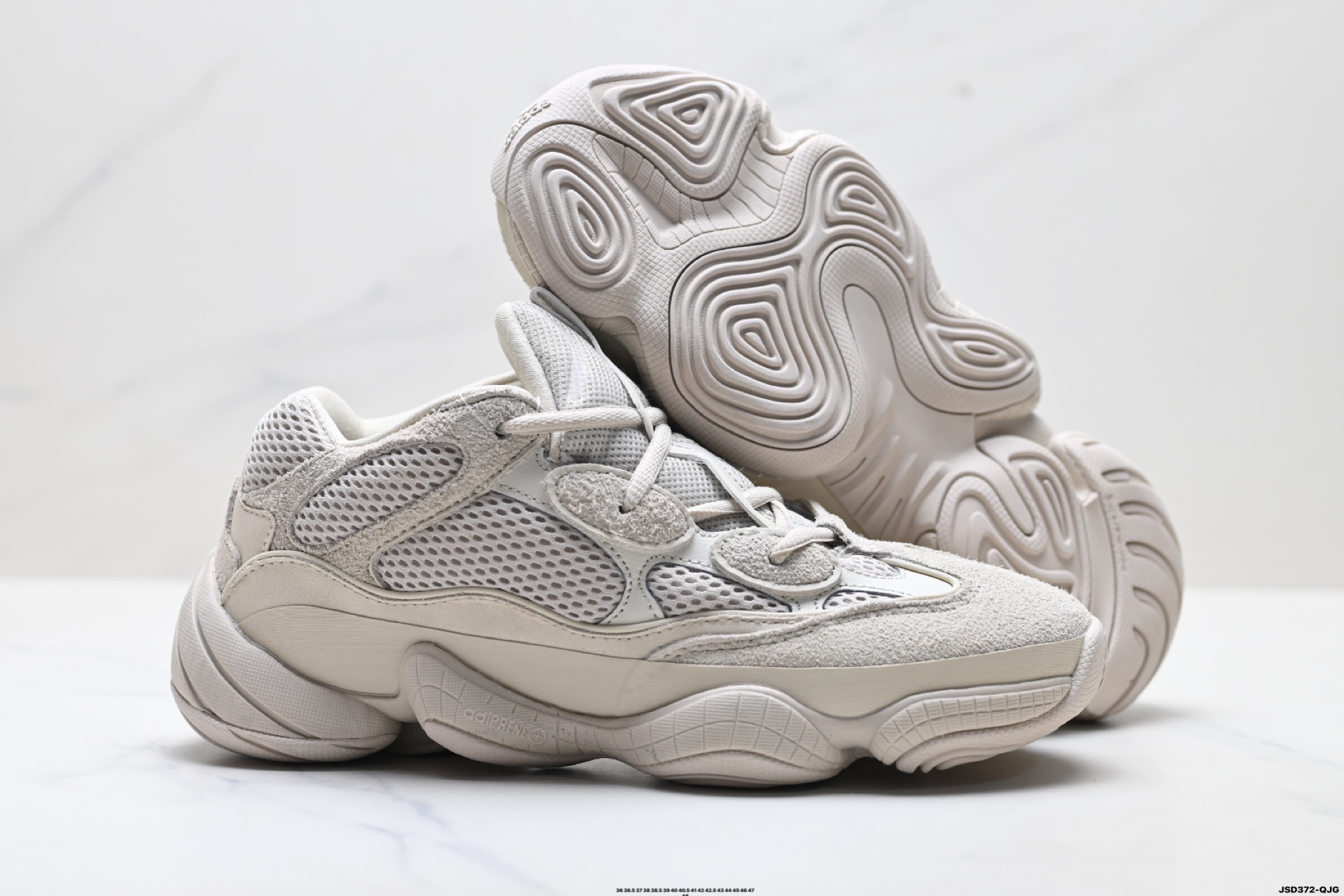 公司级阿迪达斯 YEEZY Desert Rat 椰子500 鞋面采用皮革 磨砂小牛皮 麂皮和网眼三种材质打造 以复古气息 十足的 adiPrene 中底取代早前的人气BOOST 缓震设计