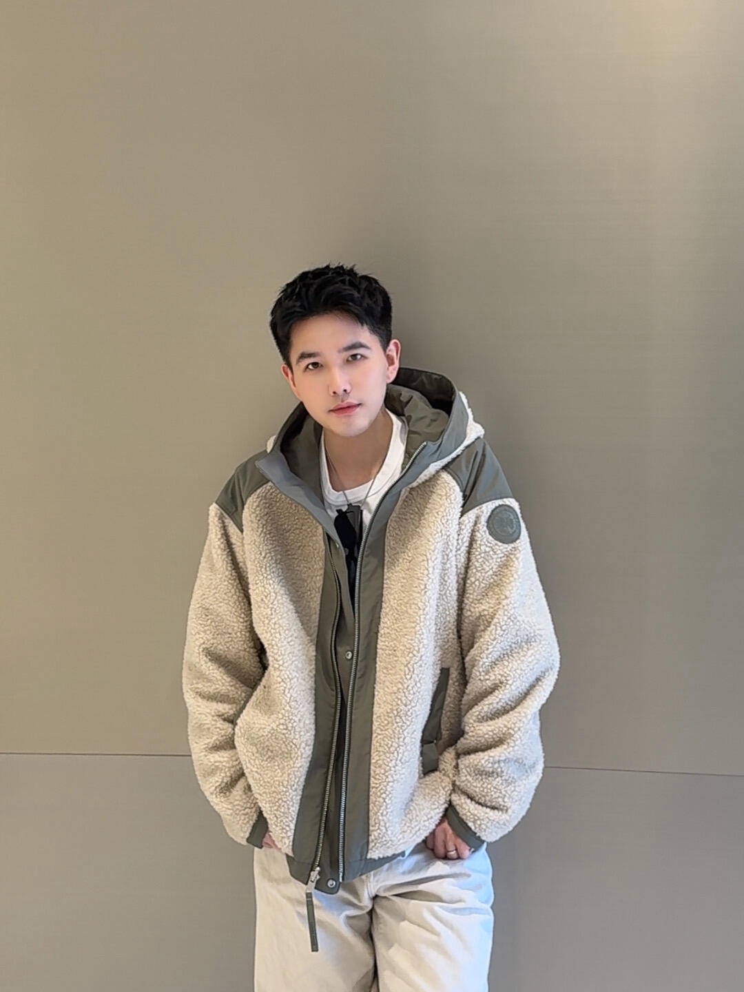 大鹅双面穿羊羔毛拉链连帽