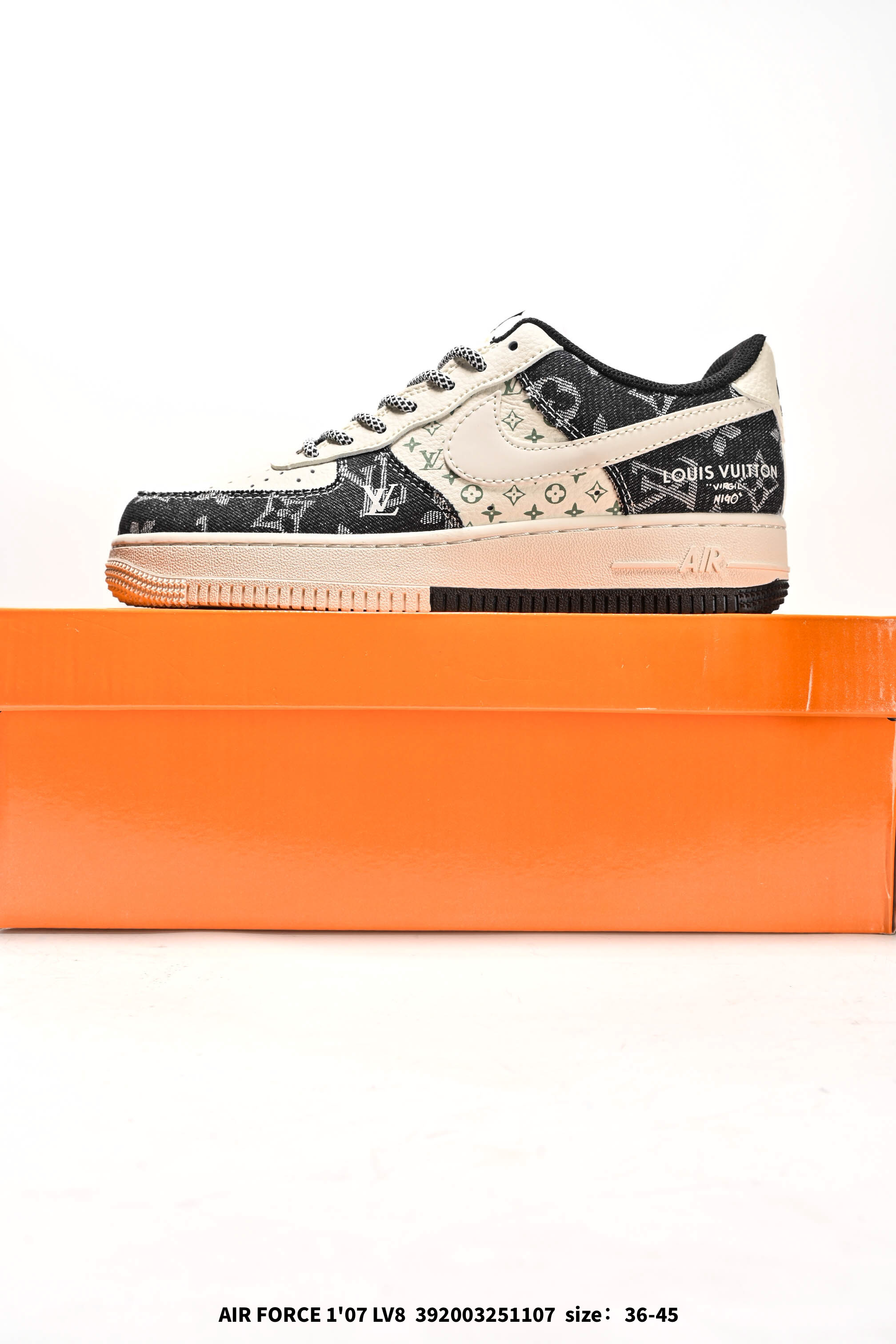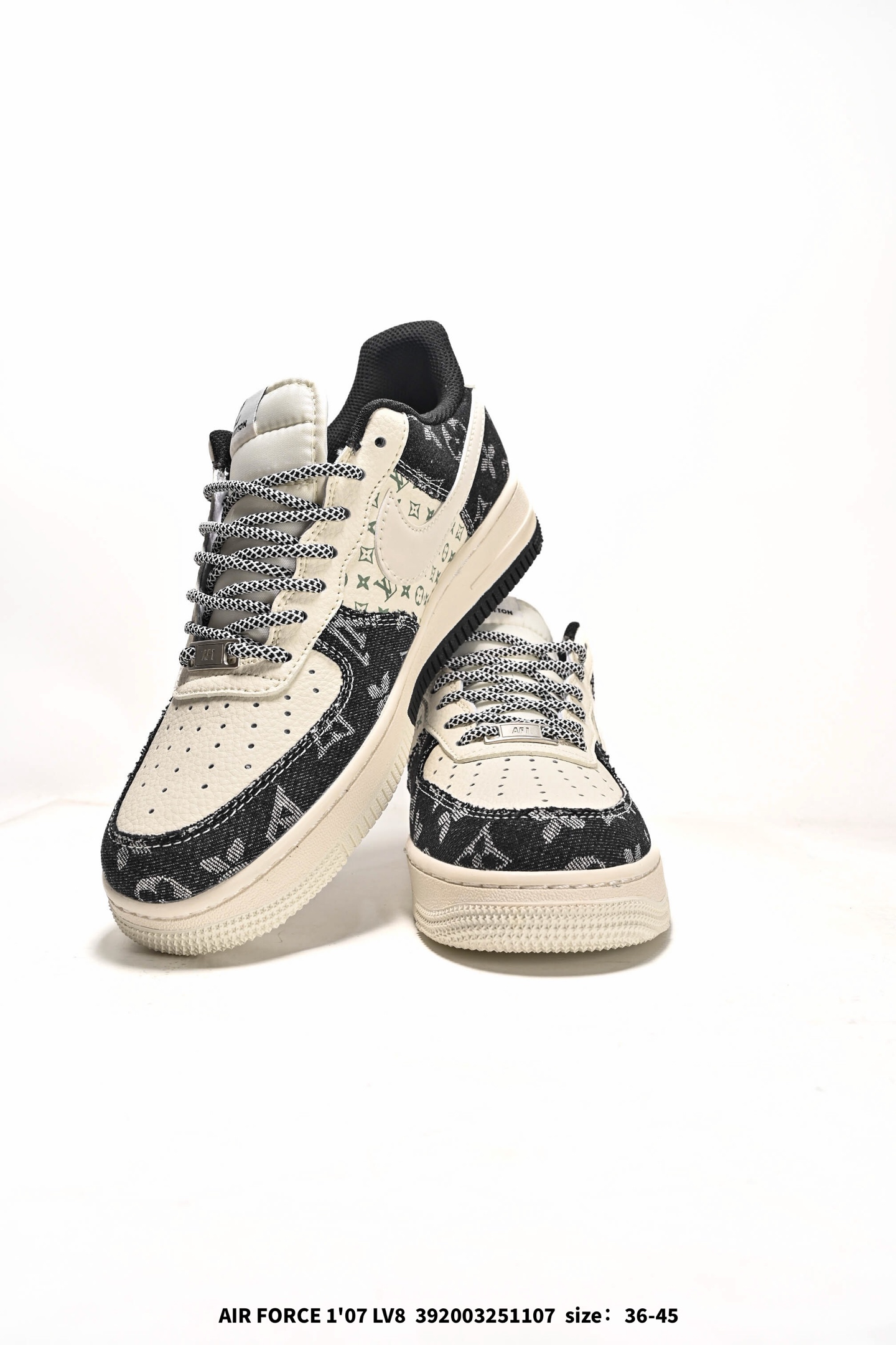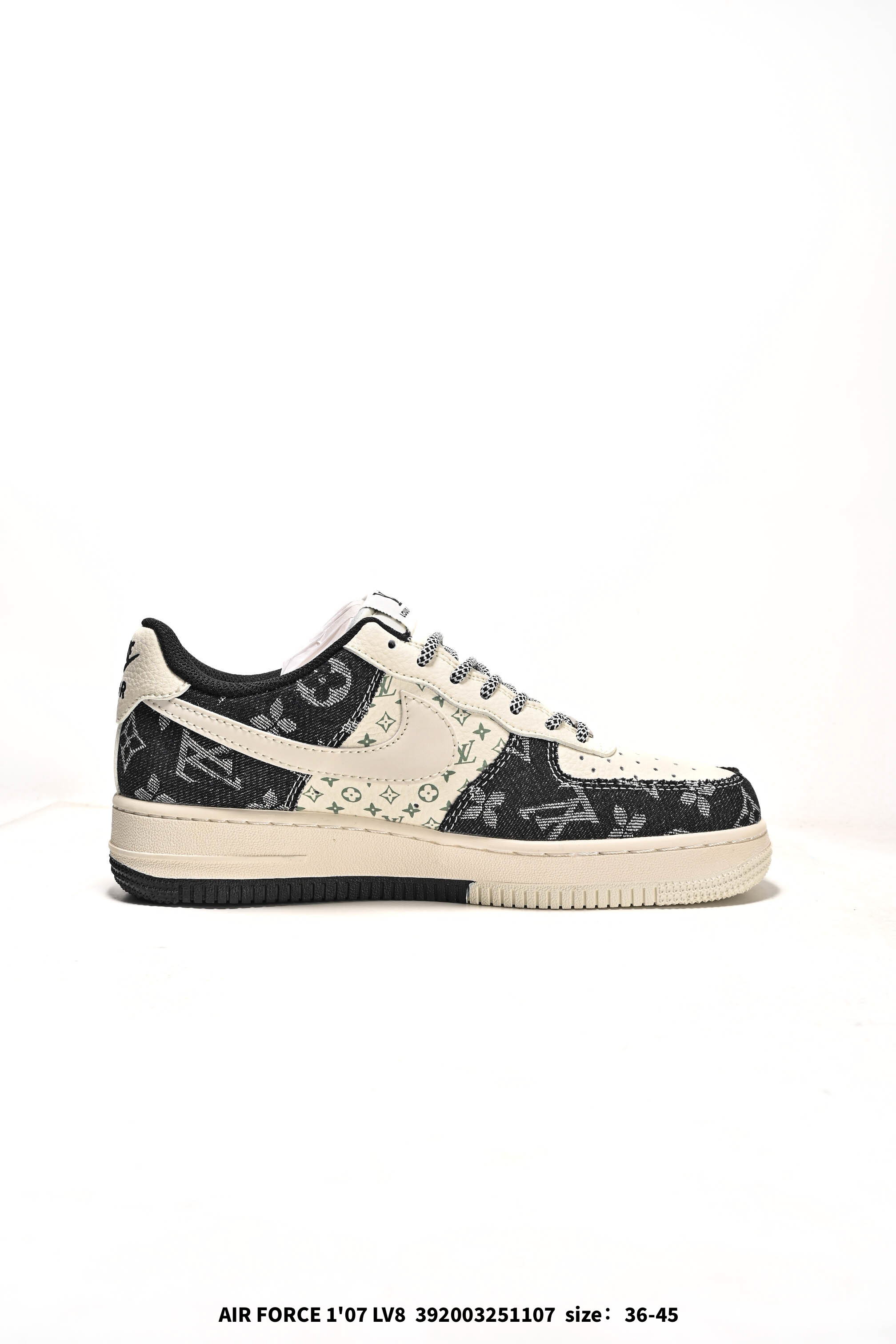Nike Air Force 1 07 Low LV联名 猪八牛仔米黑 空军一号定制休闲板鞋