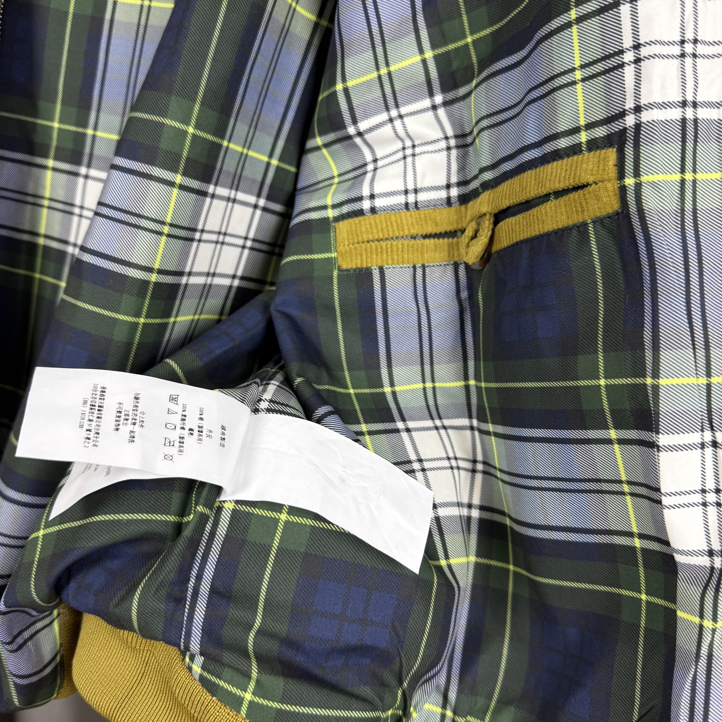 面料采用定制高克重灯芯绒 上身挺拔有型 内里采用定制苏格兰式格纹里布 内里下摆有口袋 胸口绣花采用进口田岛绣花机 刺绣小马logo饱满立体 搭配纯色整体低调大气 袖口和下摆采用松紧螺纹 整件衣服做工走线工整严密 男生女生都可以轻松驾驭 领标上的二维码可直接扫码进官网