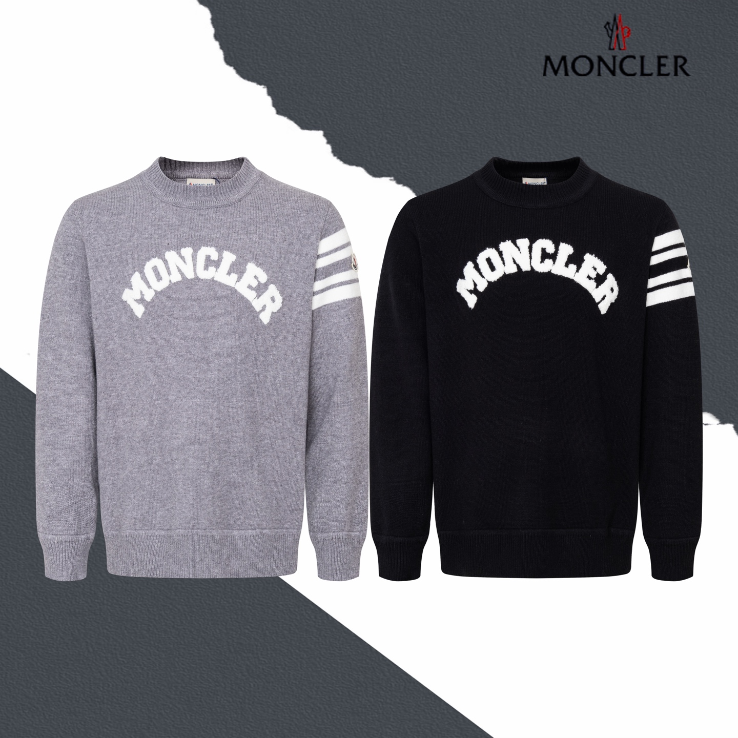 MONCLER蒙口字母标识毛巾绣针织圆领毛衣
