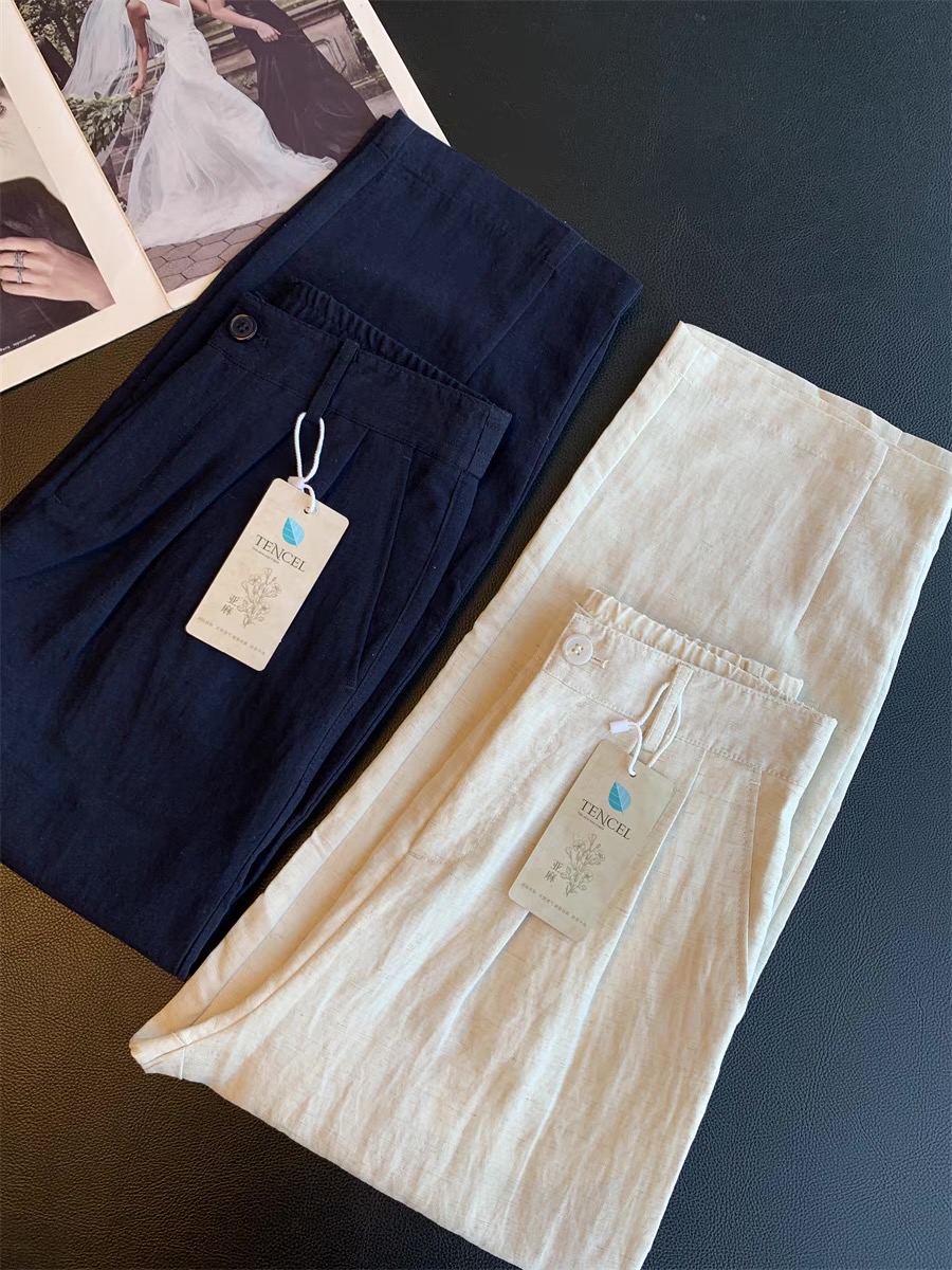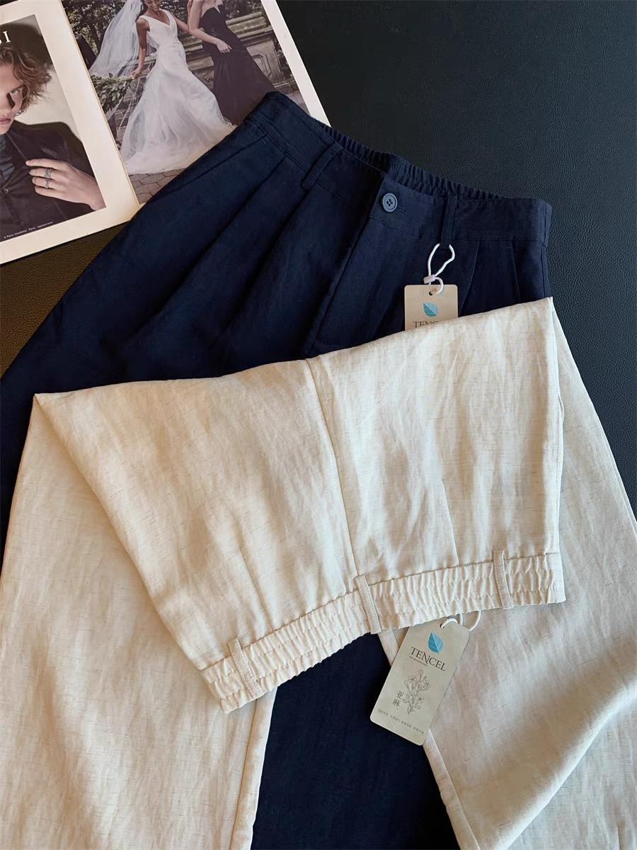 120378859 - 休闲裤巨显腿直 莱赛尔冰丝休闲裤女2026新款亚麻宽松九分直 576362
