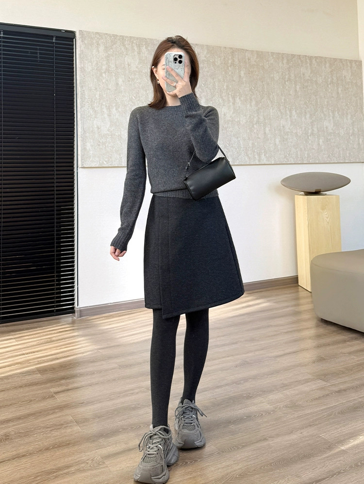 版型man芬 上身真的美炸了 我真的好喜欢 前前后后改版了数十款 才敲定这长度 裁剪比例刚好 遮肉显瘦显高 几乎可以搭配各种上衣 是看到就想自留的单品 羊毛混纺纱线细腻 面料质地轻薄 纹路清晰 手感顺滑 平纹组织 布面平整挺括 高腰处理 视觉上抬升腰线比例显高显腿长臀上贴合 修饰臀部的线条 前侧不规则一片式设计 错位立体工艺打破裙身单调 五分中裙的长度 也不会压个子 纹路简约大气 日常百搭不吸腿 高ji耐看的色系 搭配界的打把子 日常搭配外套或者叠加毛衣 时尚又优雅