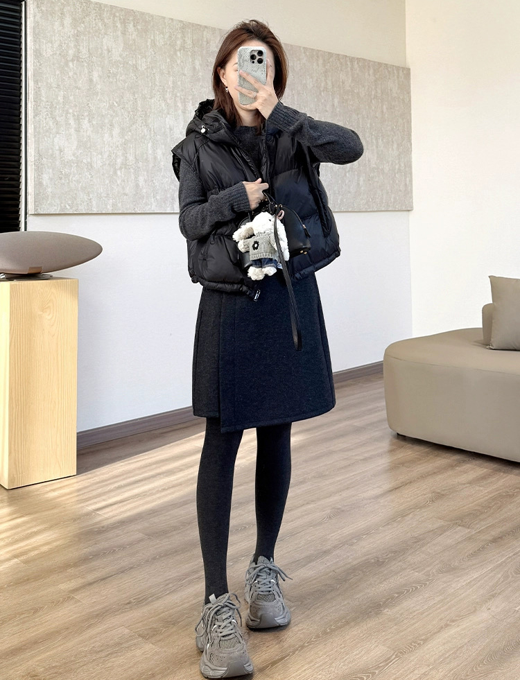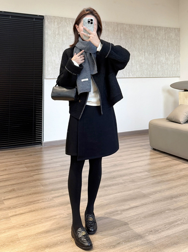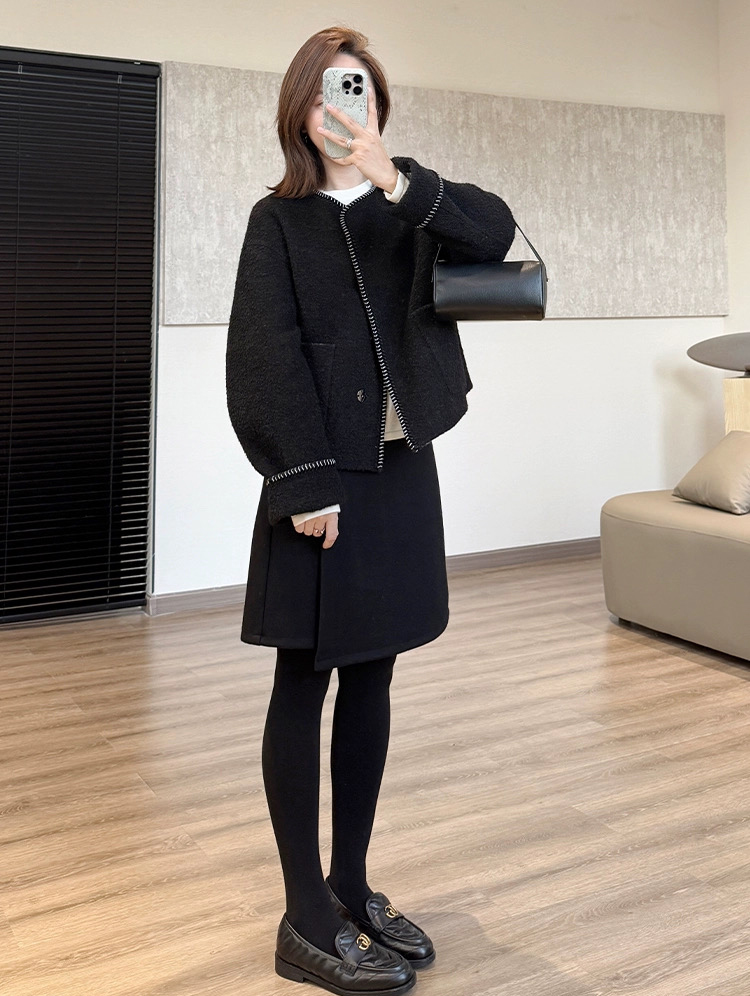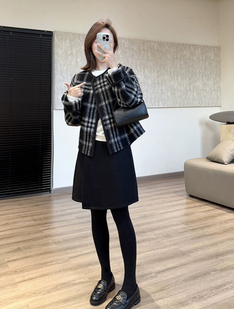 70210804 - 2025冬季新款设计感错位小A型巨显瘦羊毛半身五分中裙 版型 420713