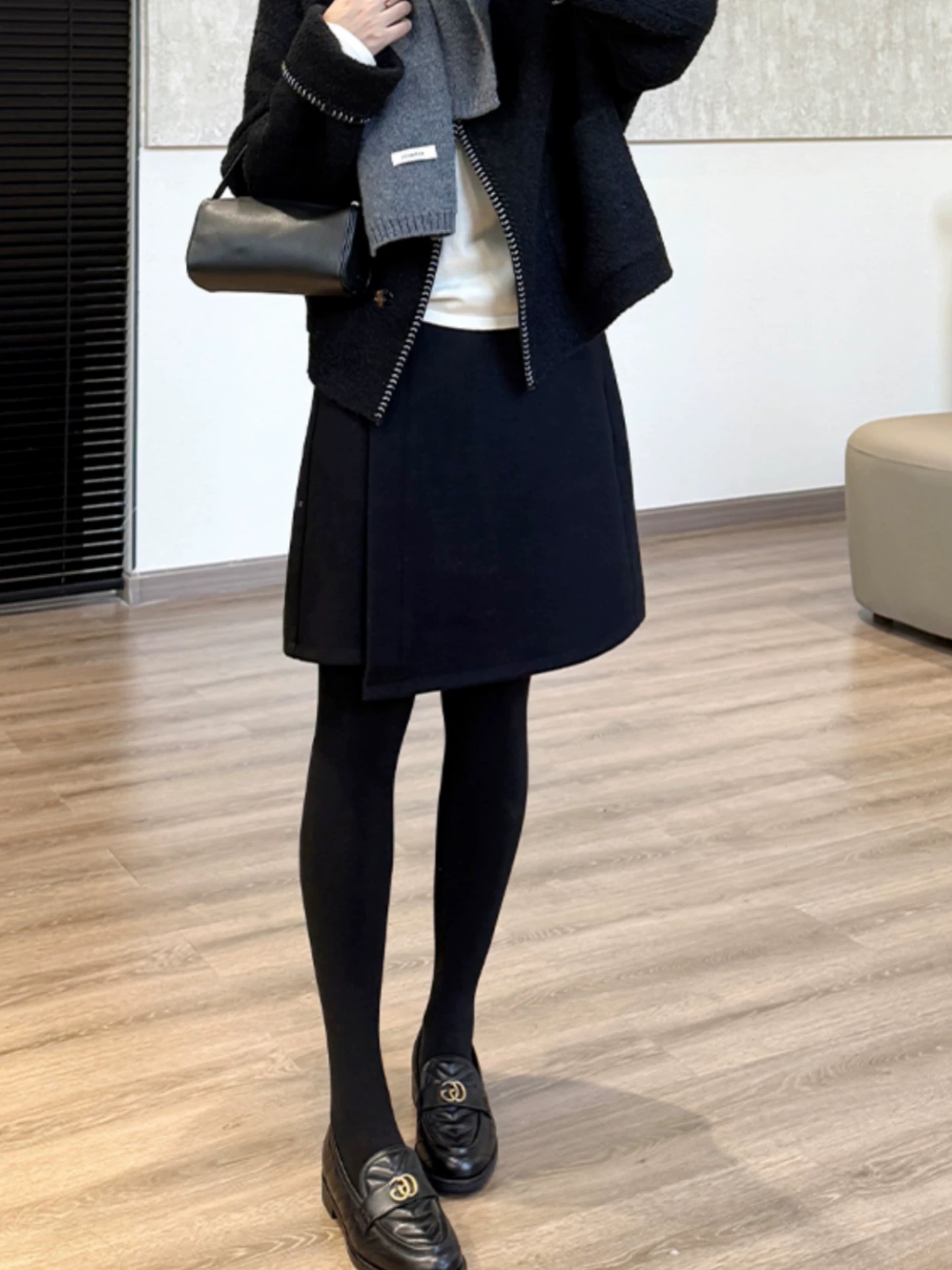 2025冬季新款设计感错位小A型巨显瘦羊毛半身五分中裙