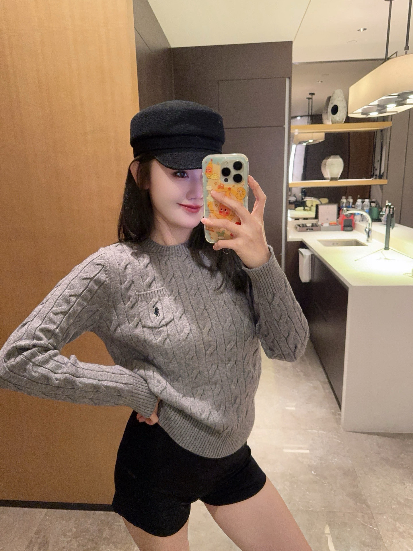 Ralph Lauren 拉夫劳伦RL口袋小马刺绣麻花圆领长袖针织毛衣
