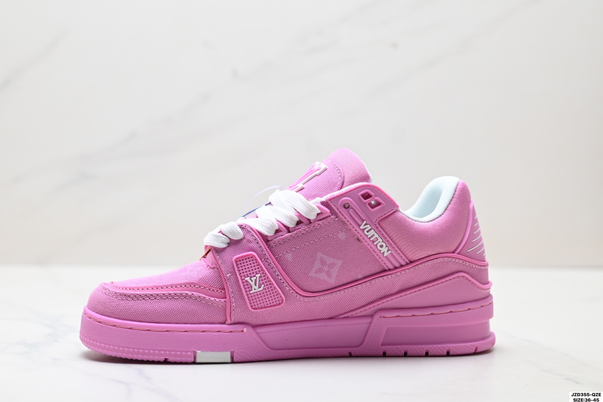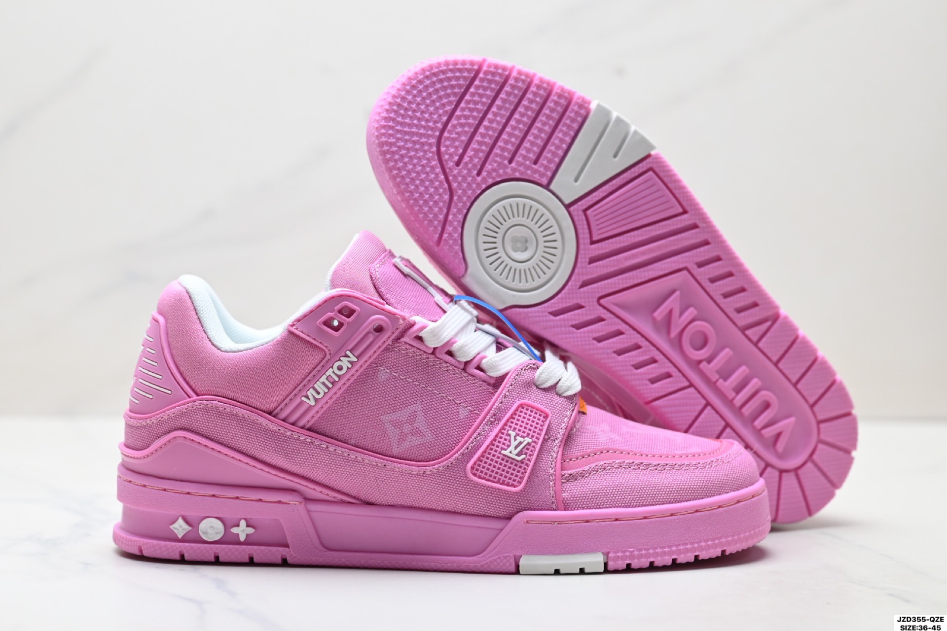 全新 Sneaker Lo 公司级路易威登板鞋 一代 经典款 官方一比一版本 新款 LV Tyler x LOUIS VUITTON Trainer 1 0 帆布拼接皮面 圆头系带 低帮 板鞋 圆头系带低帮生活休闲鞋男女款 LV Trainer最新配色 L家 篮球鞋风格运动鞋 该鞋由艺术总监 VIRGIL ABLOH设计 垫脚聚米微料加透气英伦风 细节原版一致 Size 39 45 36 45