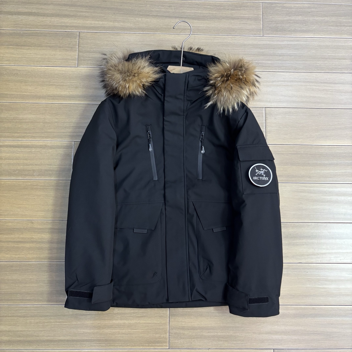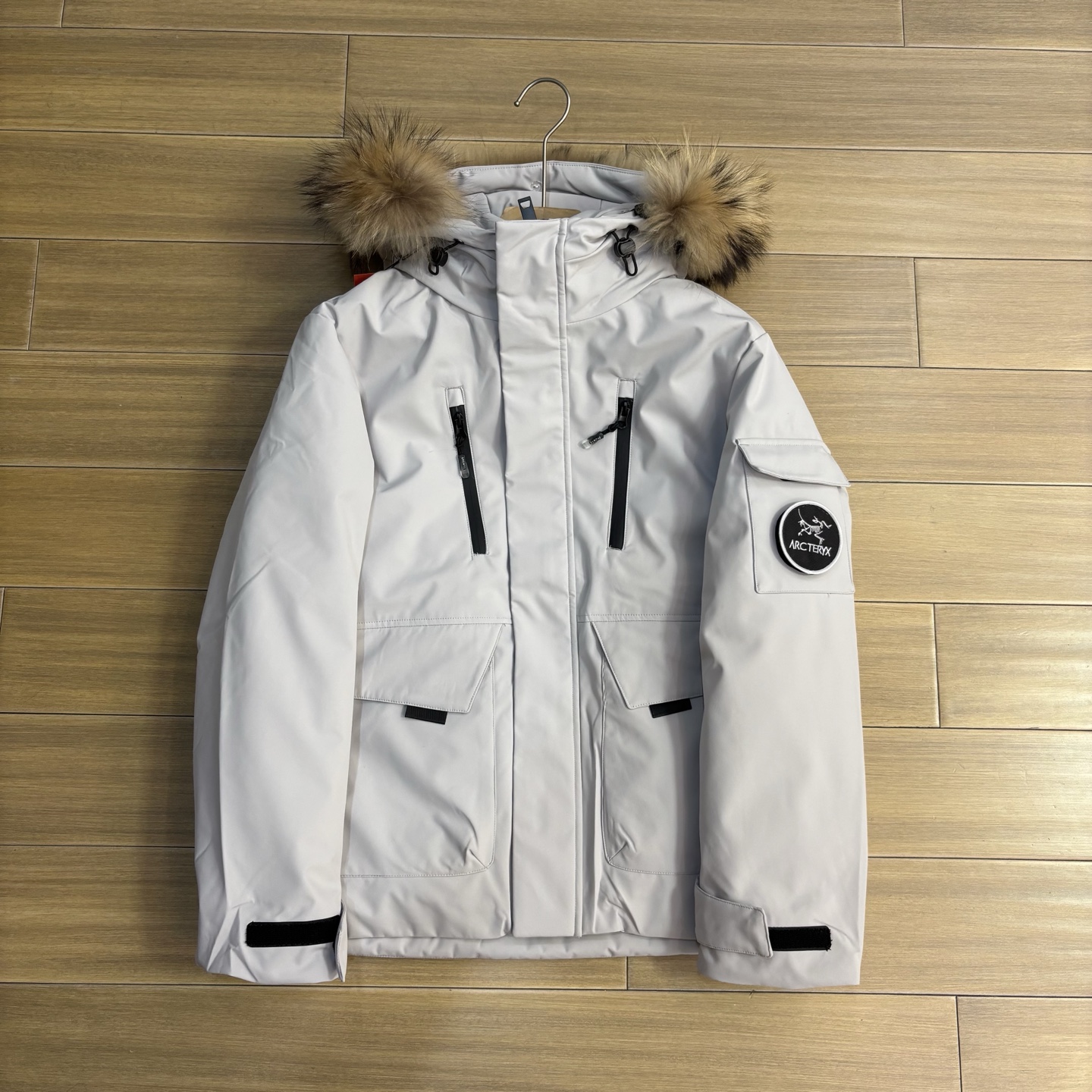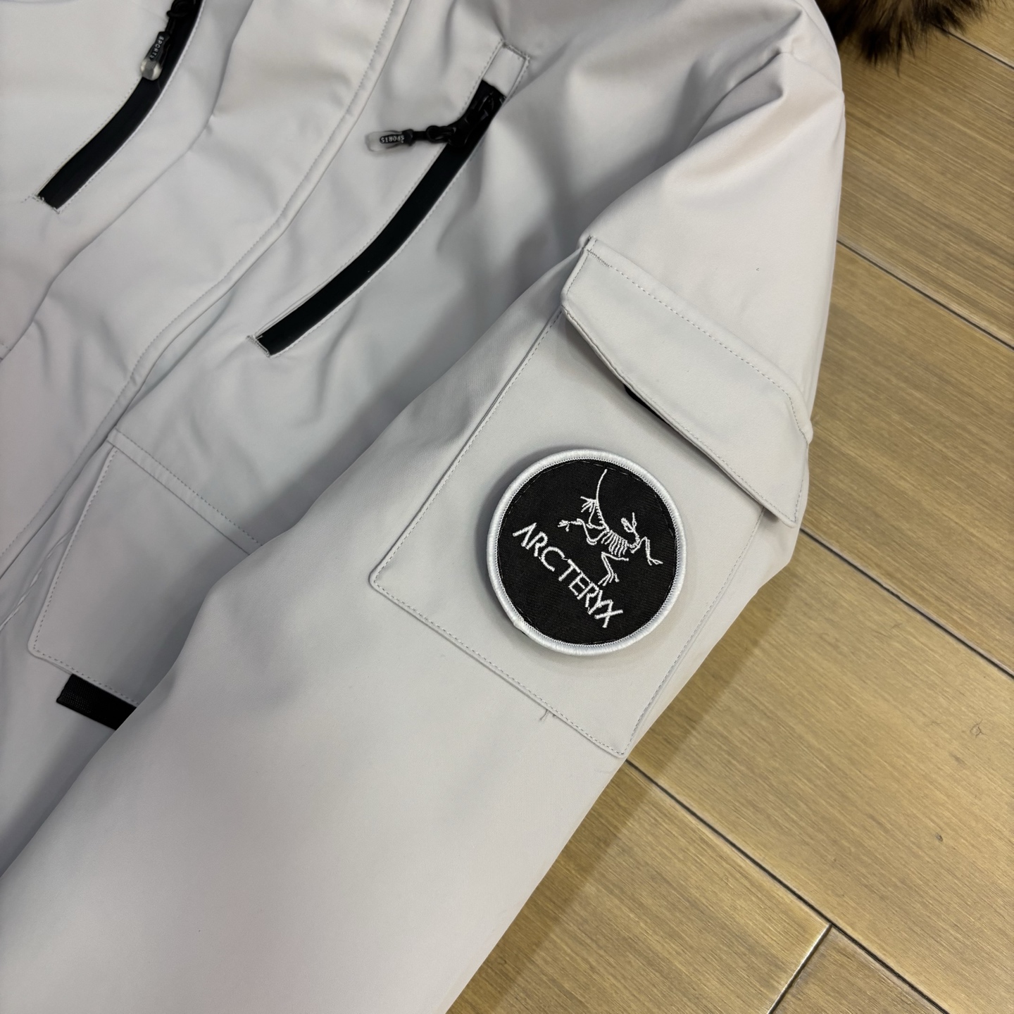 其流线的裁剪 显示出了一种独有的时尚 冲锋款功能型两用袖口 将美学达到了一个巅峰的设计 摆底内测 有固定防风松紧 也有双重调节扣 在具备功能的同时 增强了整体的上身版型