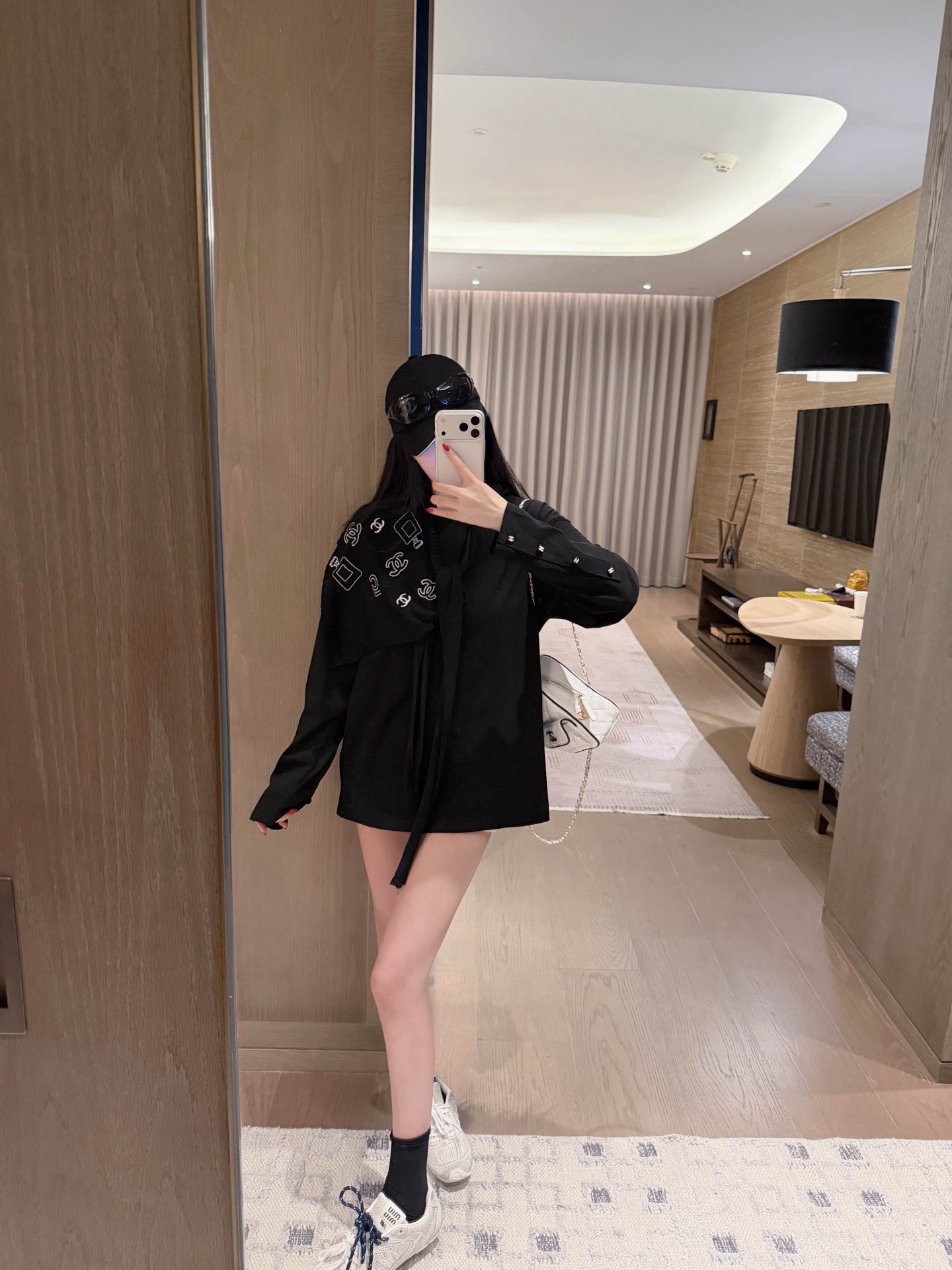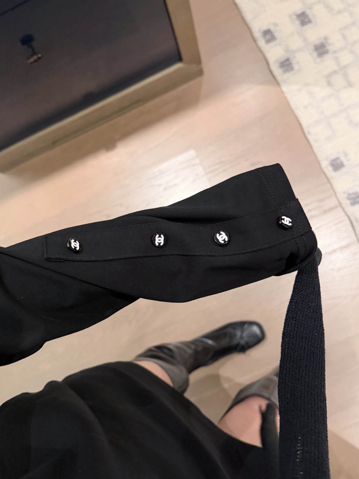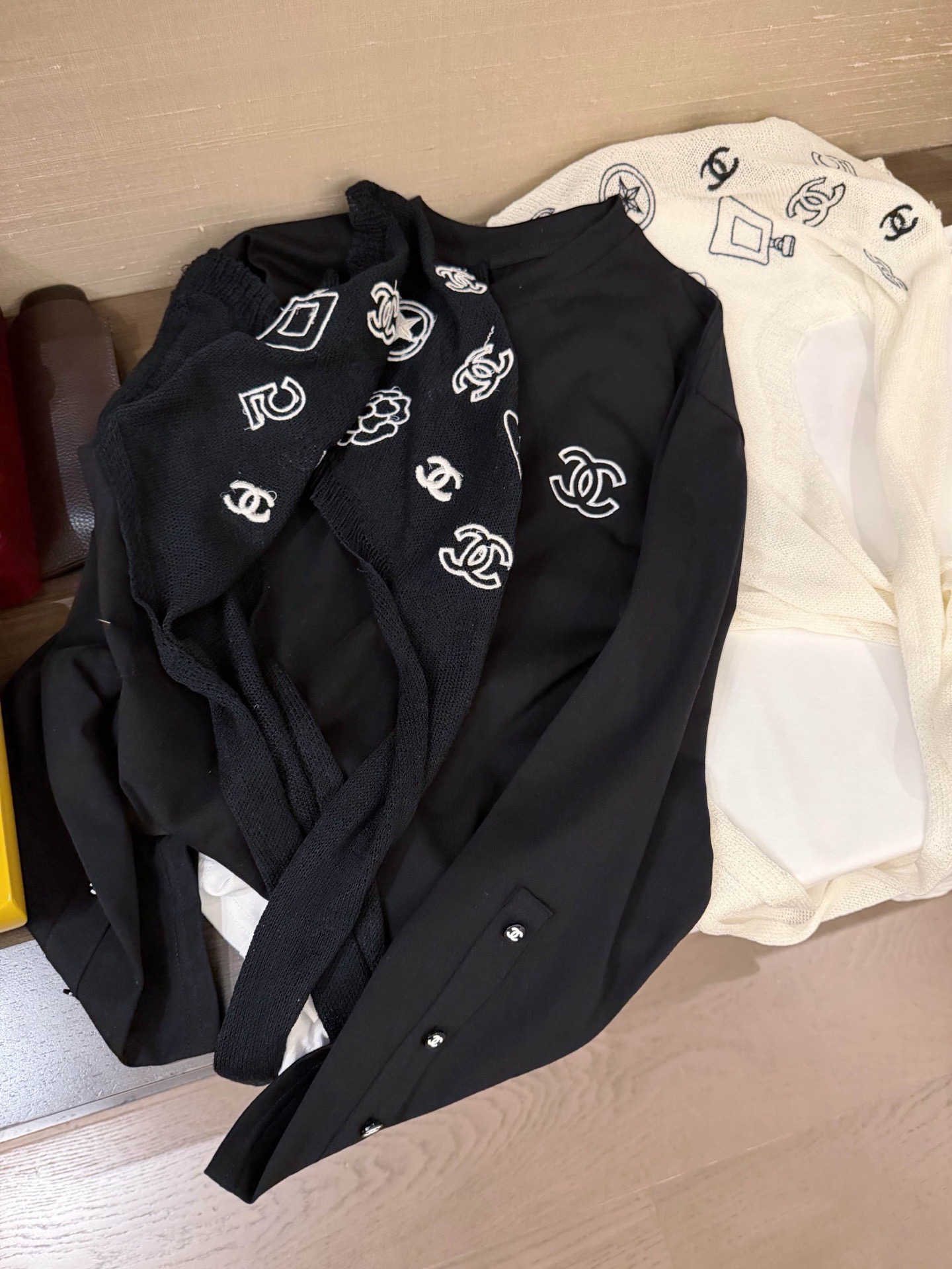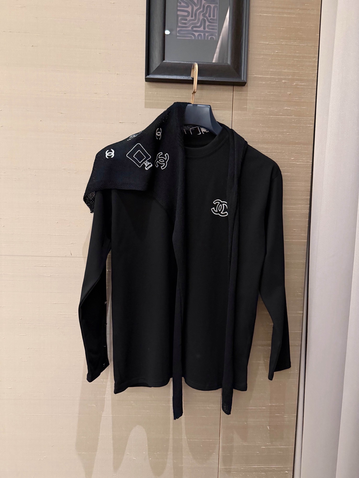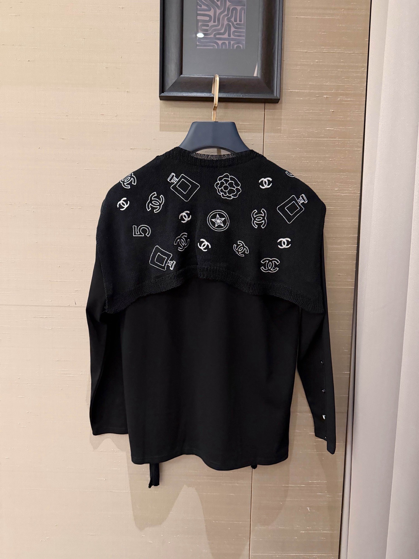 Chanel香奈儿小香双C刺绣定制纽扣圆领长袖T恤配披肩