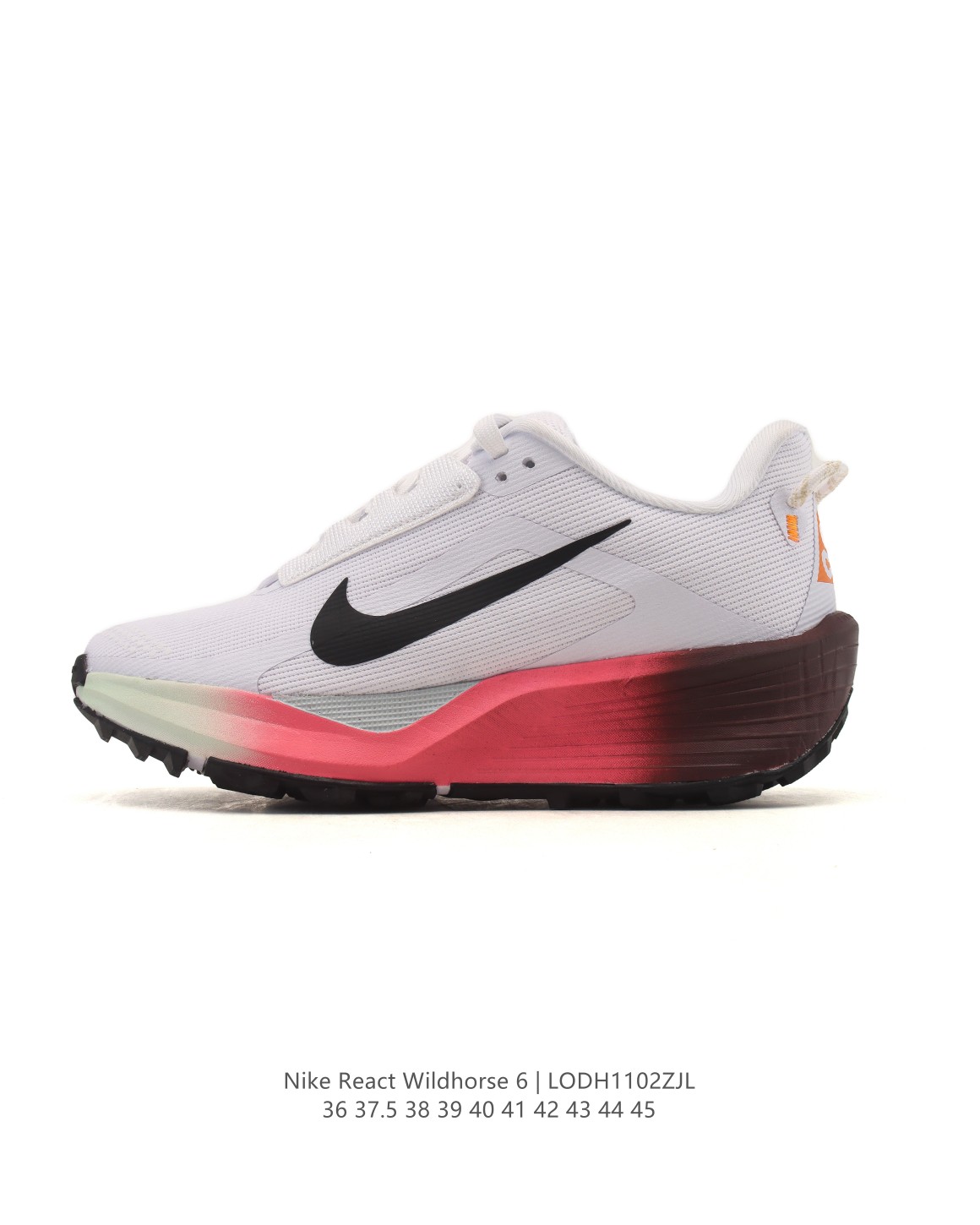 公司级 耐克 NIKE REACTX PEGASUS TRAIL 6 男女同款越野跑步鞋夏新款耐克飞马 该鞋款搭载出众回弹的 ReactX 泡绵中底 多种地面 皆可轻松驾驭 采用别致设计 上脚潮鞋 踏上 GR 11 步道 穿越比利牛斯山脉 以海岸灯塔作为向导 从地中海一路畅跑到坎塔布里亚海 外侧饰有红白彩绘条纹图案 灵感源于越野途中路标的颜色 Nike ReactX 泡绵轻盈耐穿 令双足贴近地面 塑就柔软顺畅的非凡迈步体验 鞋头高磨损区域融入橡胶和紧密织物 鞋面采用织物搭配开孔设计 塑就出色透气性 外底精简橡胶用量 可实现公路到小径的顺畅过渡 同时保留了全掌型 ReactX 中底设计 改良抓地底纹结合橡胶材质 提供可驾驭崎岖小径的出众抓地力 同时令你在公路上顺畅迈步 Flywire 技术 有助稳固中足