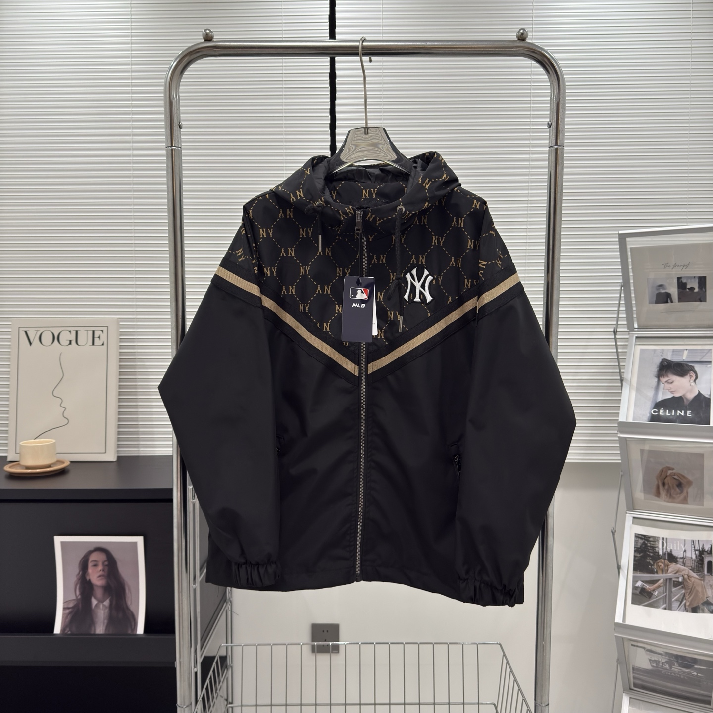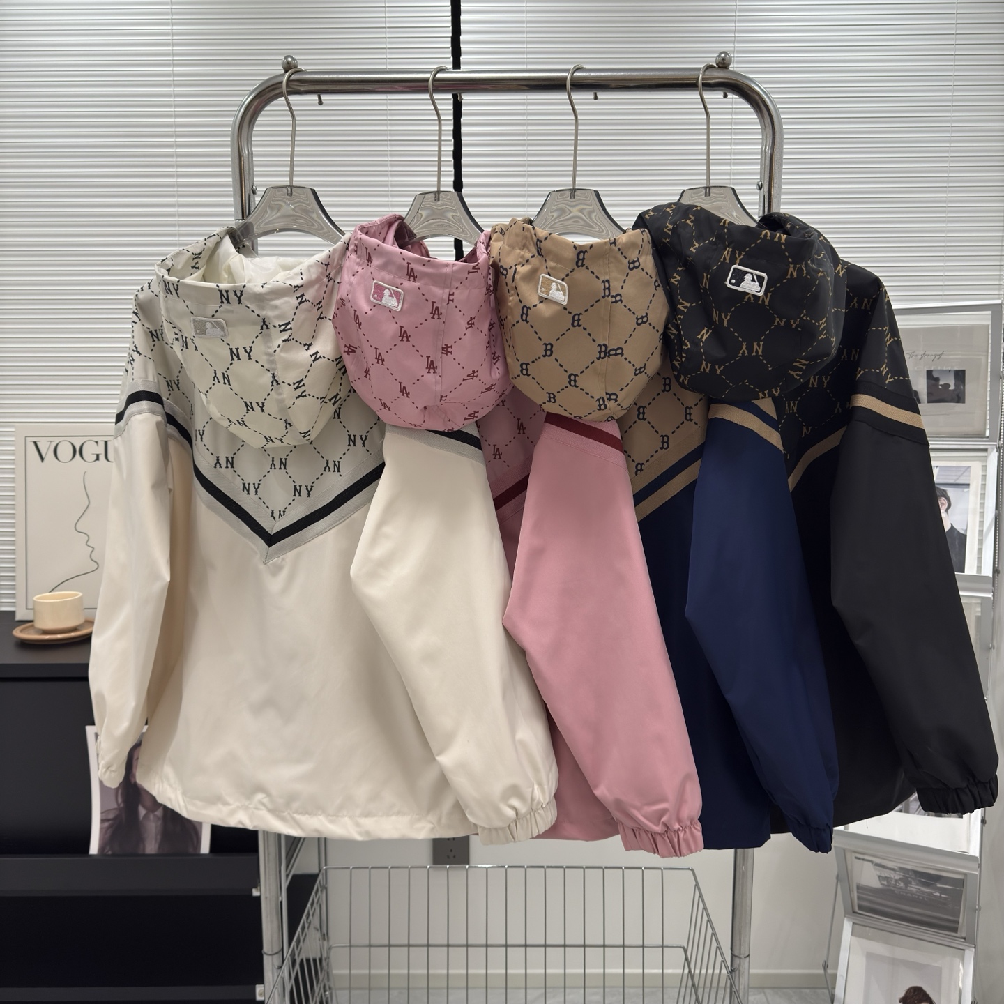 25春秋季新款经典Ny老花满印图案 肩连袖部位纯色面料拼接 大身定织提花面料 众多网红上身推荐氛围感十足 细节到位 版型超正 户外工装大口袋设计 两侧大口袋可斜插可翻盖 巨能装 连帽设计 收纳手感柔和 面料质感韧性 上身挺括舒适 廓形剪裁 显瘦有型 0144