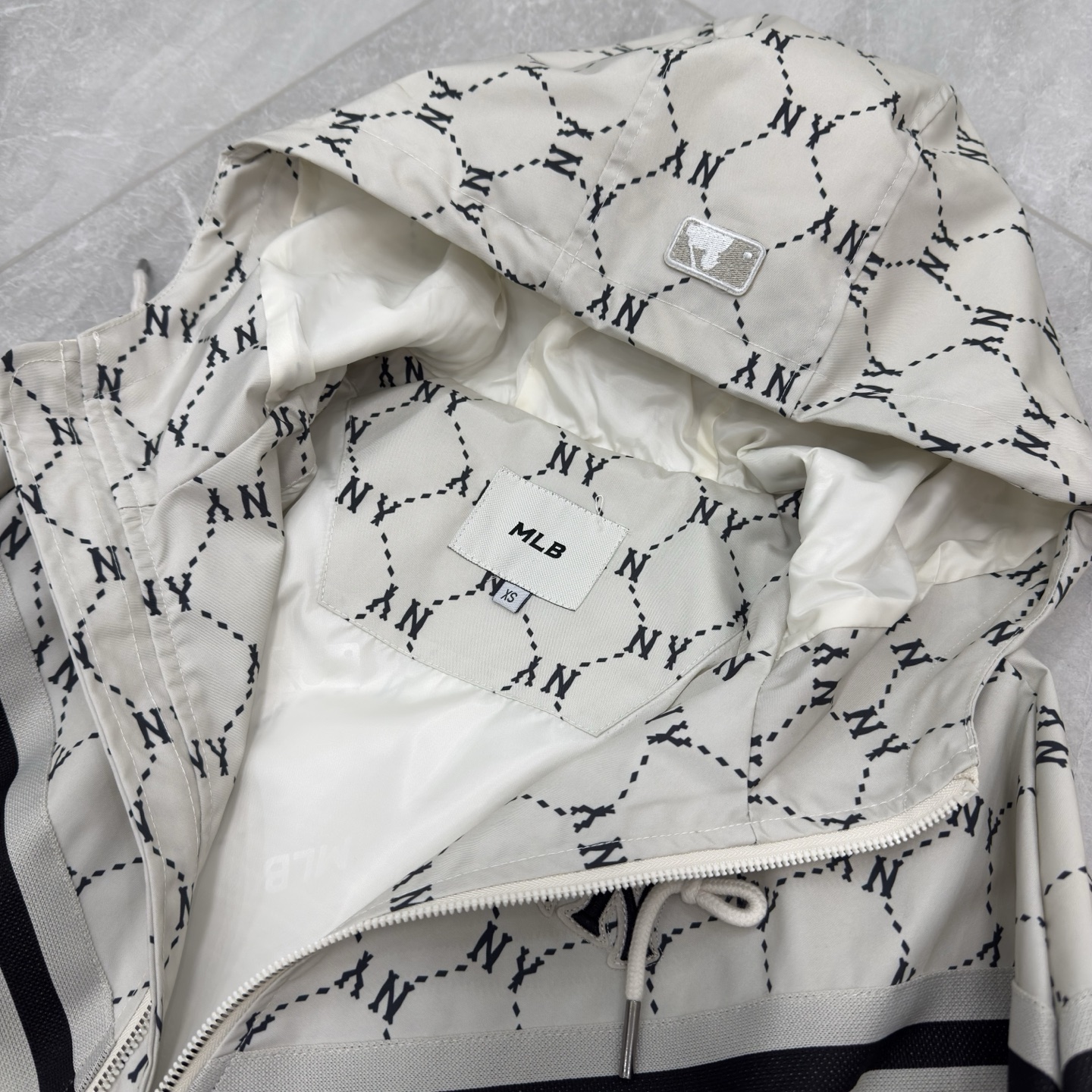 NY洋基队小红书超火满印外套 温馨双拼色夹克元气款 MLB专柜同步最新款 户外必备单品 真正的工艺精细 原工厂定制优质面料 不是世面普通的布料 质感细腻 螺纹针织横纹定制更显档次和层次感 面料密度均匀 抗皱耐磨手感柔和细腻时尚 做工考究整体工艺复杂 小姐姐小哥哥一眼就沦陷在其中 百搭拼色显瘦而不臃肿
