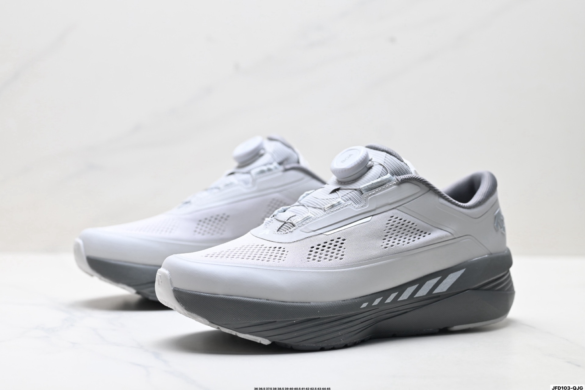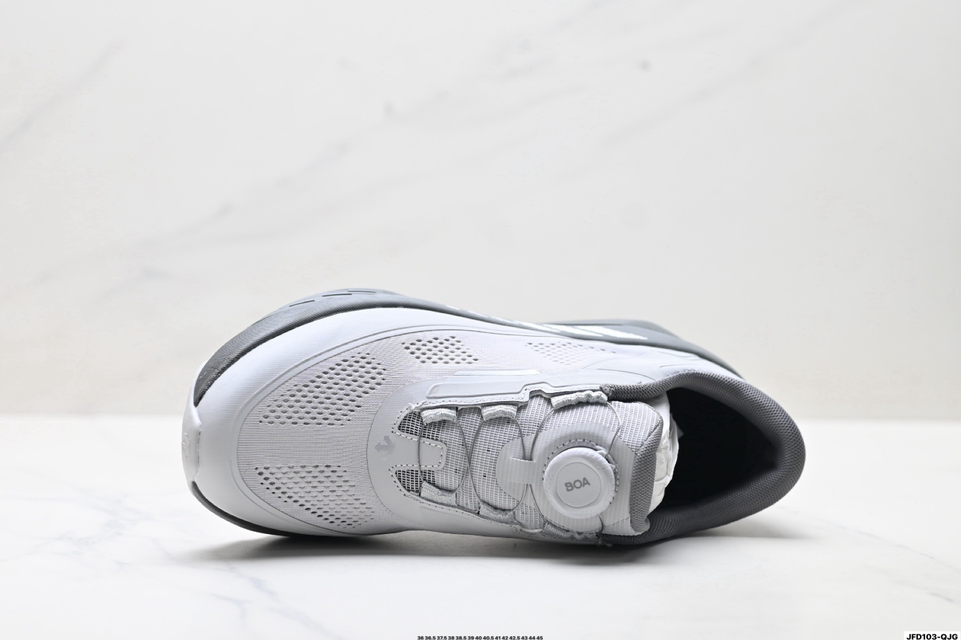 采用大网眼材质鞋面 轻薄通透不闷热 前掌易弯折设计 提供灵活的穿着感受 后跟Z FOAM填充 缓震回弹 BOA FIT SYSTEM系带系统 便捷穿脱