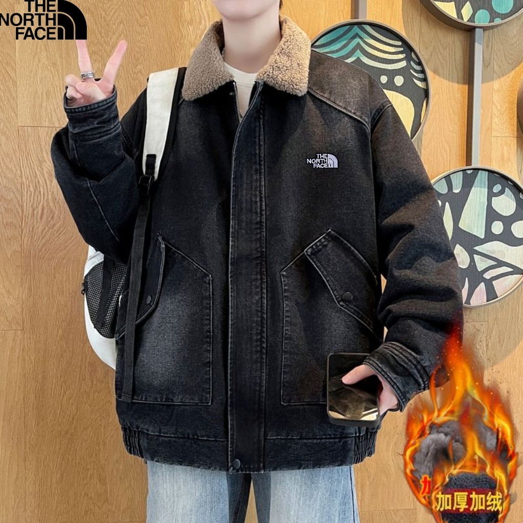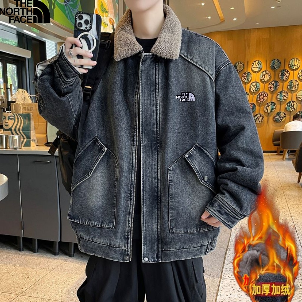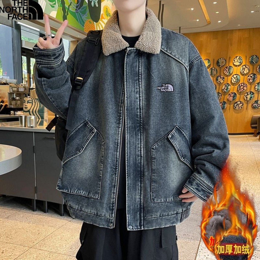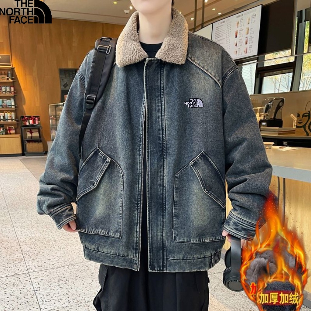 北面The North Face冬季新款 男女同款立领加绒加厚保暖宽松牛仔羊羔绒外套 加厚羊羔毛夹克