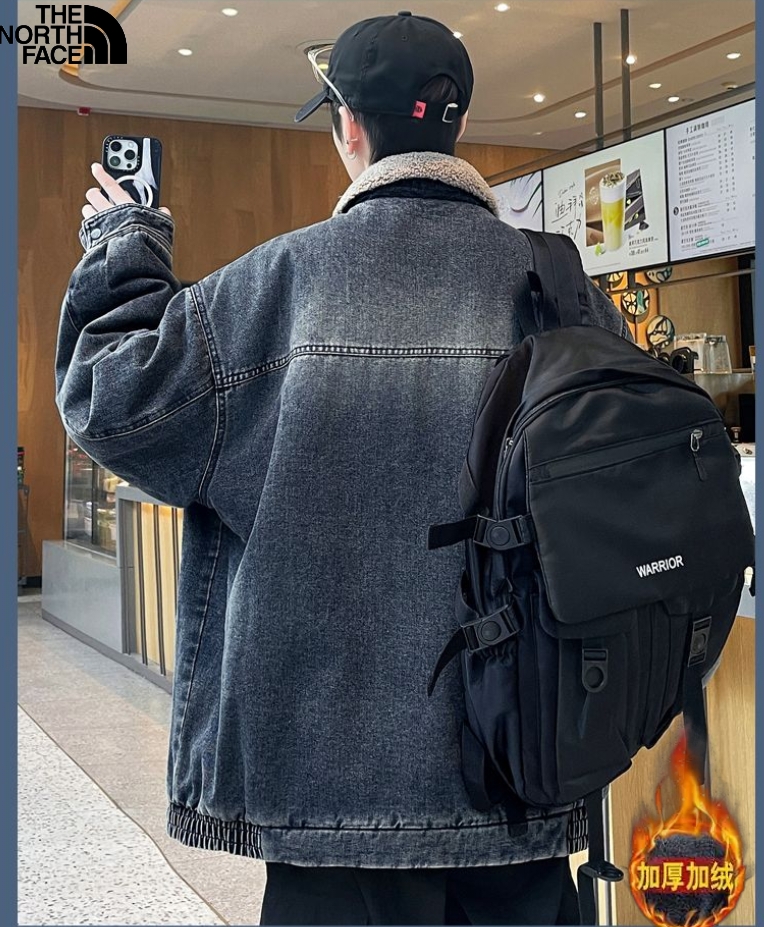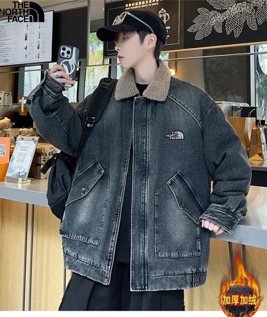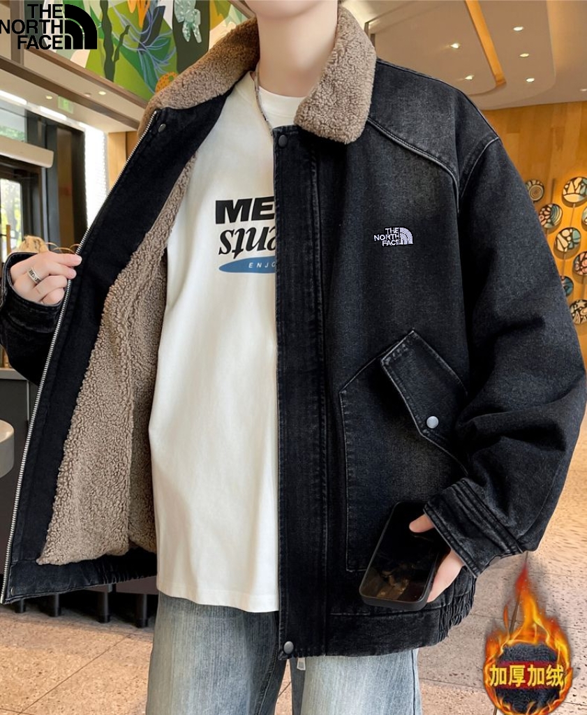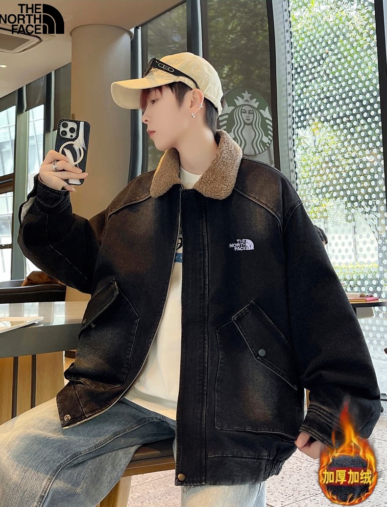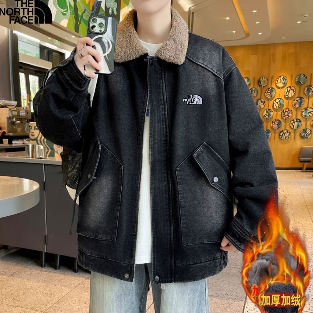 北面The North Face冬季新款 男女同款立领加绒加厚保暖宽松牛仔羊羔绒外套 加厚羊羔毛夹克