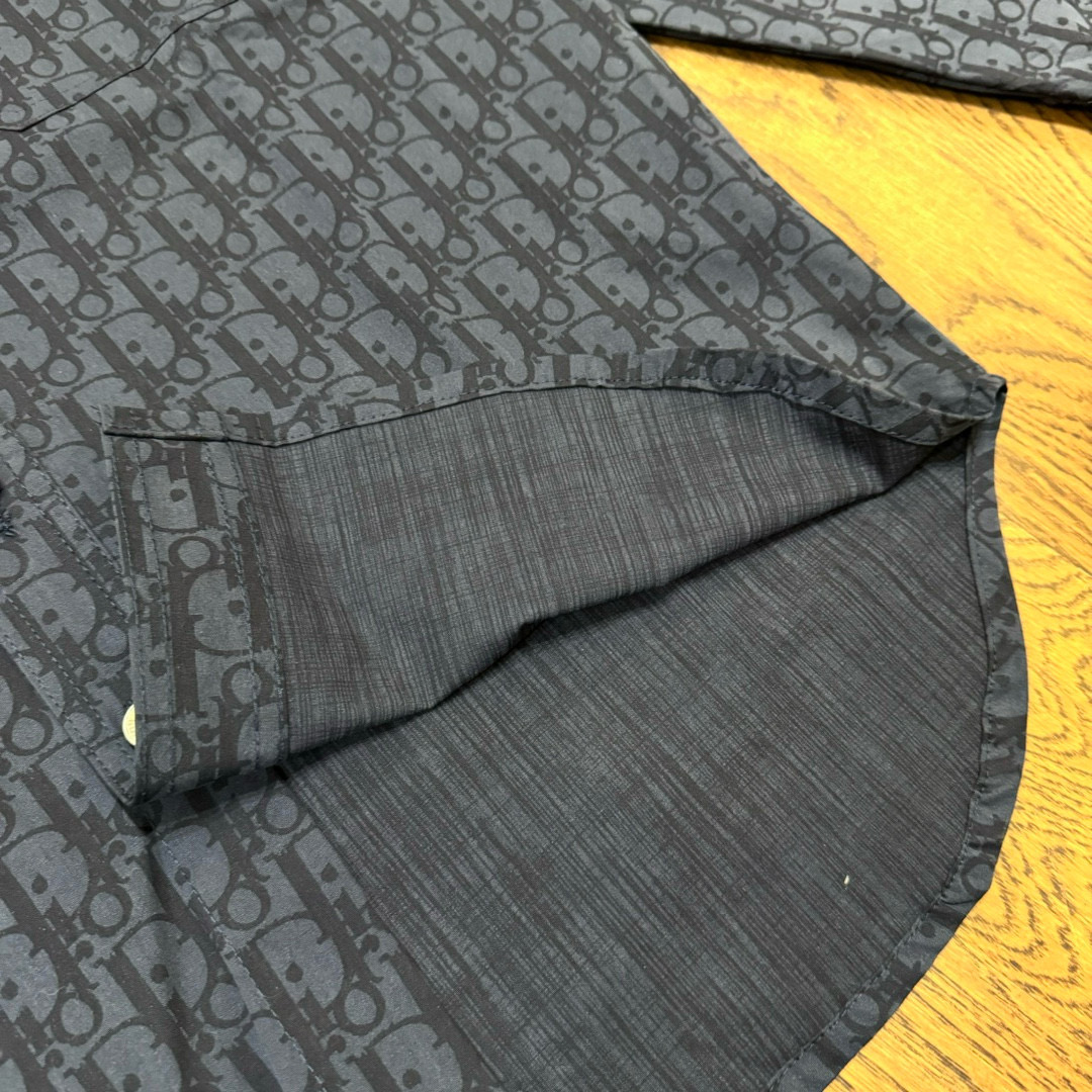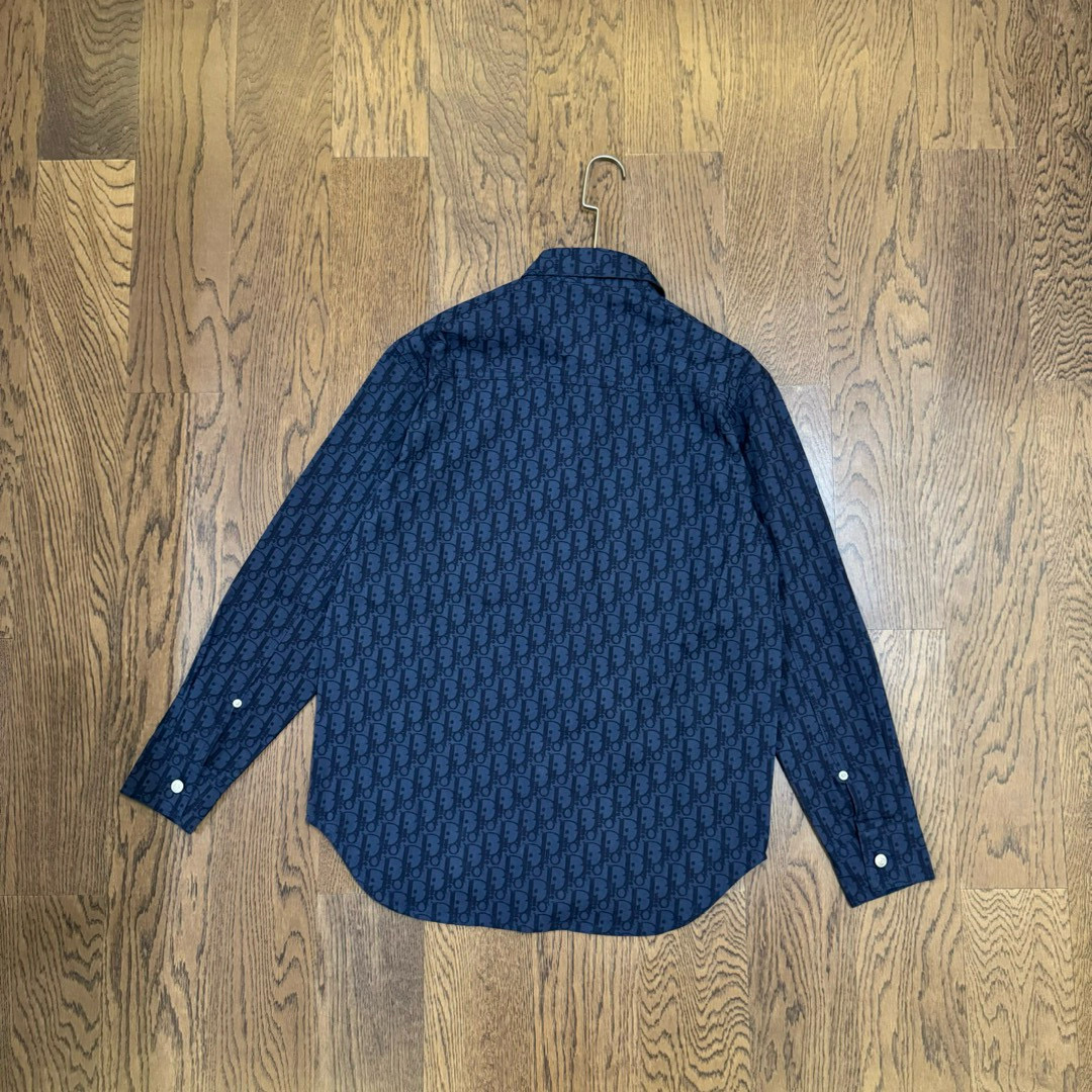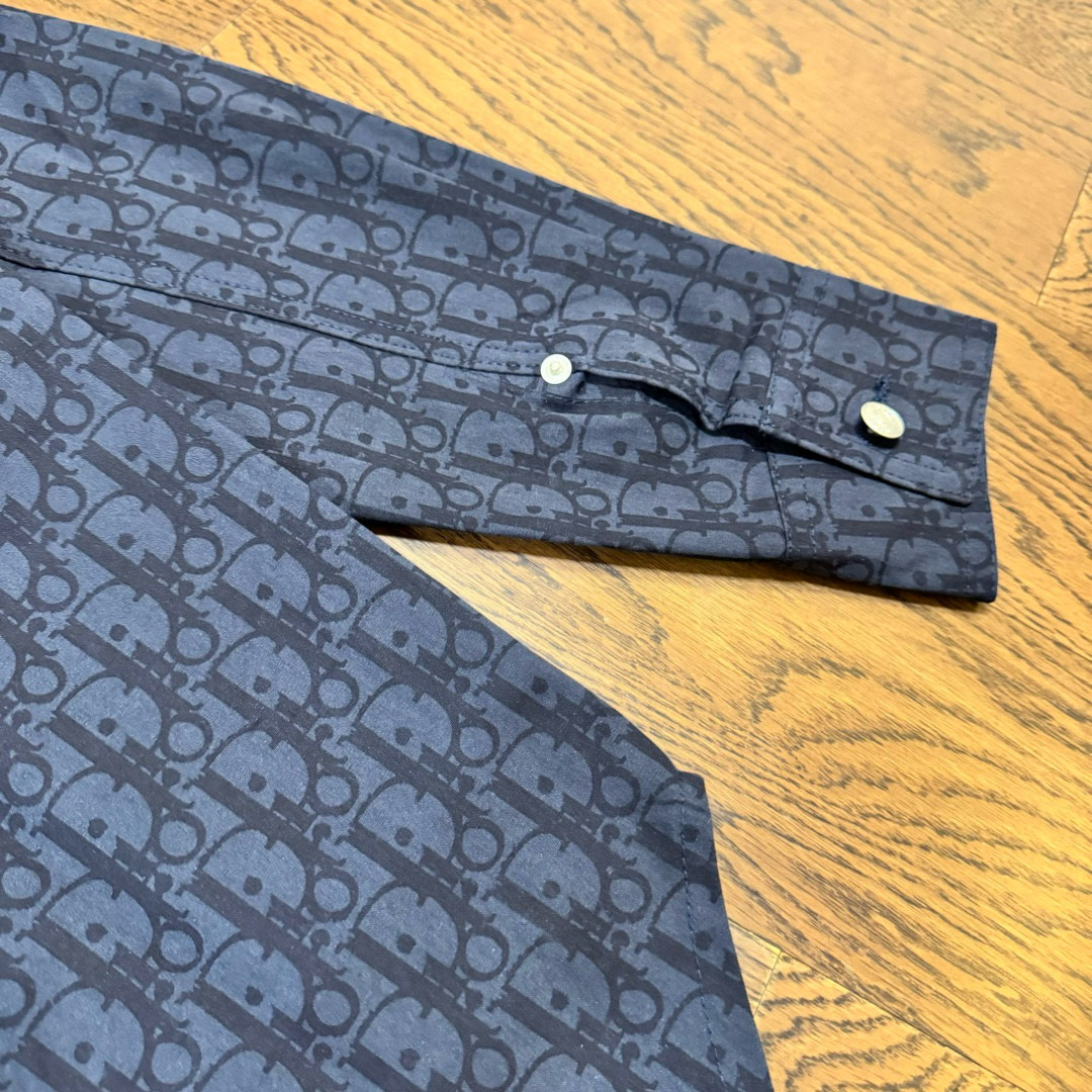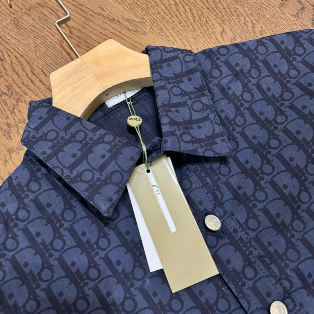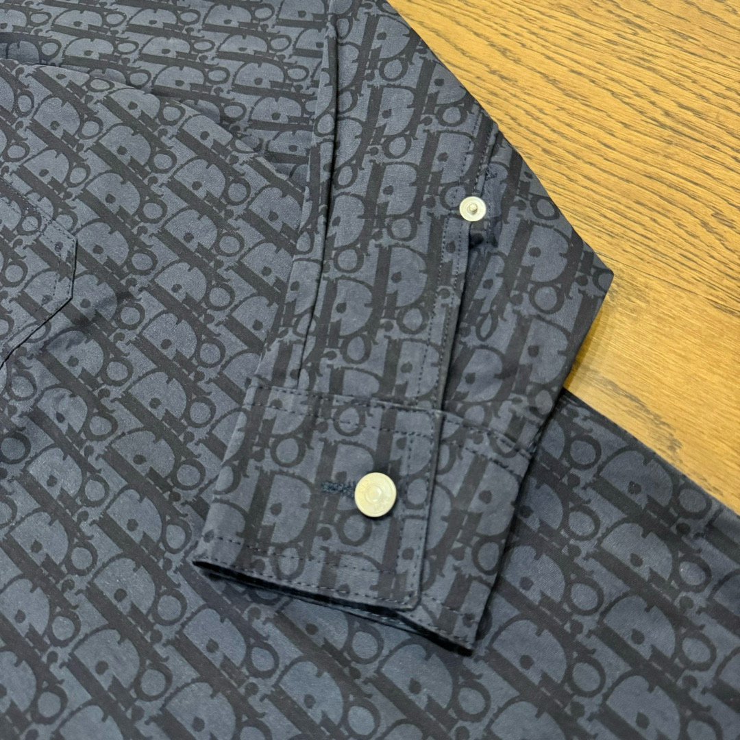DIOR 迪奥 CD 经典满印老花提花 logo深色情侣翻领长袖牛仔衬衫 顶级版本