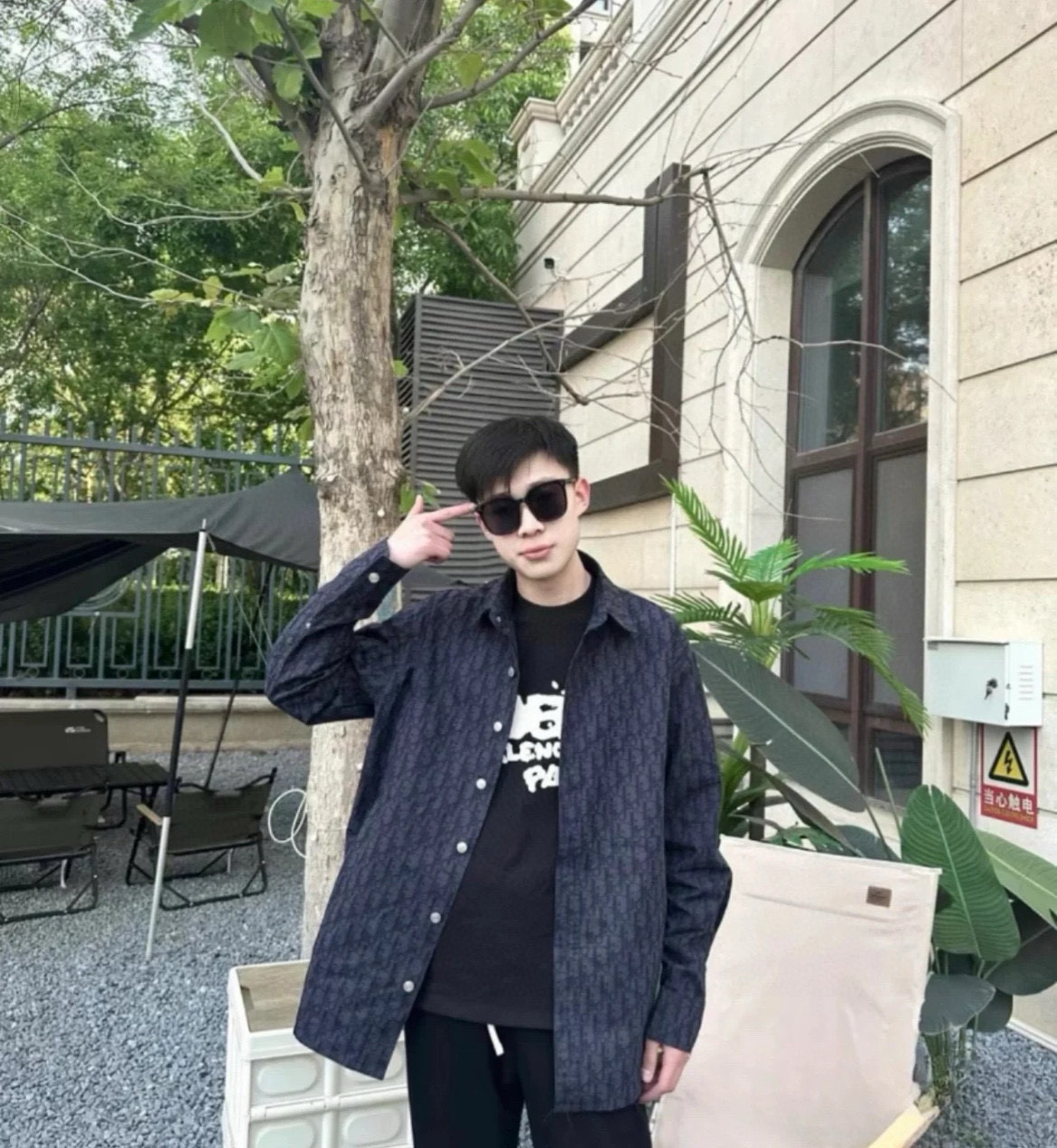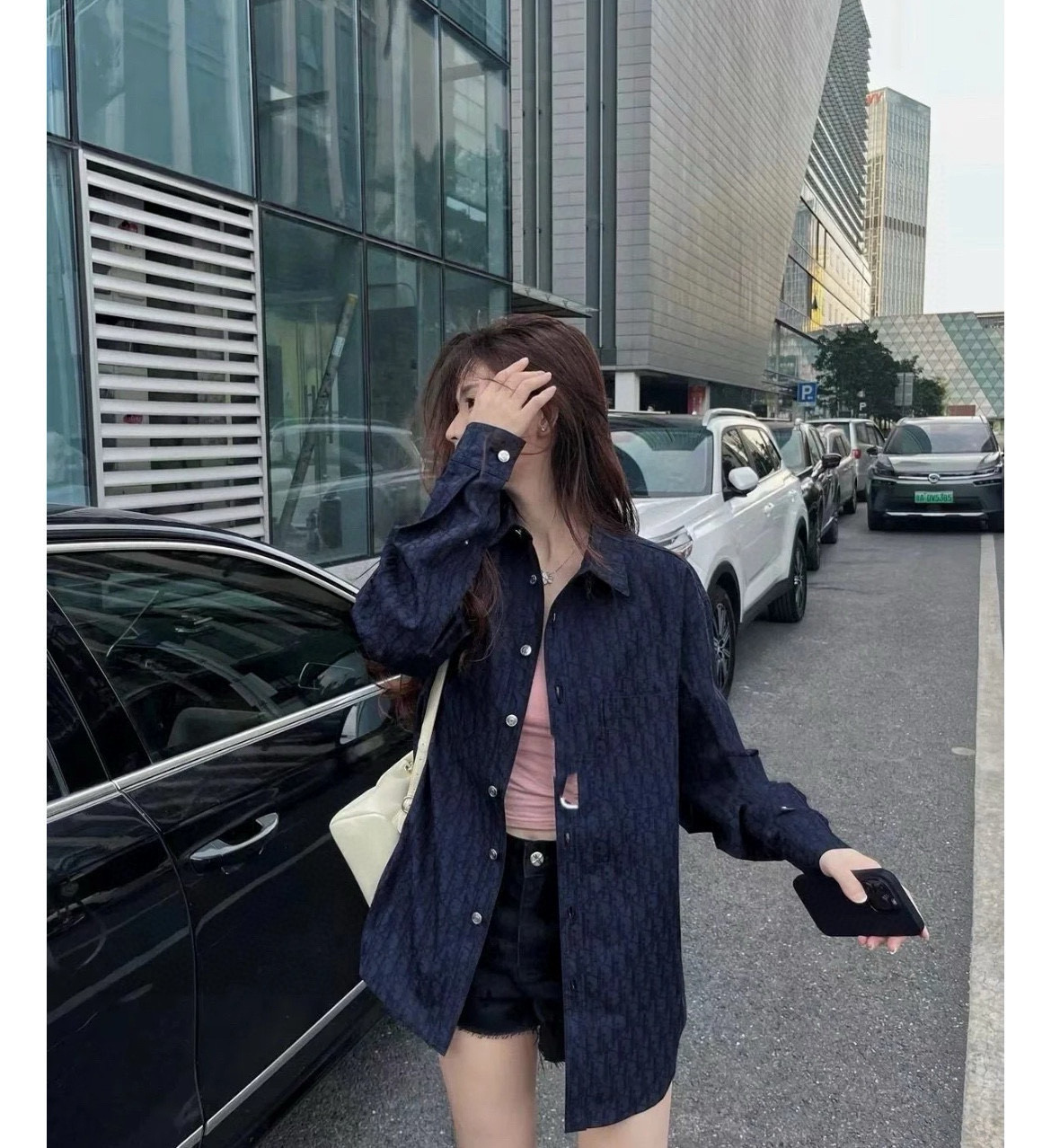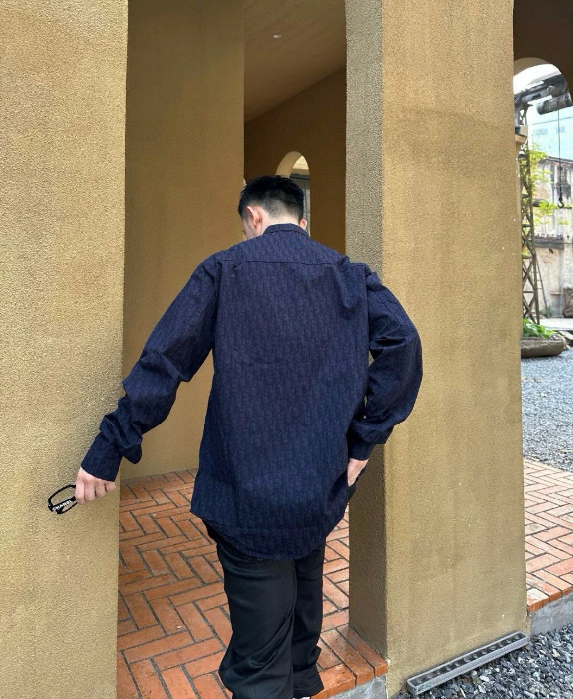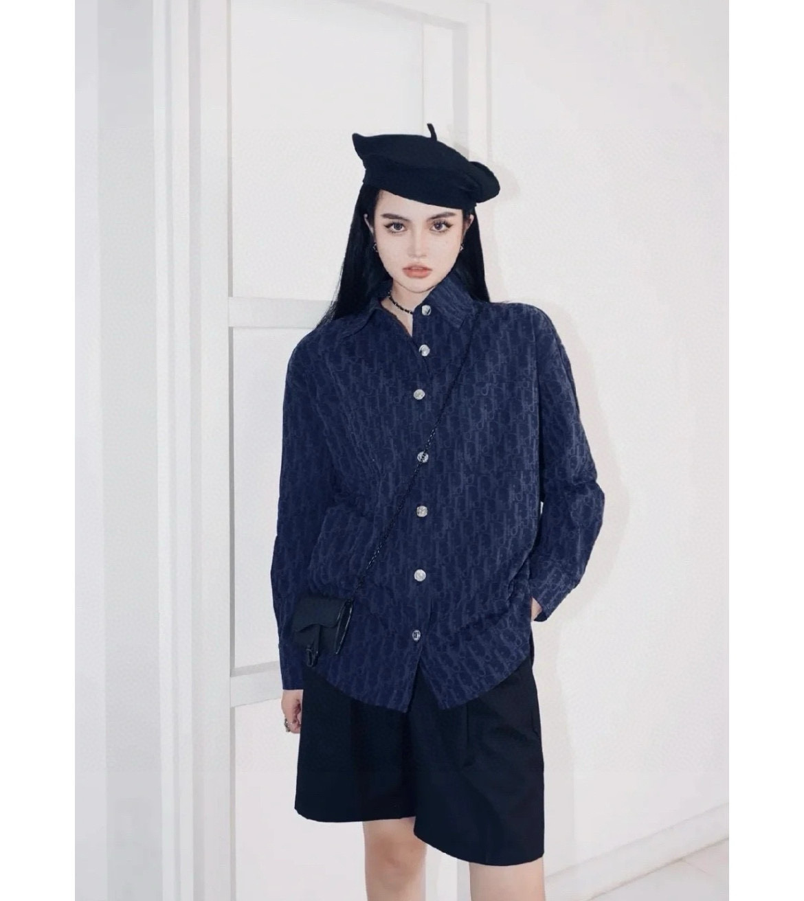 DIOR 迪奥 CD 经典满印老花提花 logo深色情侣翻领长袖牛仔衬衫 顶级版本