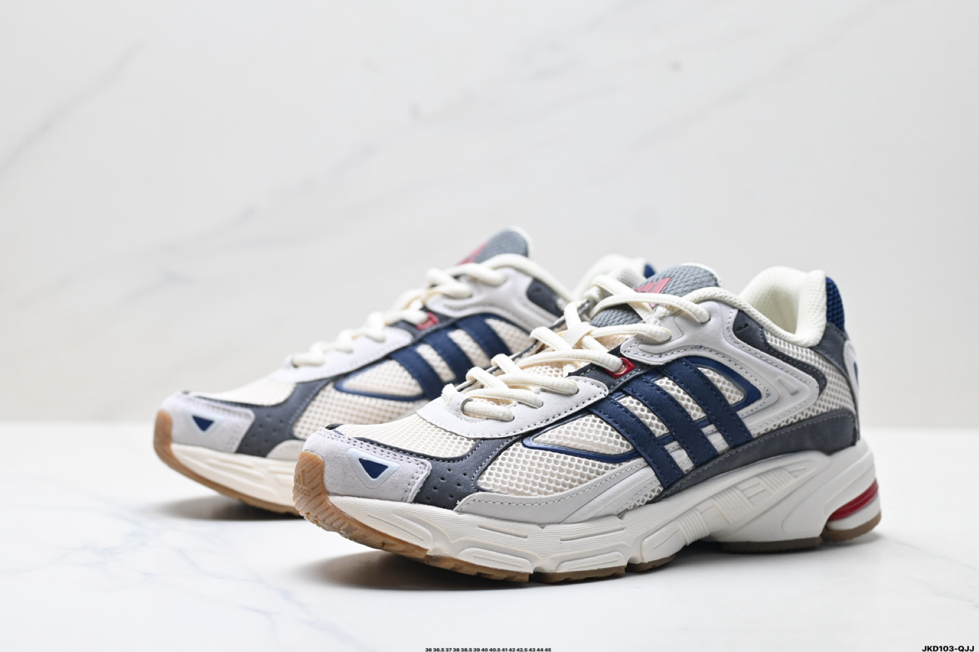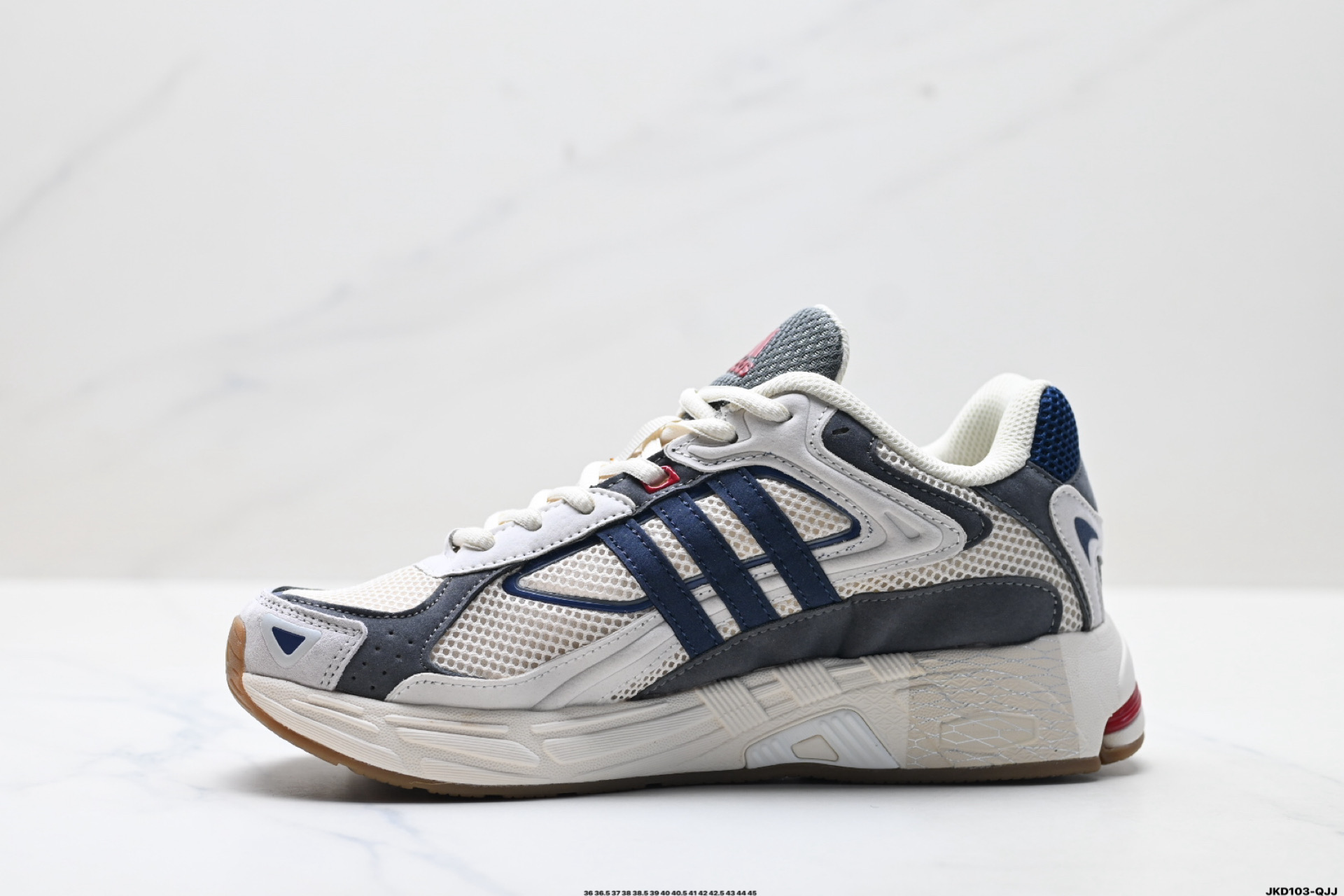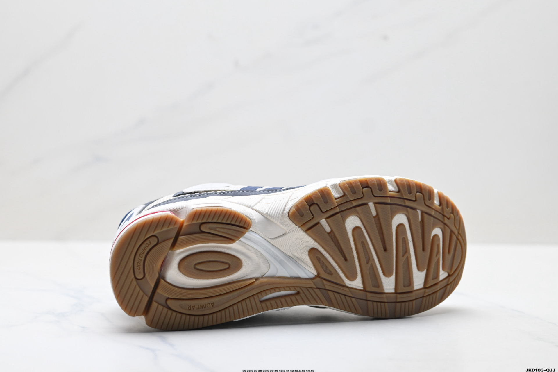 鞋身采用大面积的麂皮和网布材质 复古感拉满 中底采用阿迪达斯经典的adiprene 后掌添加新的Pro miderotor科技 脚感回弹力十足