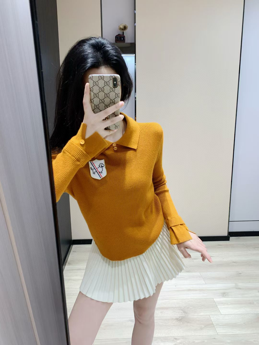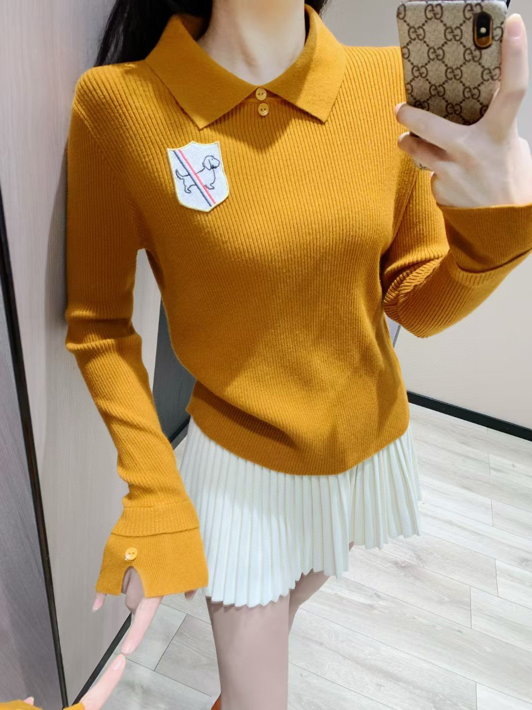 Thom Browne TB小狗刺绣徽章翻领长袖针织毛衣