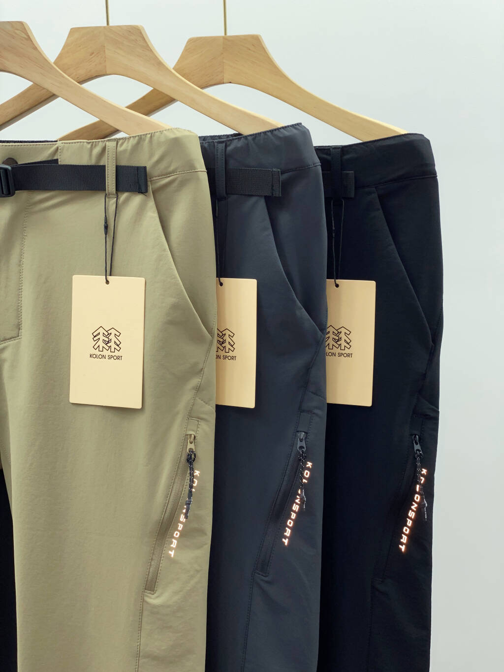 腰带设计 方便自由调整 结合后腰处松紧 舒适贴合腰身 腿部口袋处 KOLONSPORT 3M反光印花设计 提升夜间活动安全性微喇设计 结合四面弹面料 美观舒适