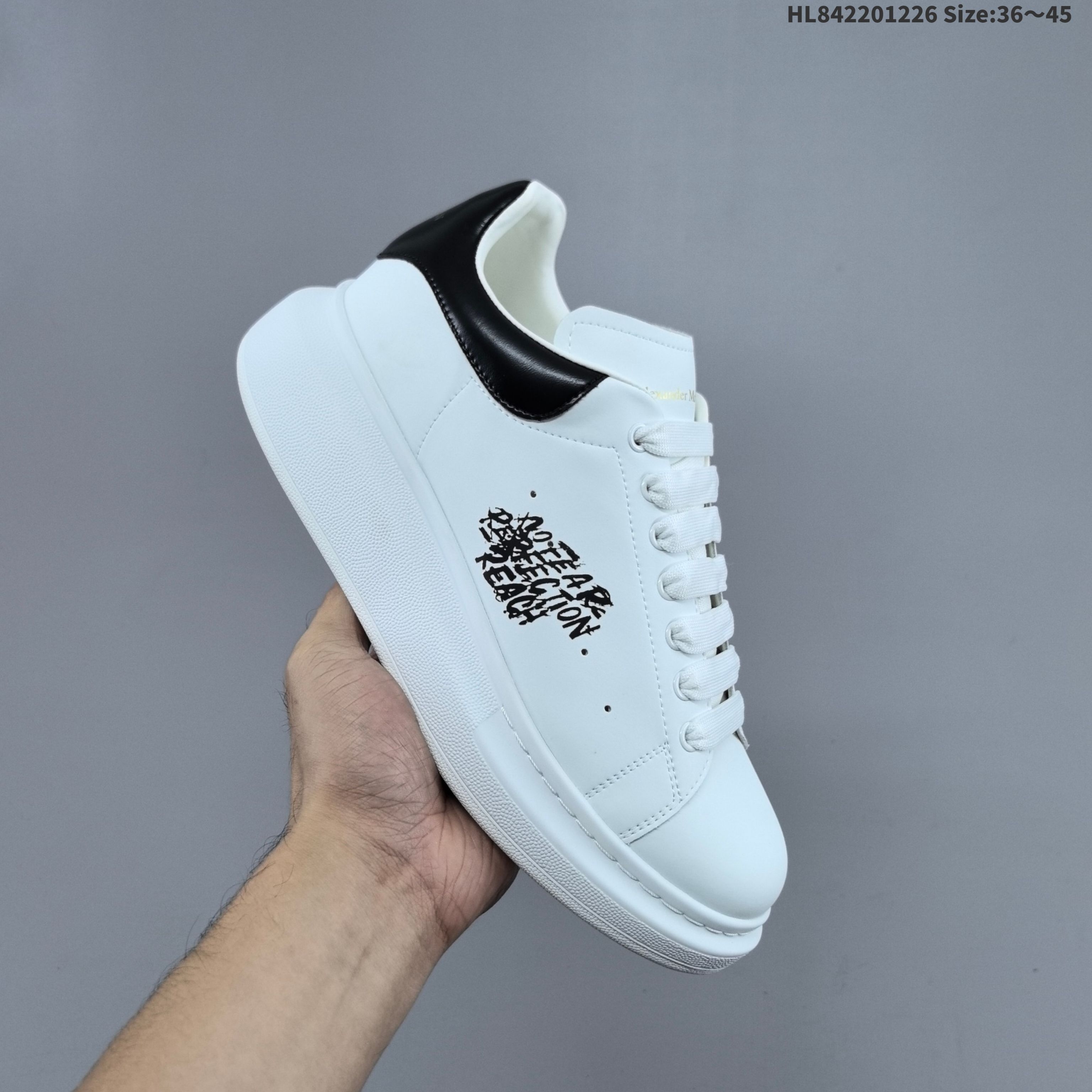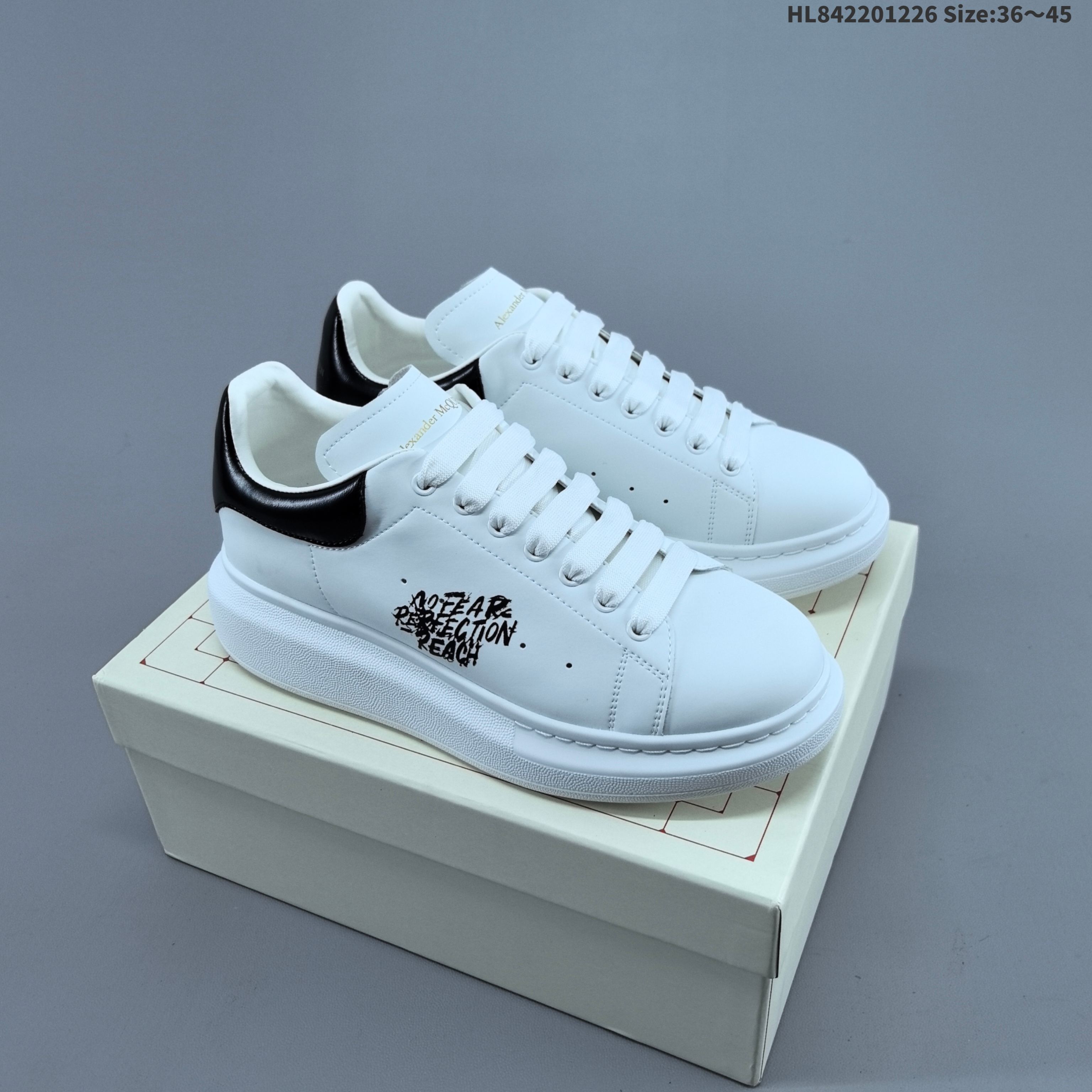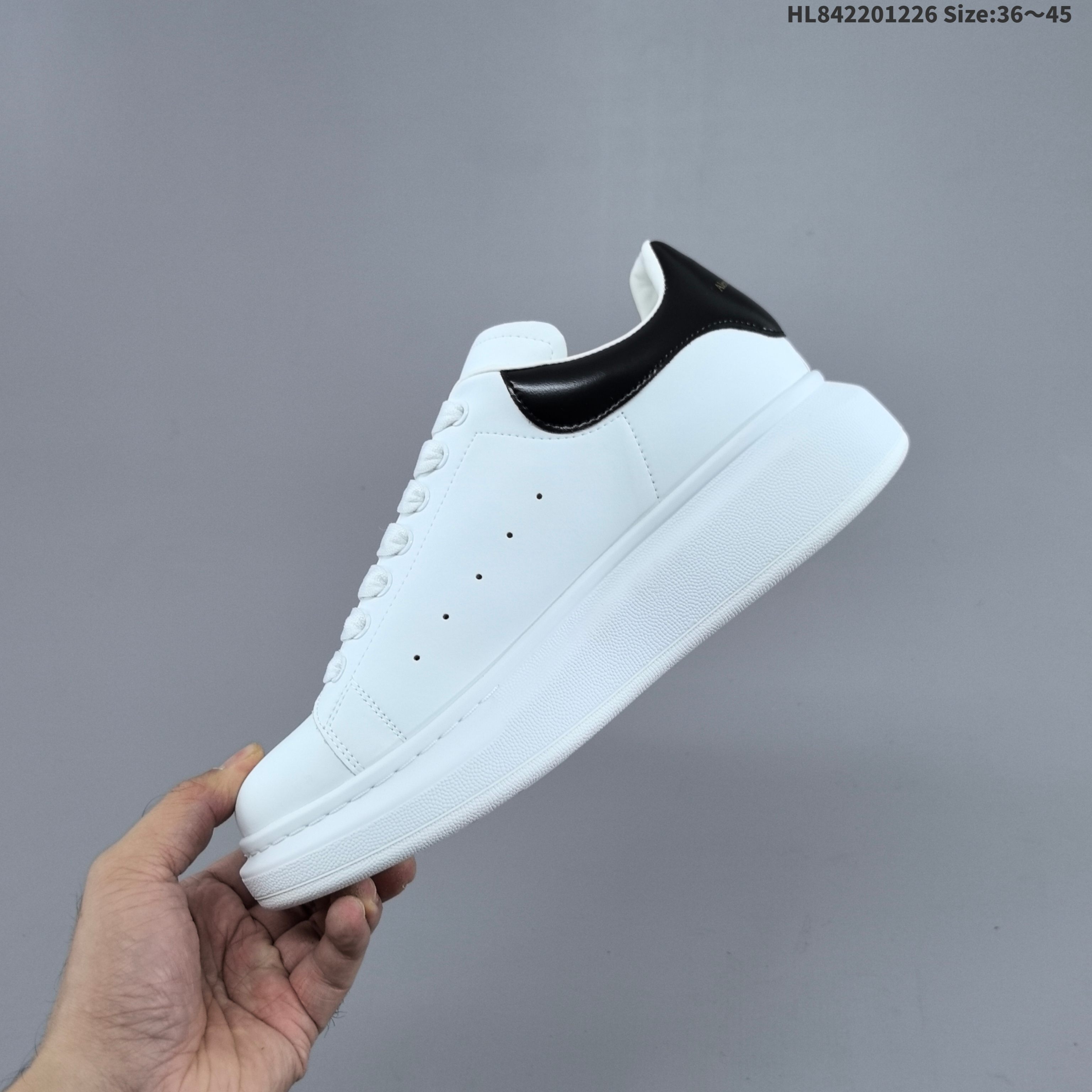 公司级意大利高奢品牌Alexander McQueen亚历山大 麦昆 Sole Leather Sneakers低帮时装厚底休闲运动小白鞋
