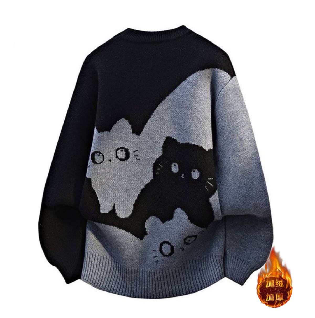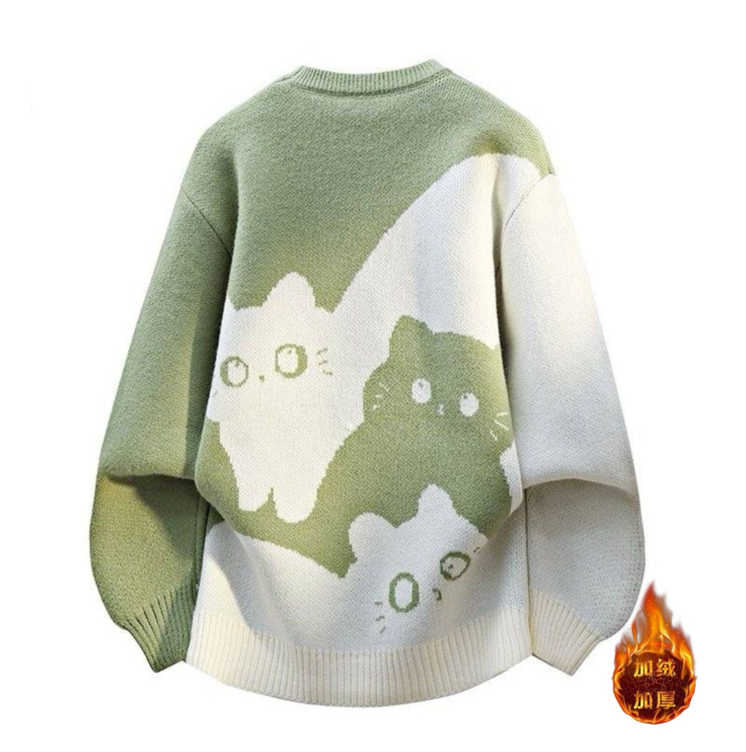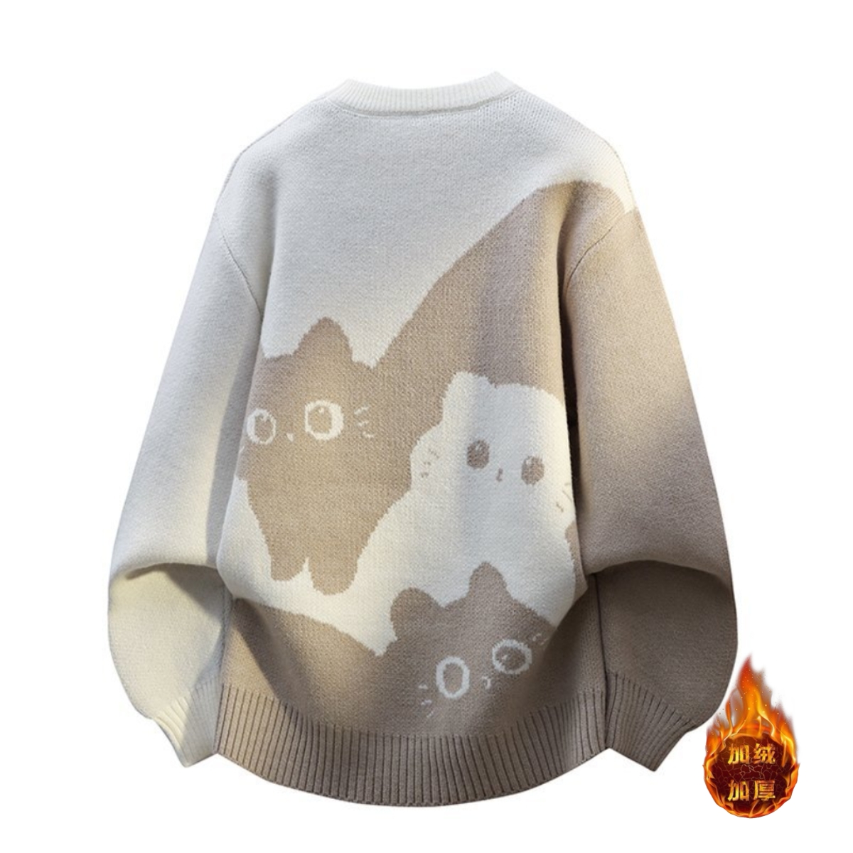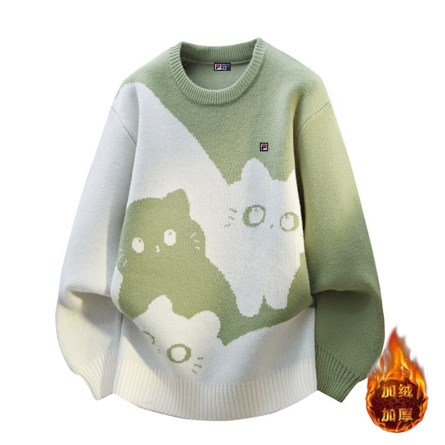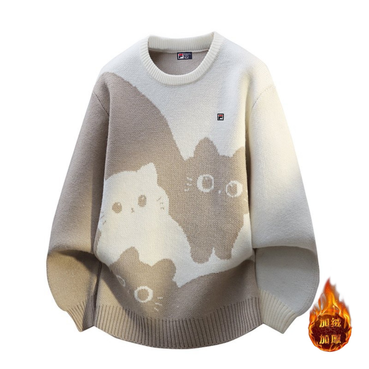 加绒 斐乐 中性风秋冬高品质小猫咪圆领宽松毛衣针织衫外套