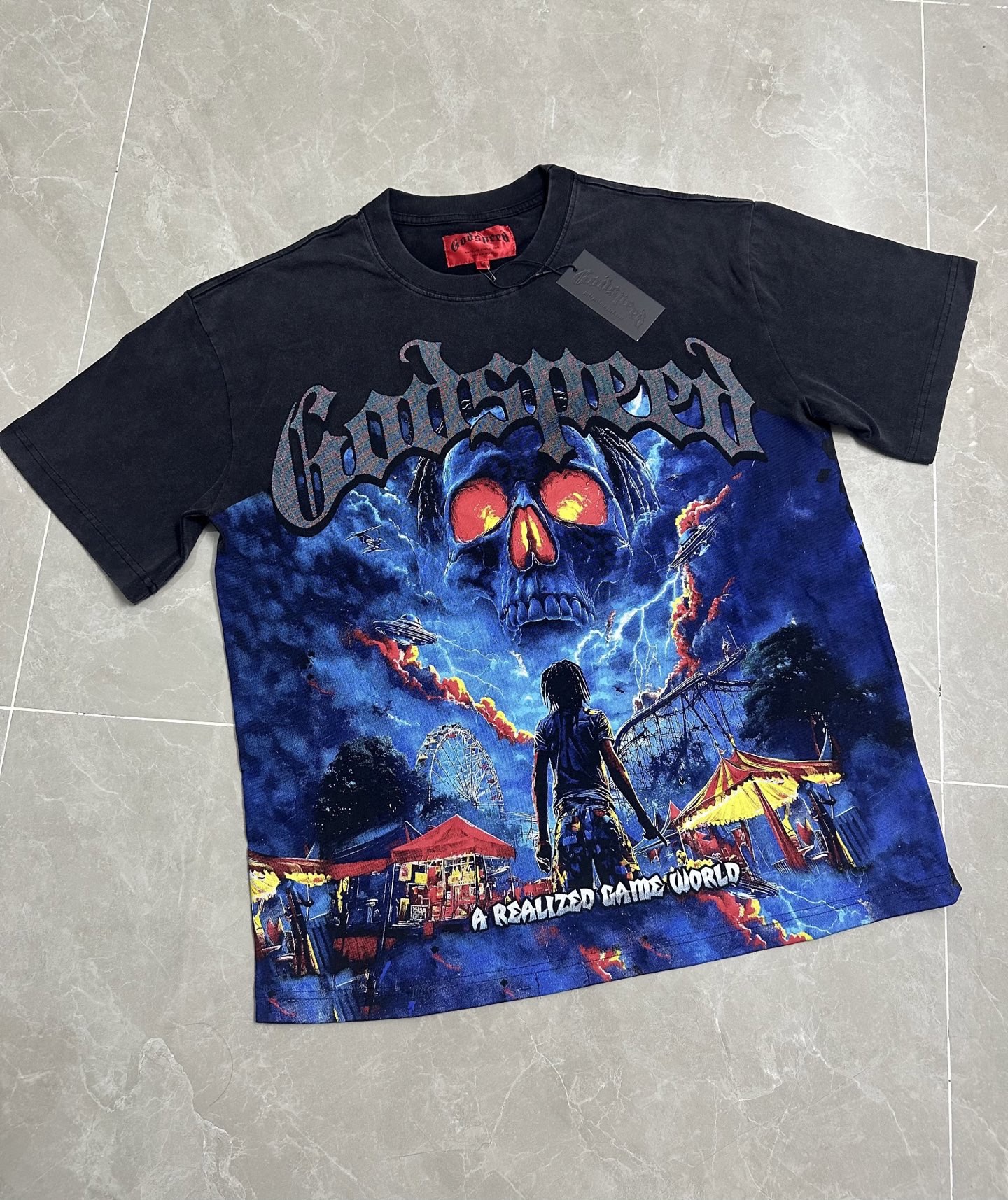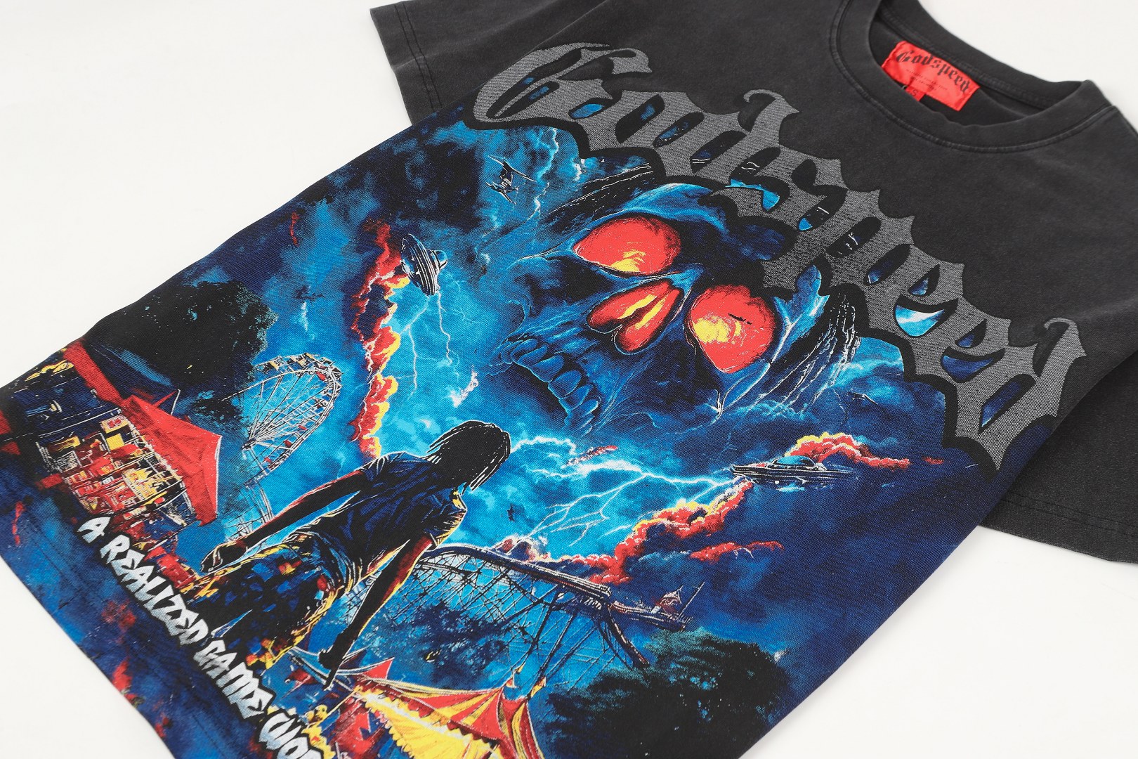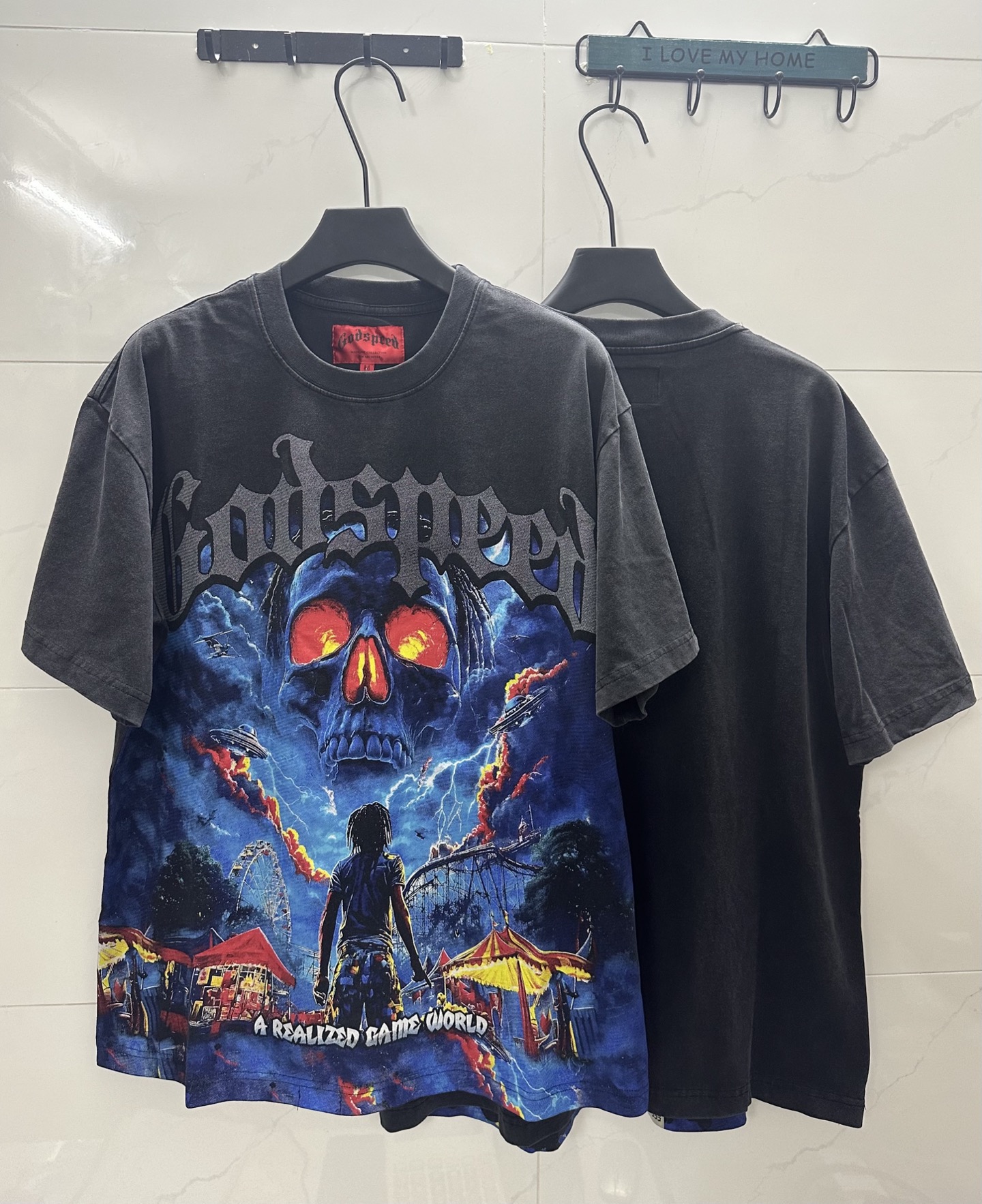Gods eed 跨境美式摇滚街头洗水复古风 短袖T 数码印花