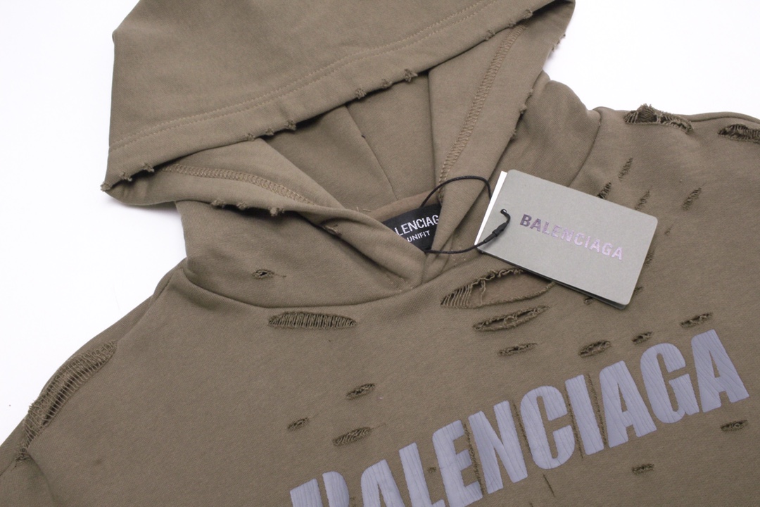 细节图 顶级版本 官网品质 BALENCI GA 巴黎 经典款 22SS BALENCI GA 艺术破洞加绒内两件套带帽卫衣 秋冬季砖柜同步 欢迎对比