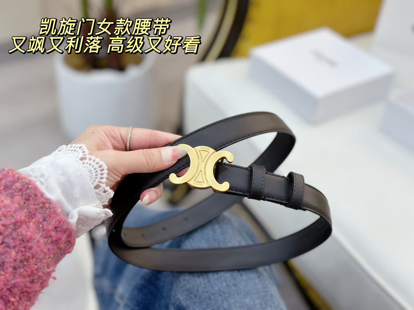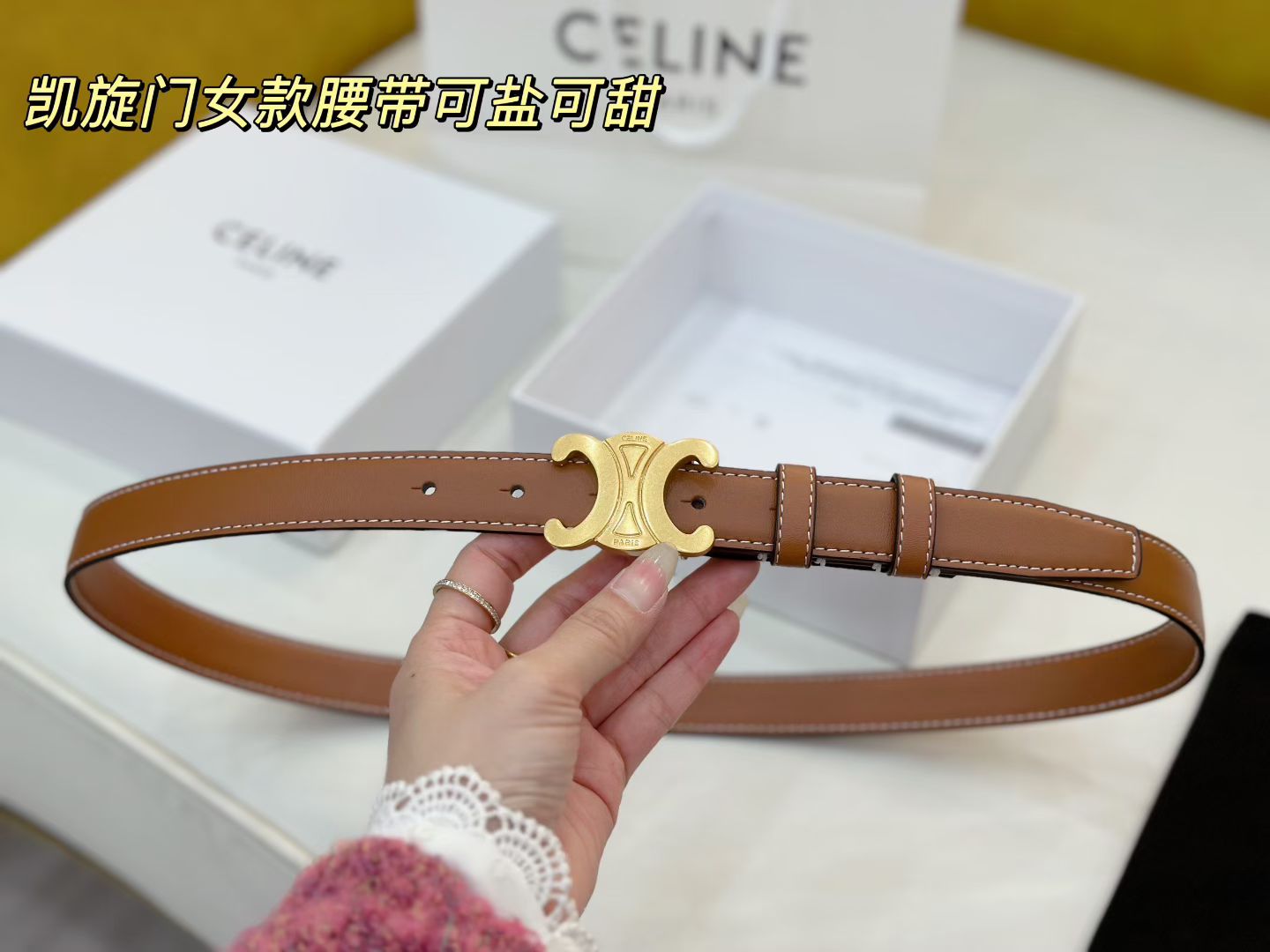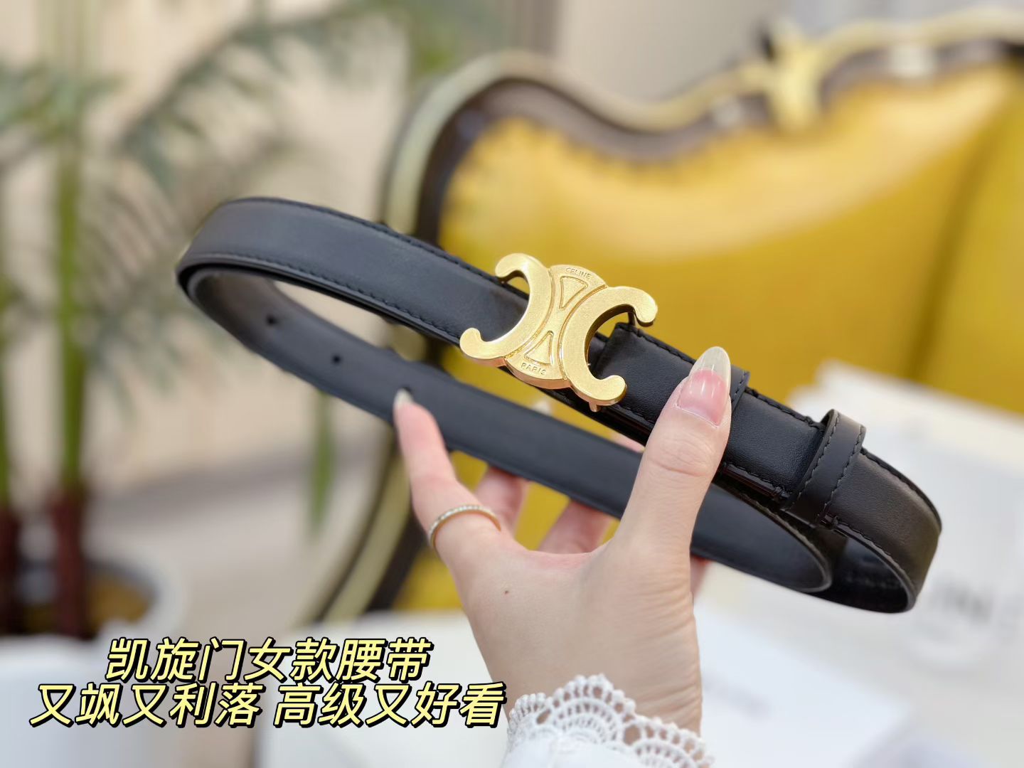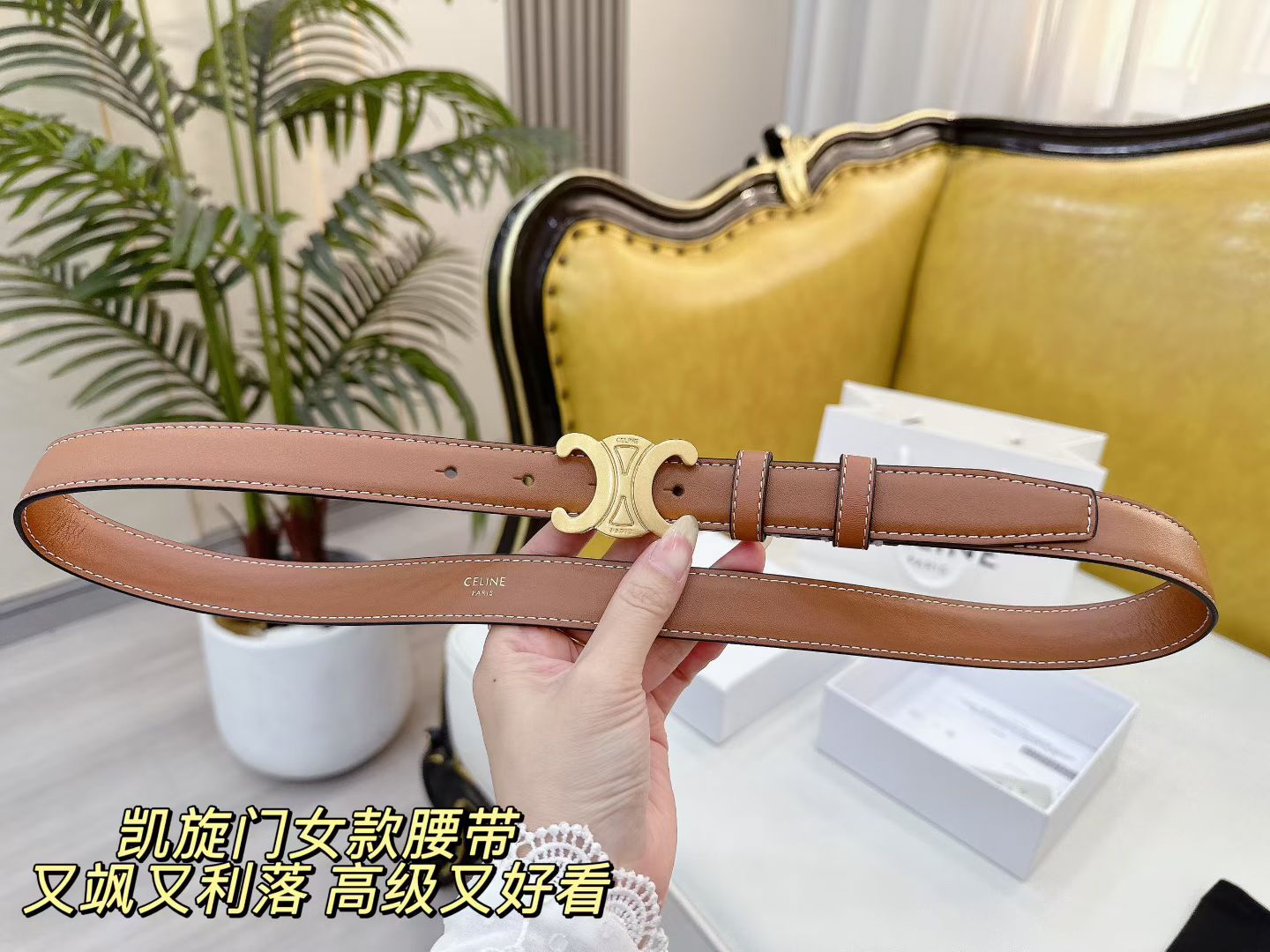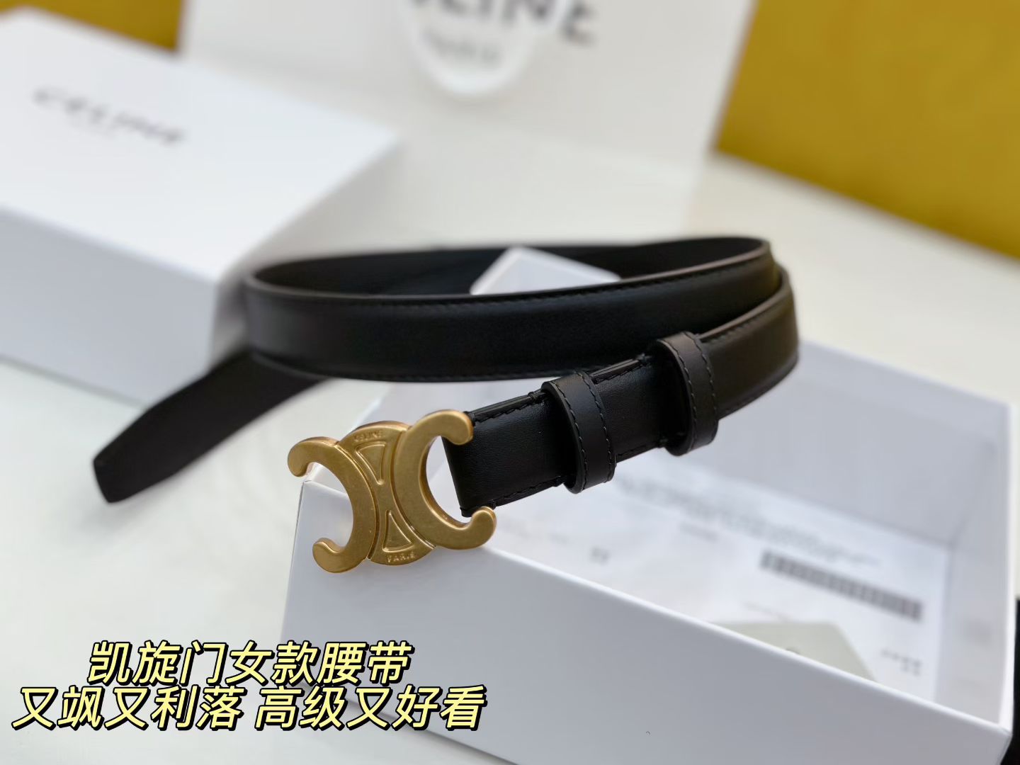 女款celine 经典凯旋门全皮腰带 黑 焦糖两个颜色