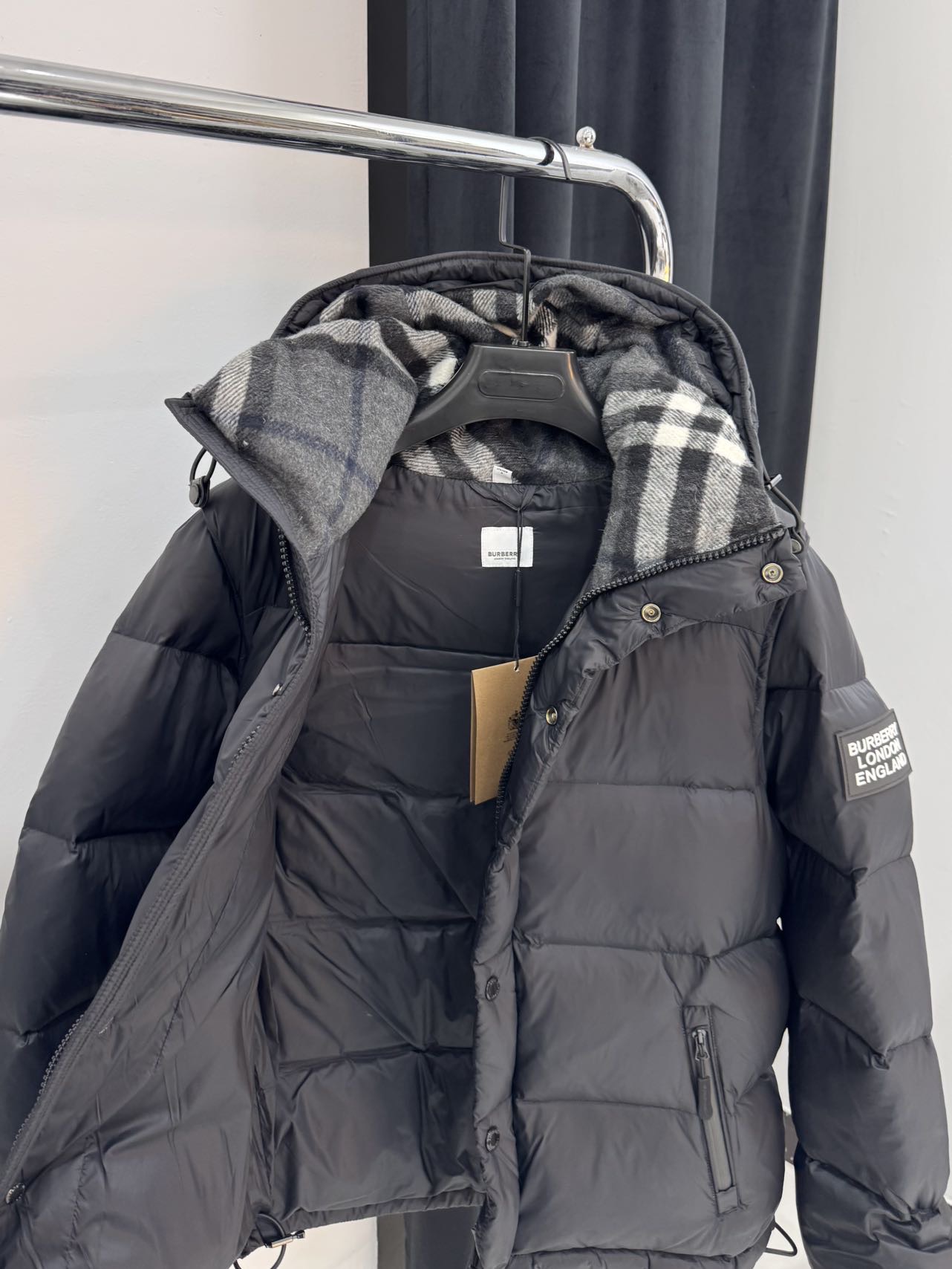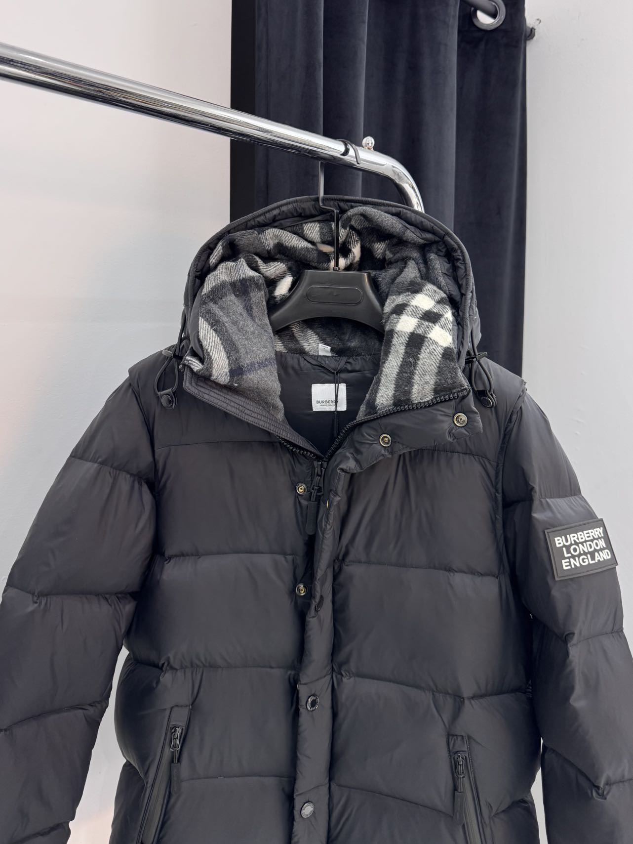 278181216 - 店内爆款实拍 巴宝莉拆卸袖连帽羽绒服 黑色 S XL 394307